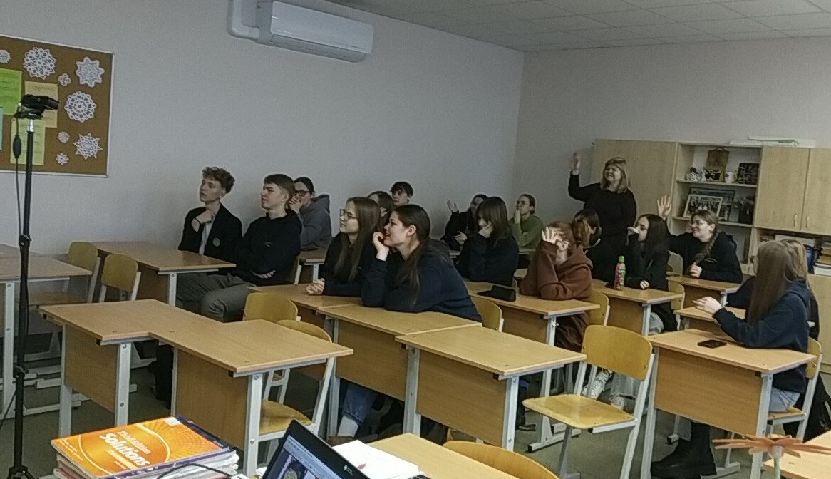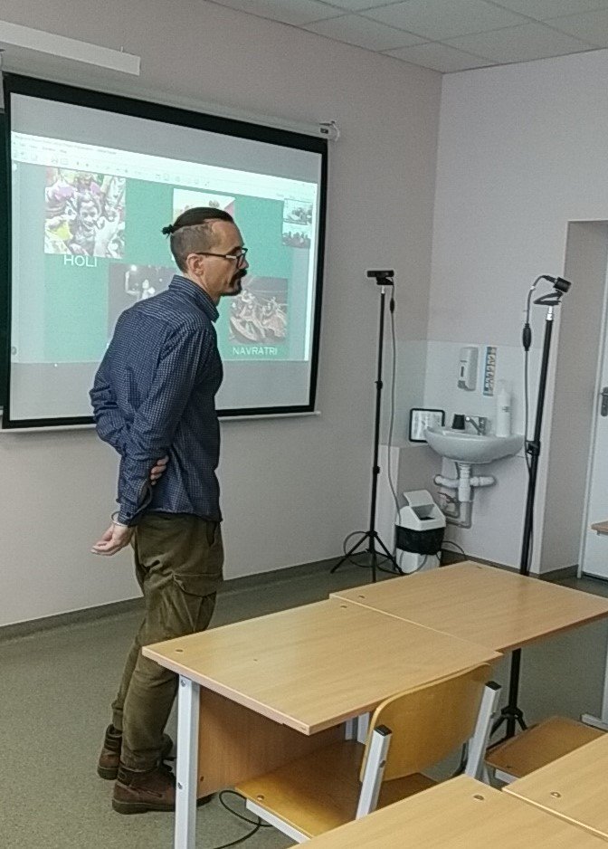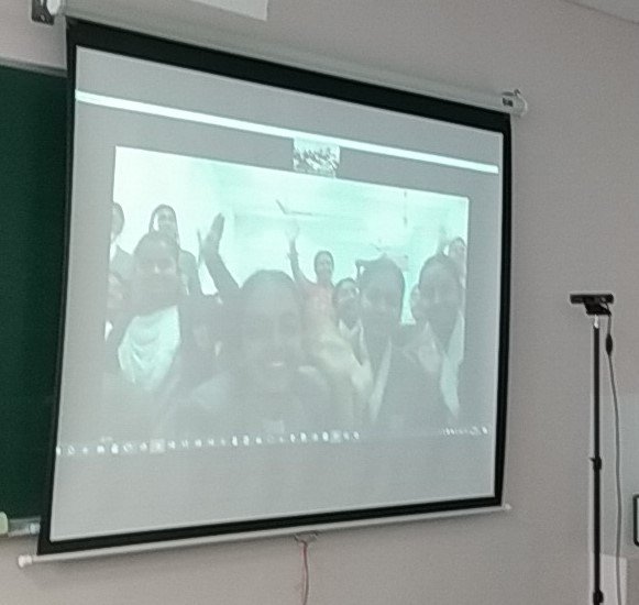 Mūsų gimnazistai prisistatė ir papasakojo apie save, parodė už langų baltuojantį sniegą, apšerkšnijusius medžius. Indijos moksleiviai trumpai apibūdino savo kraštą: literatūrą, meną, maistą. Jie pagyvėjo išgirdę, kad Mindaugas žino jų vietovę. Indijos mokiniai paprašė lietuviškų valgių receptų, jie nori žinoti, kaip gaminami cepelinai, šaltibarščiai. Buvo pasikeista nuomonėmis apie mokomuosius dalykus, planšečių naudojimą pamokose, dirbtinį intelektą. Mielas susitikimas!