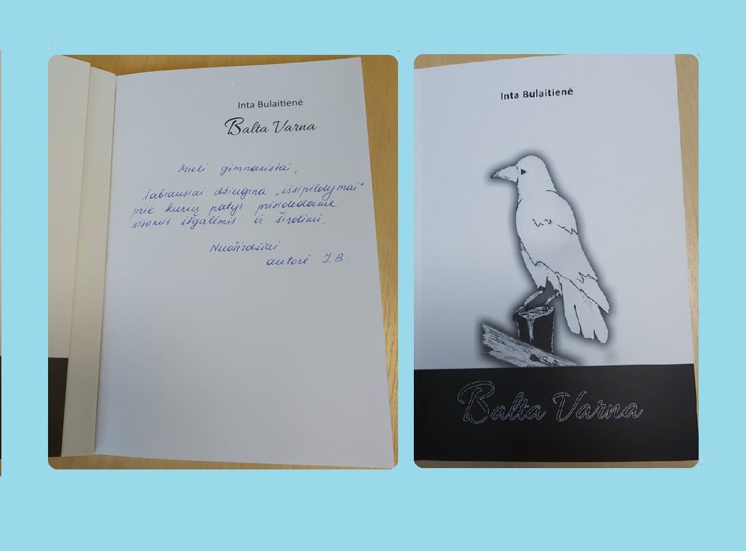 Nuoširdžiai dėkoju gimnazistams, sutikusiems dalyvauti projekte ir dalelę savo laiko skyrusiems kūrybai: I a klasės mokinei Urtei Guldikauskaitei, I b klasės mokinėms Agnei Sabalytei, Agnei Stanislavskytei, mokiniams Domui Ramonui, Džiugui Adomaičiui, Patrikui Martišiui, I c klasės mokinėms Tinai Aleksejavaitei, Mildai Pašakinskaitei, Medai Petrevičiūtei, II a klasės mokinėms Austėjai Valiušytei, Eglei Pupinytei, Emili Mackonytei, Rusnei Valentinaitei, II b klasės mokinėms Nedai Petrauskaitei, Aistei Jankevičiūtei, Emilijai Šimaitytei II c klasės mokinėms Gabijai Kuodytei, Ausmai Tautavičiūtei, Austėjai Gerdauskaitei, IV a klasės mokinei Gerdai Sakalauskaitei ir IV b klasės mokinei Kornelijai Karinauskaitei.