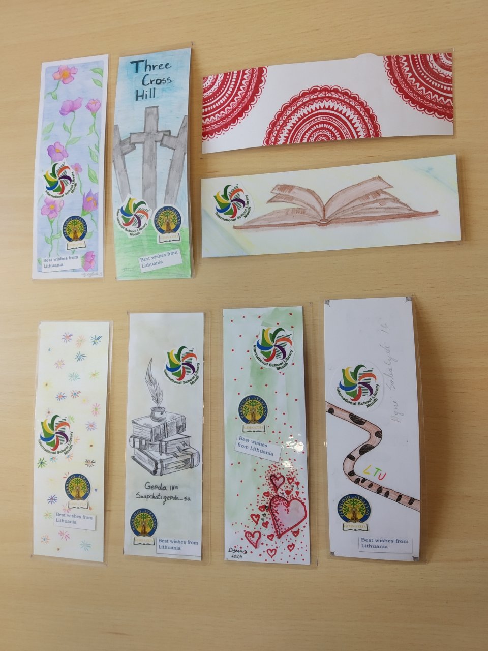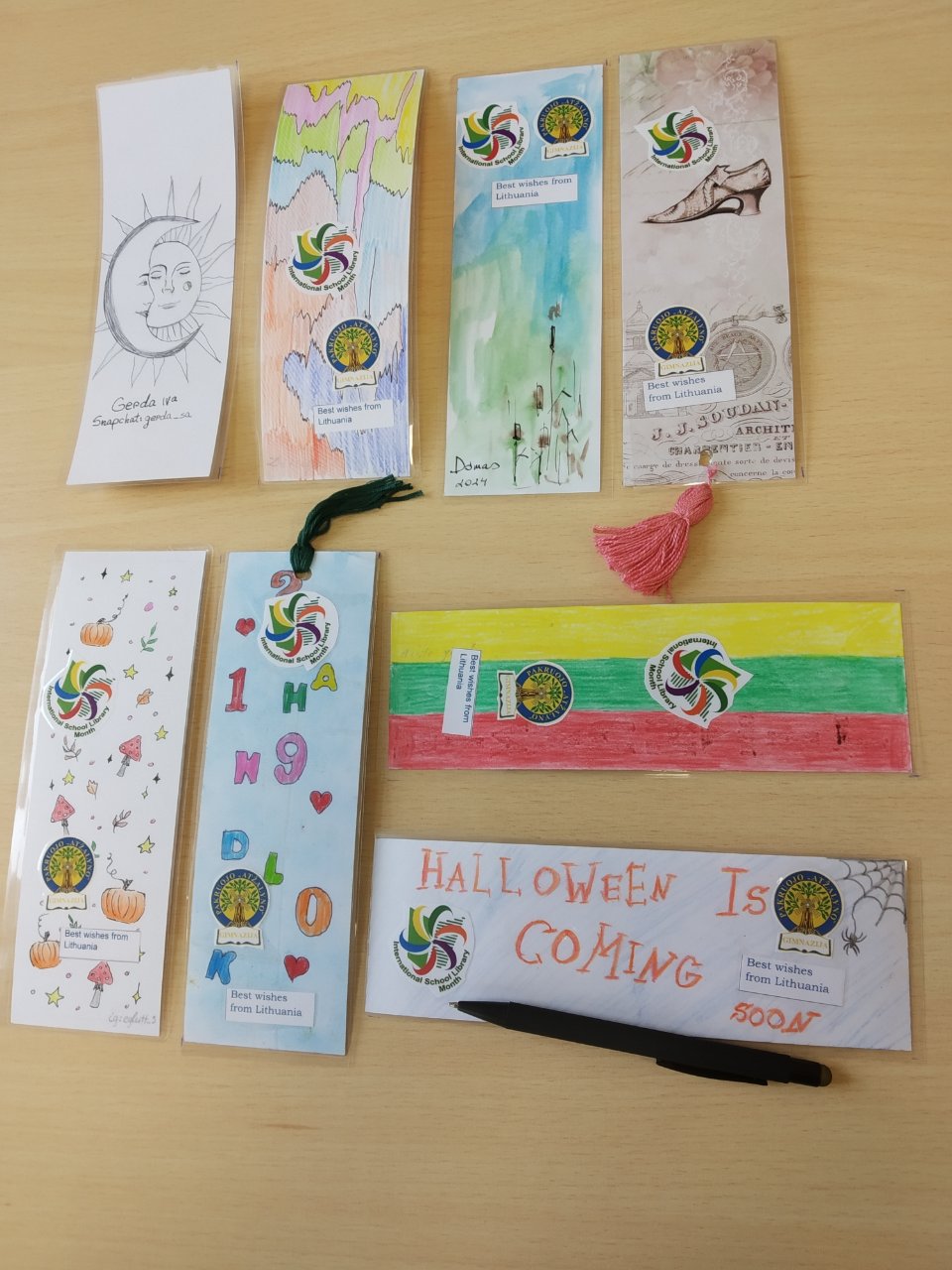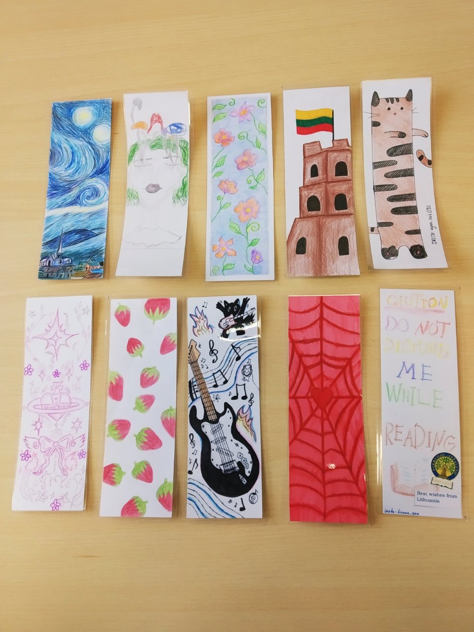 Nuostabaus grožio knygų skirtukai, kruopščiai sukurti talentingų mūsų gimnazijos mokinių, išsiųsti nudžiuginti JAV Hilltop High School (Čula Vista, Kalifornijoje) vidurinės mokyklos ir Malaizijos La Salle Sentul School (Kvala Lumpūro) valstybinės mokyklos mokinių.