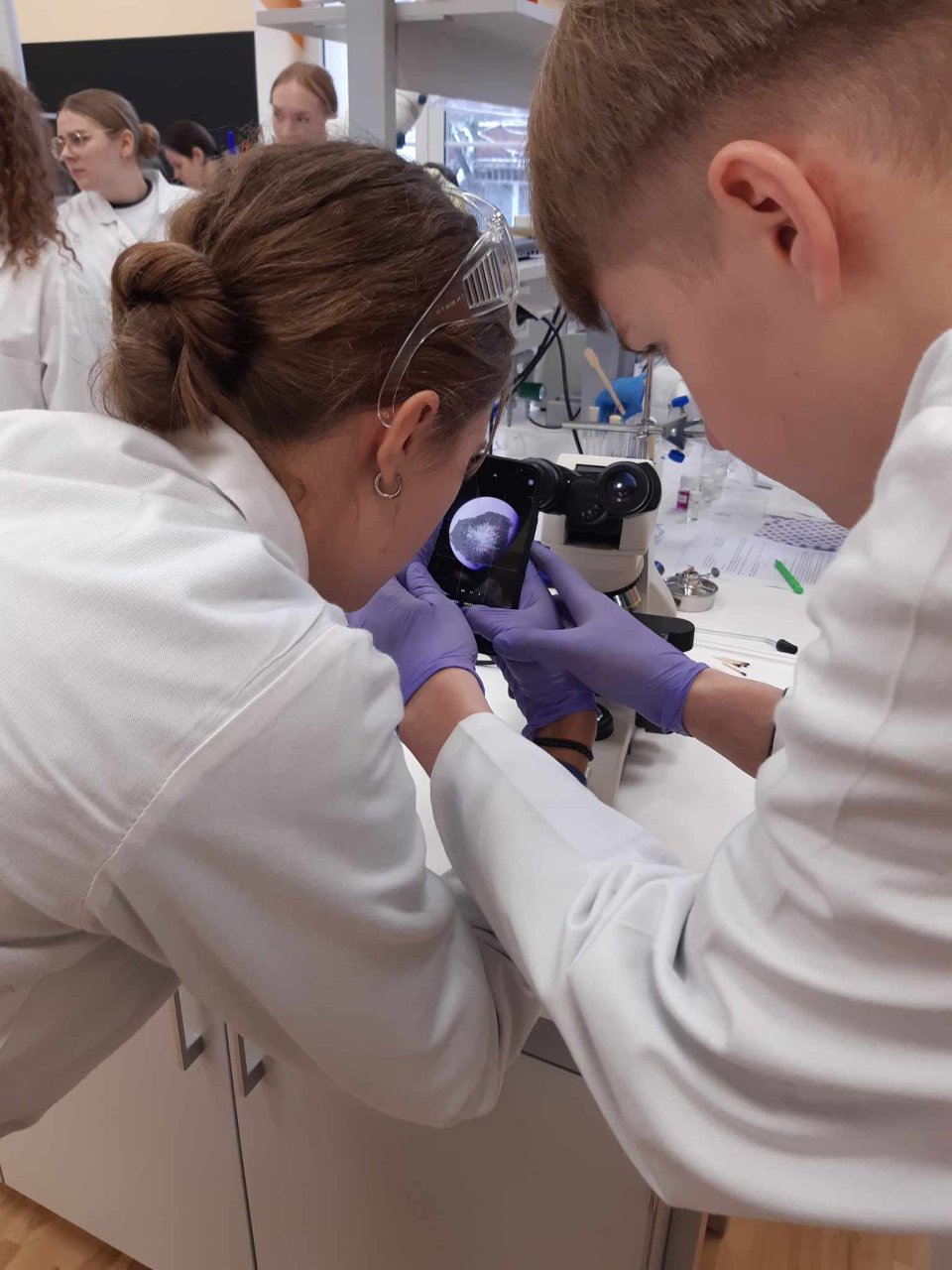 Lapkričio 8 d. III ir IV klasių gimnazistų grupelė kartu su fizikos mokytoja Vida Imanavičiūte vyko į VU Šiaulių akademijos STEAM centro fizikos ir inžinerijos laboratoriją. Visi kartu atlikome tiriamąjį darbą ,,Pažvelk į žvaigždėtą dangų“. Iš pradžių prisiminėme I. Niutono eksperimentą, kad baltą šviesą galima suskaidyti į skirtingas spalvas, taip pat aptarėme spektrų susidarymą. Pirmoje darbo dalyje išsikėlėme tikslą – nustatyti skirtingus šviesos šaltinių spektrus. Atlikome bandymus su 4 skirtingomis lemputėmis, žvake bei lazeriu. Be to, analizavome spektro plotį, intensyvumą, bangos ilgį. Antroje dalyje ieškojome išlydžio spektrų, o trečioje remdamiesi antrosios dalies gautais rezultatais sužinojome, kokių dujų reikia, kad žvaigždė šviestų.