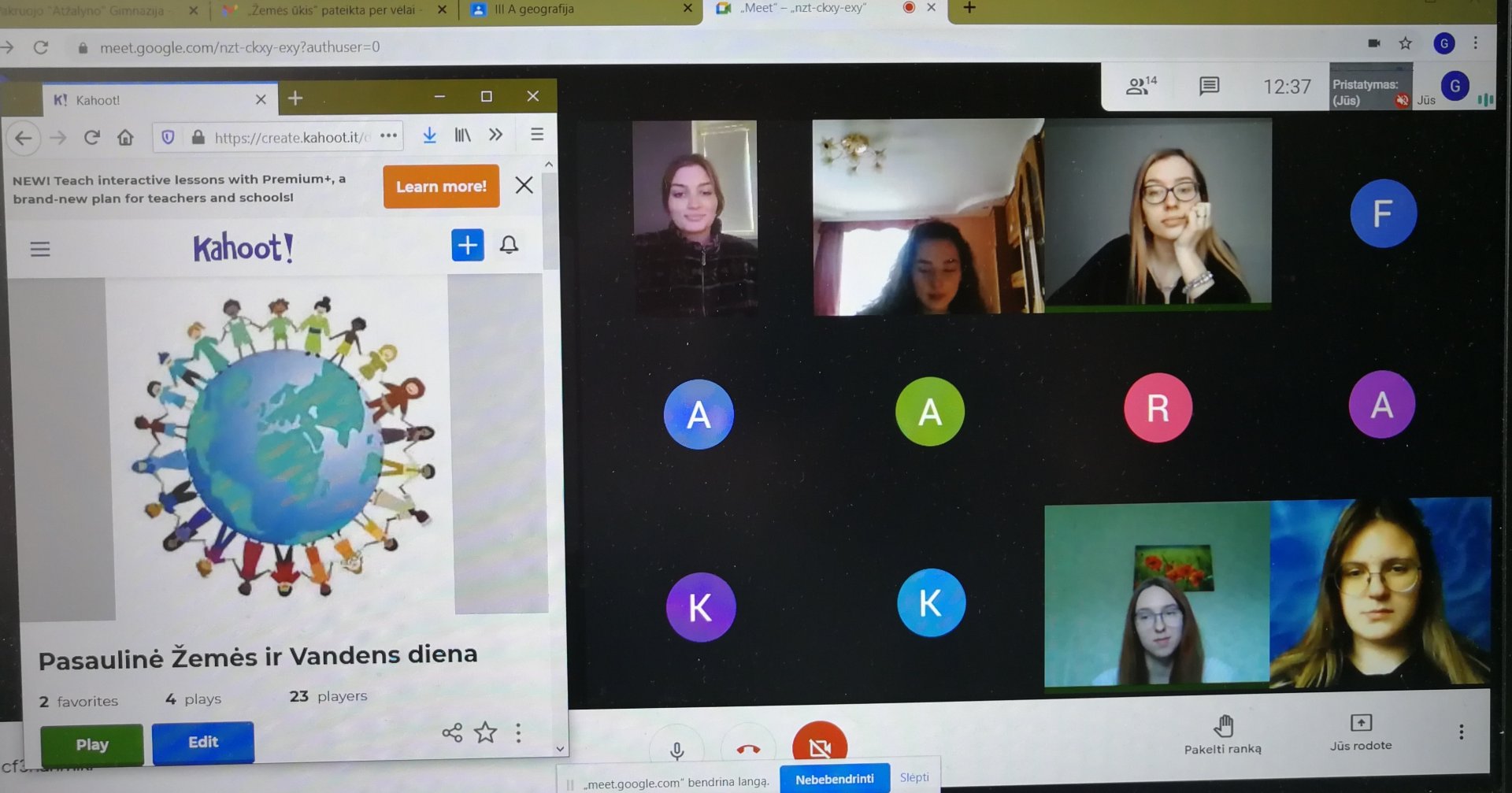 Su trečiokų gimnazistų grupe paminėjome šias planetai svarbias dienas – praėjusią savaitę mokiniai pristatė savo projektus apie svarbiausias ir ilgiausias pasaulio upes, o šiandien dalyvavo viktorinoje „Vanduo ir Žemė“. Atsakinėdami į klausimus dalyviai prisiminė vandens reikšmę gyvybei, jūrų bei oro taršą, kritulių ir vandenyno svarbą, taip pat pagilino žinias apie mūsų planetą Žemę, jos miškus ir dykumas.