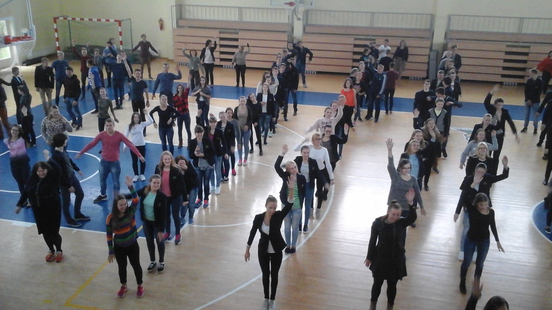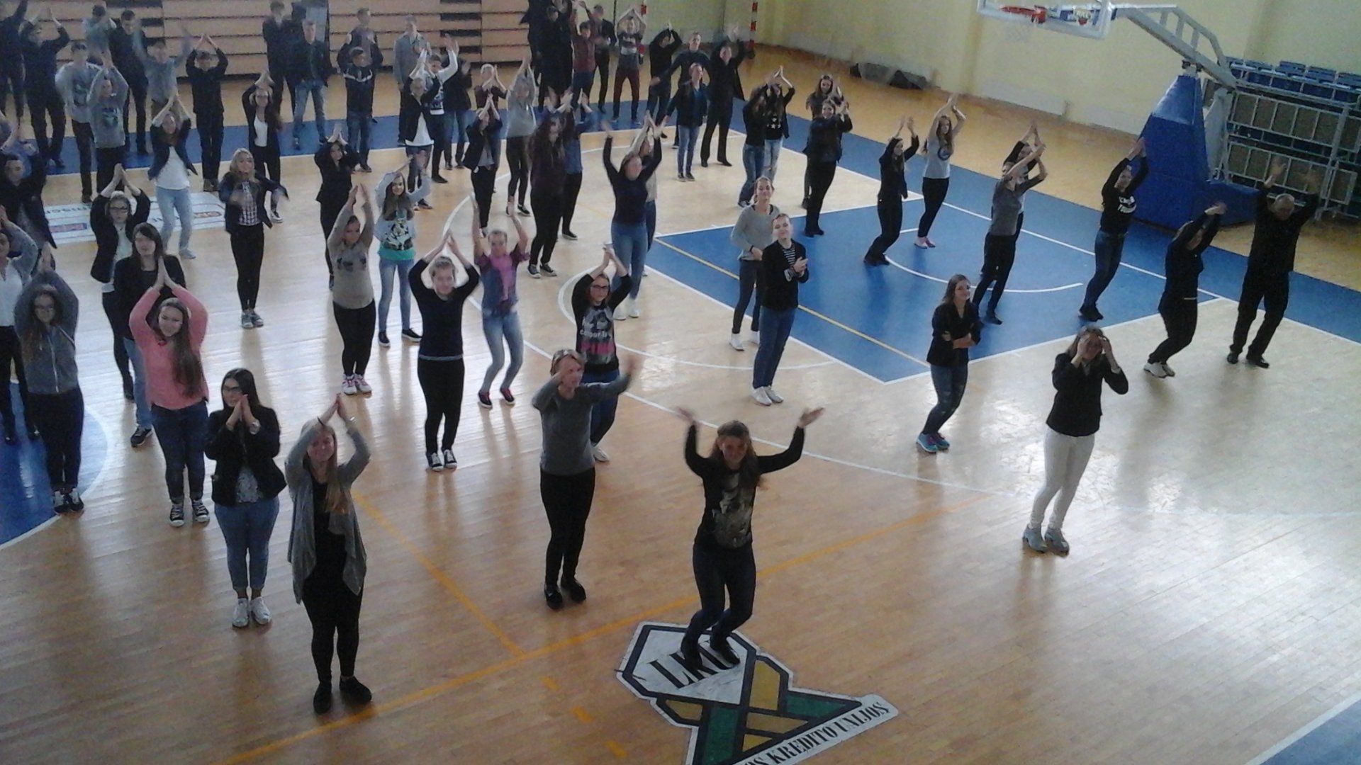 Spalio 1-ąją dieną per ilgąją pertrauką gimnazijos mokiniai ir mokytojai linksmai dalyvavo draugiškoje mankštoje „Judam kartu“. Tai – vienas iš Lietuvoje vykstančių Europos sporto savaitės akcijos renginių, kurie gimnazijoje vyksta visą savaitę.