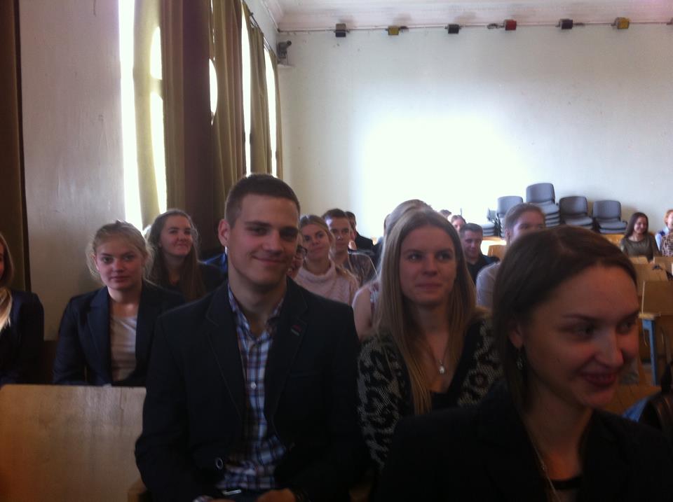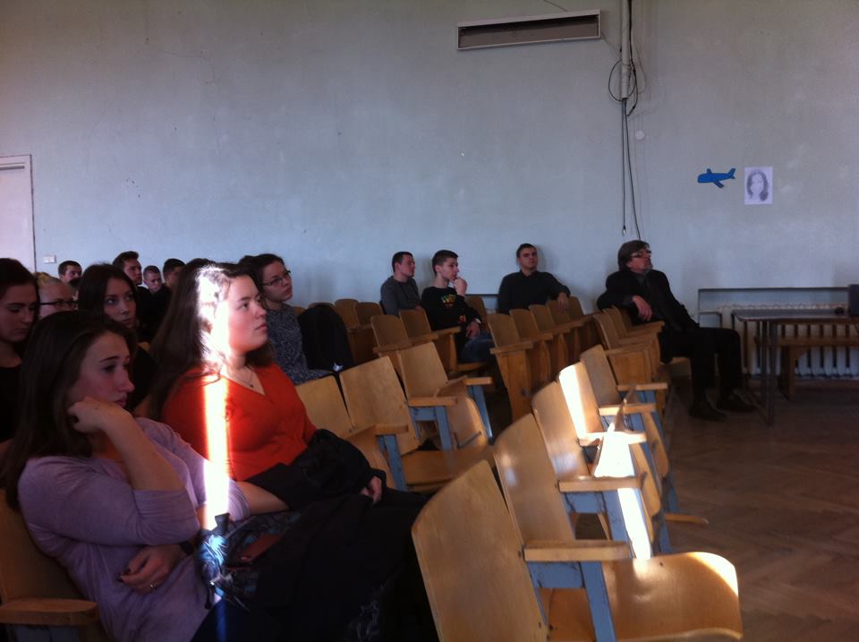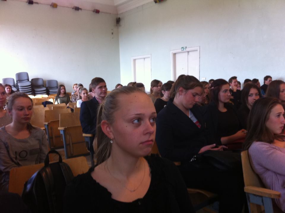 Nuostabūs klausytojai buvo mūsų abiturientai, kuriems R. Lukšas įtaigiai skaitė B. Sruogos memuarų knygos „Dievų miškas“ ištraukas – vyko sukrečianti akistata su koncentracijos stovyklos gyvenimo sąlygomis ir taisyklėmis. Esame dėkingi aktoriui už profesionalumą, nuoširdumą, įtaigų žodį, atskleistas meninio teksto gelmes.
