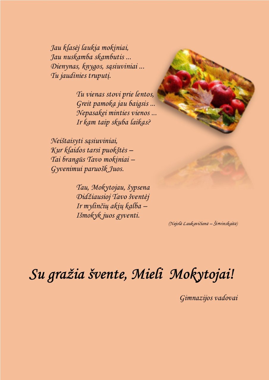 Brangieji mokytojai, labai tikimės, kad ši diena leido pasijusti ypatingai, ir norime dar kartą padėkoti už jūsų geležinę kantrybę ir žinias, kurios atvers mums duris į pasaulį.