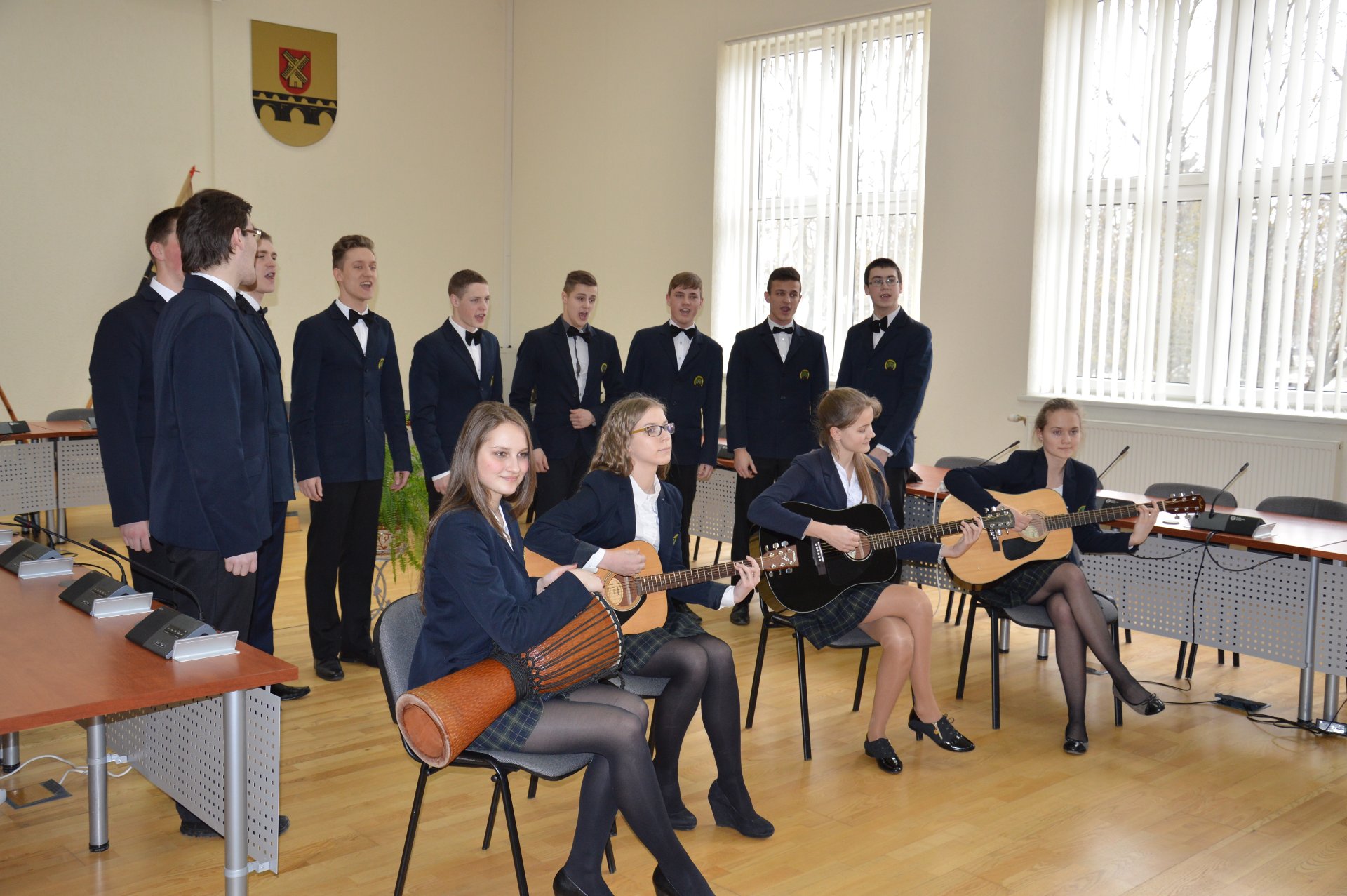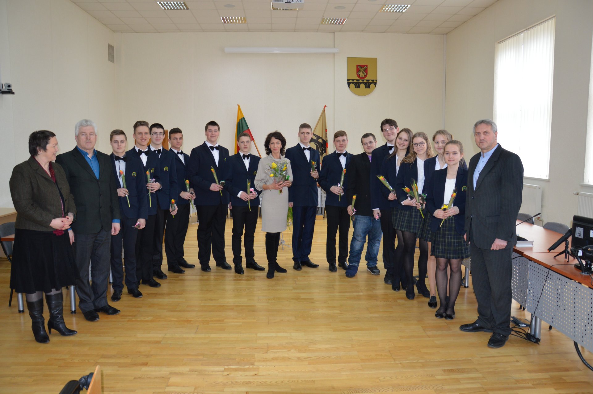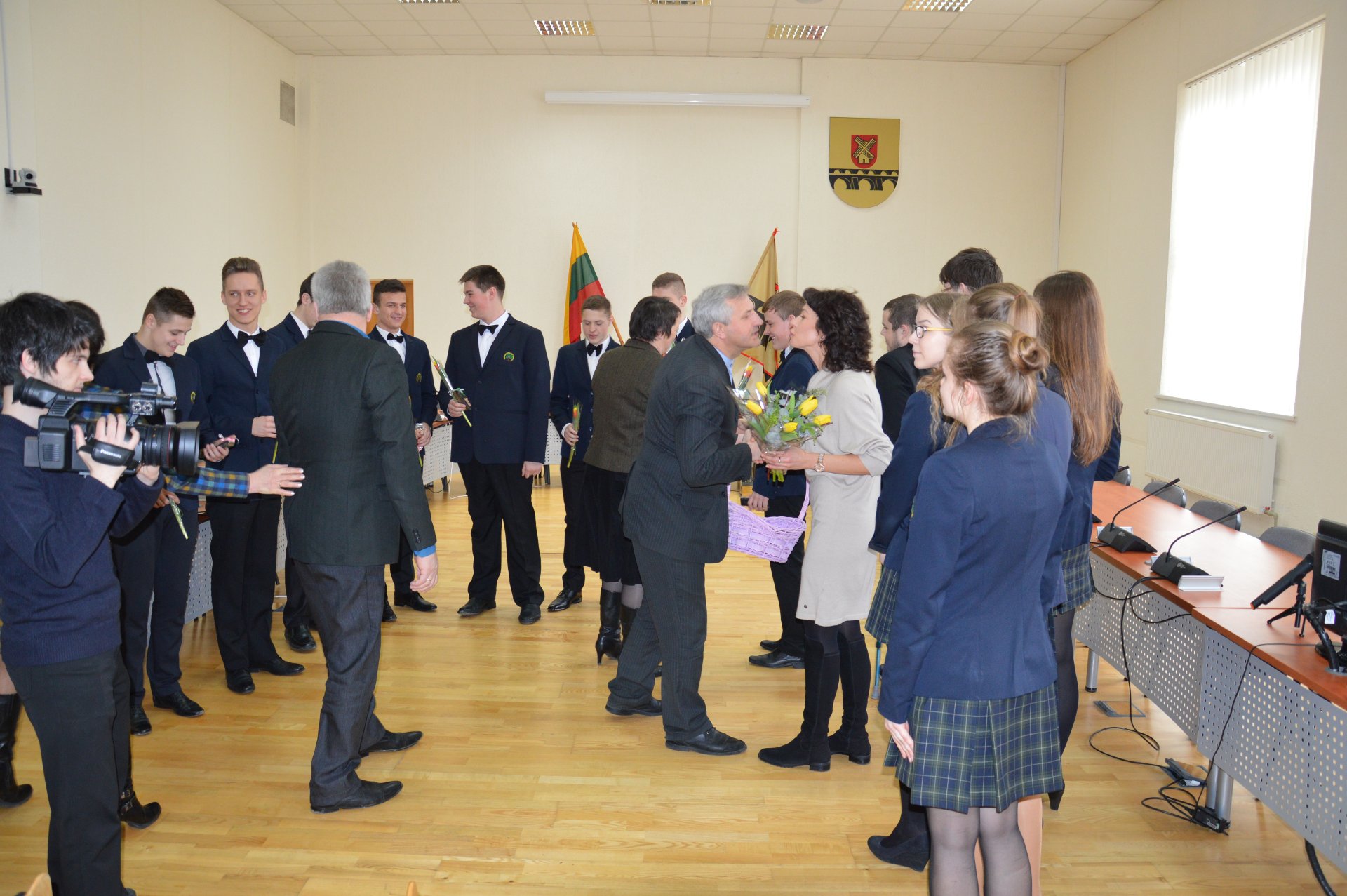 Po simbolinę dovanėlę vaikinams ir jų vadovėms (mokytojoms Ingridai Tuomienei, Aušrelei Nazarovaitei, koncertmeisterei Rūtai Venclovienei) įteikė rajono meras Saulius Gegieckas, mero pavaduotojas Gediminas Grybė, mero patarėja Rūta Sausienė, administracijos direktorė Erika Kižienė. Gimnazistus sveikino ir mokytojoms dėkojo Švietimo skyriaus vedėja Irena Mažulienė.