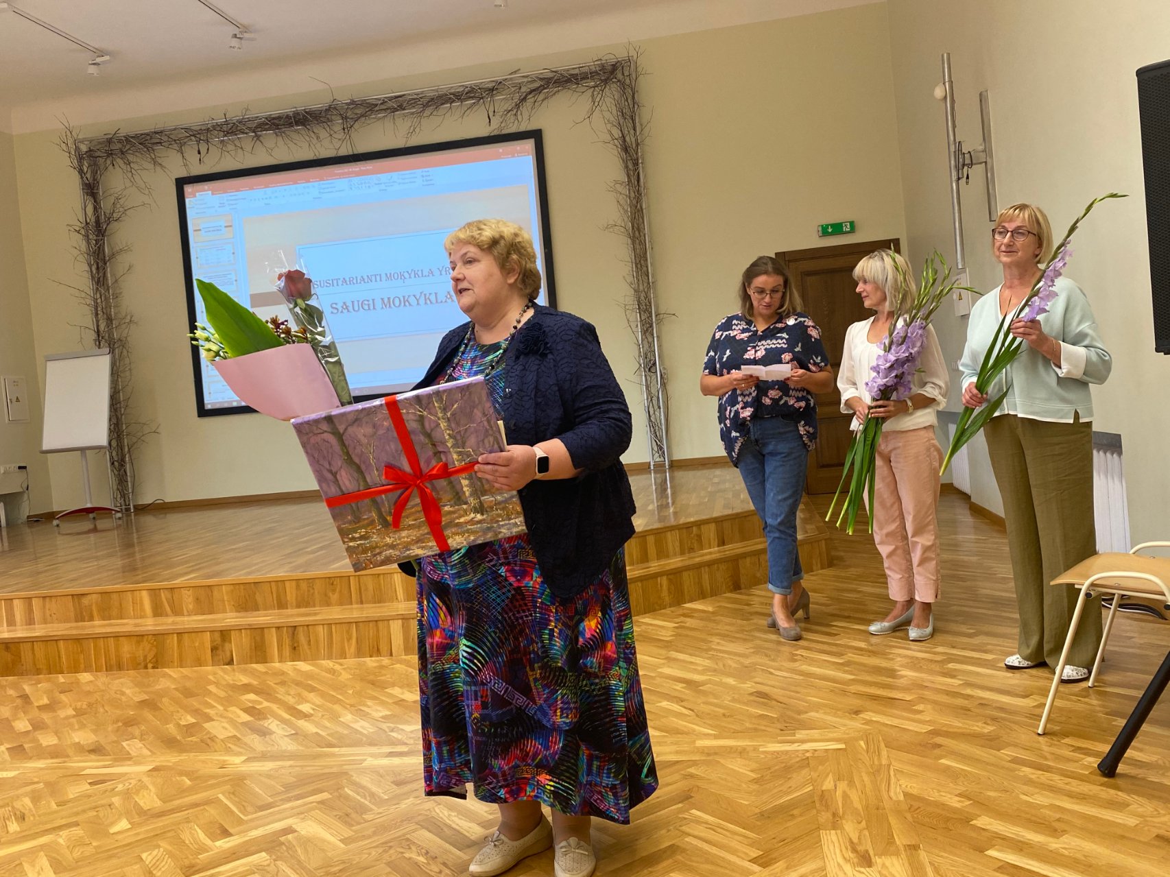 Be to, Pakruojo rajono savivaldybės meras Saulius Margis už ilgametį pedagoginį darbą nuoširdžiai dėkojo ir sėkmės naujajame gyvenimo etape linkėjo lietuvių kalbos ir literatūros mokytojai metodininkei Laimutei Lingevičienei ir anglų kalbos mokytojai metodininkei Vitalijai Balzarienei. Dovanos nuo kolegų, gėlės, apkabinimai, dalijimasis prisiminimais prie arbatos ar kavos puodelio... Jūs, Laimute ir Vitalija, juk niekur nedingstate. Jūs visada būsite šalia. O kitas etapas irgi turi savo žavesio... Apie jį papasakosite, kai susitiksime. Visiems nauja pradžia. Tegul ji būna gera.