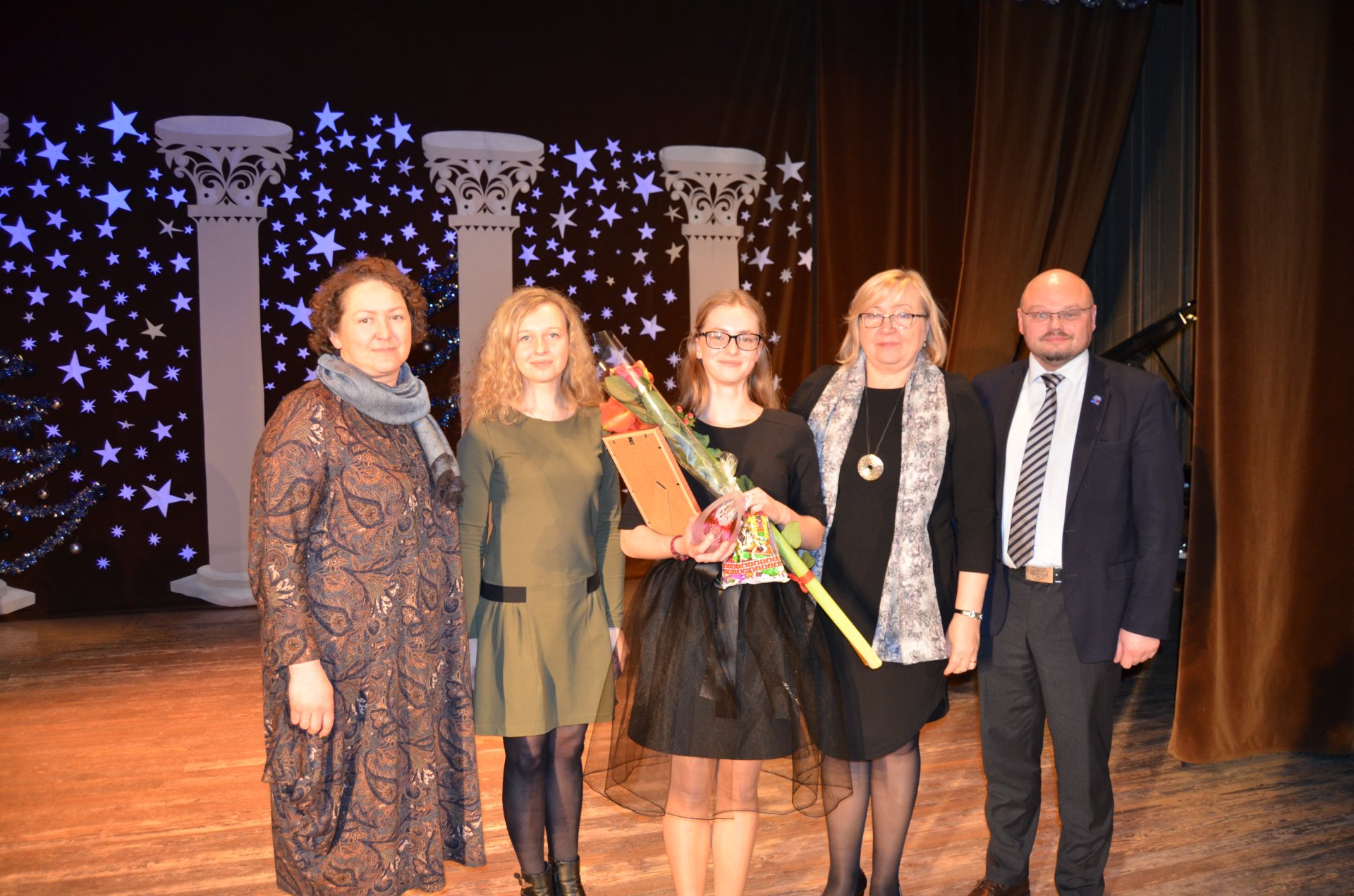 Buvo smagu džiaugtis mūsų šauniaisiais šokėjėliais, kurie paįvairino renginį sukdamiesi šokių „Girnelės“, „Iki paryčių“, „Nemuniečių polka“ sūkuryje. Audringi plojimai skambėjo kolektyvui trypiant latvių šokį „Govju kazaks“. Dėkojame jų choreografijos mokytojai Audronei Geležinytei ir džiaugiamės kartu su jumis. Nuostabiai nuvilnijo Austėjos Dumbrytės, pernai gavusios nominaciją „Geriausia vokalistė“, atliekama Amy Winehous ir Mark Ronson daina „Back to black“. Visus nudžiugino ir Pakruojo Juozo Pakalnio muzikos mokyklos smuikininkų ansamblis, kuriame groja ir mūsų nominantė Ugnė Urbonaitė, klausėmės Eugeny Derbenko „Romantiškos preliudijos“, taip pat sužavėjo ir fortepijono klasės mokinės Domantės Beliackaitės skambinamas Konstantino Čiurlionio Preliudas Ges-dur. Žiūrovai neliko abejingi ir Pakruojo Juozo Pakalnio muzikos mokyklos gitarų kvartetui, ypač mūsų gimnazistui Dovydui Vidzikauskui. Buvo smagu gėrėtis mūsų talentingais mokiniais, puoselėjančiais tikrąsias vertybes.