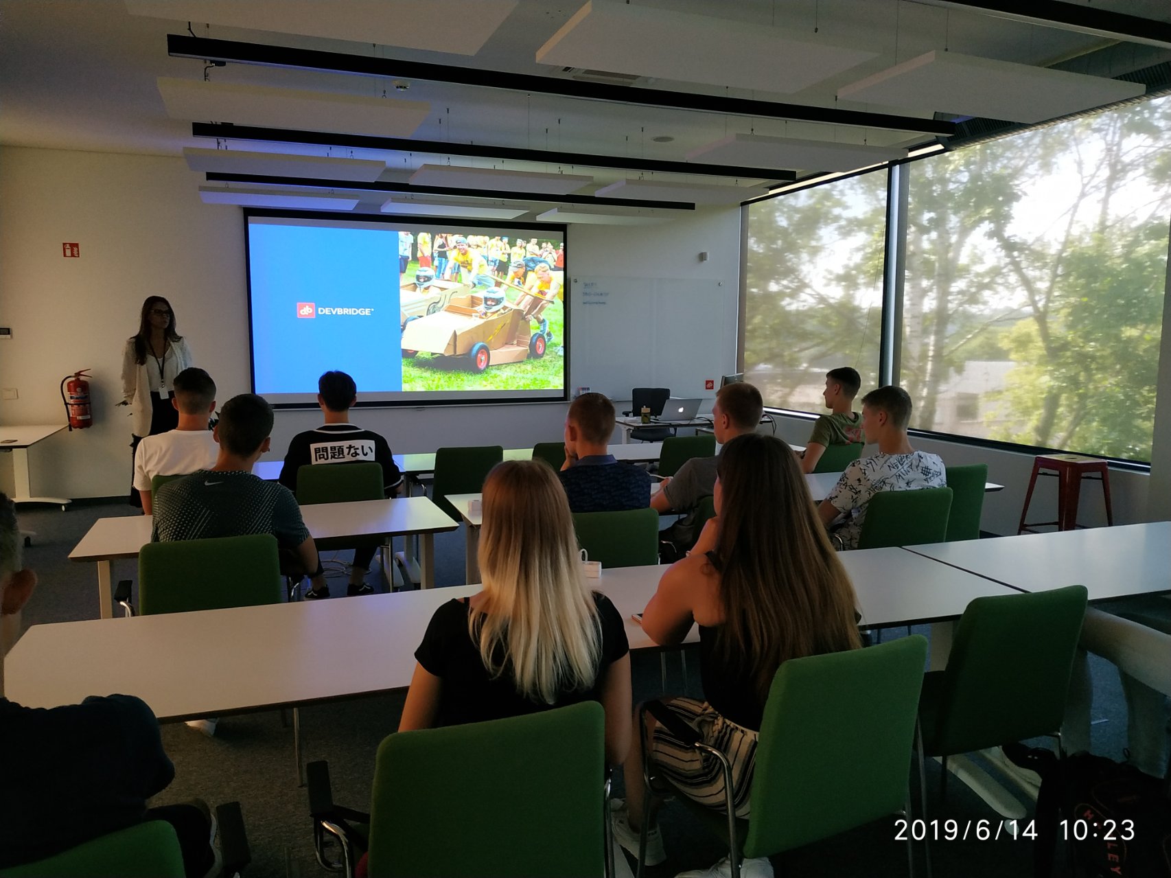 Pirmą kartą lankėmės lietuvių įsteigtoje JAV programavimo paslaugų įmonėje „Devbrige Group“, kurios centrinė būstinė yra Čikagoje. Vizitą mums suorganizavo KTU dėstytoja Rasa Mažutienė. Ten išklausėme lektorių Gedimino ir Luko dvi paskaitas apie programavimą ir programuotojo darbo specifiką. Po to Gintarė mus pakvietė į trumpą ekskursiją po įmonę.