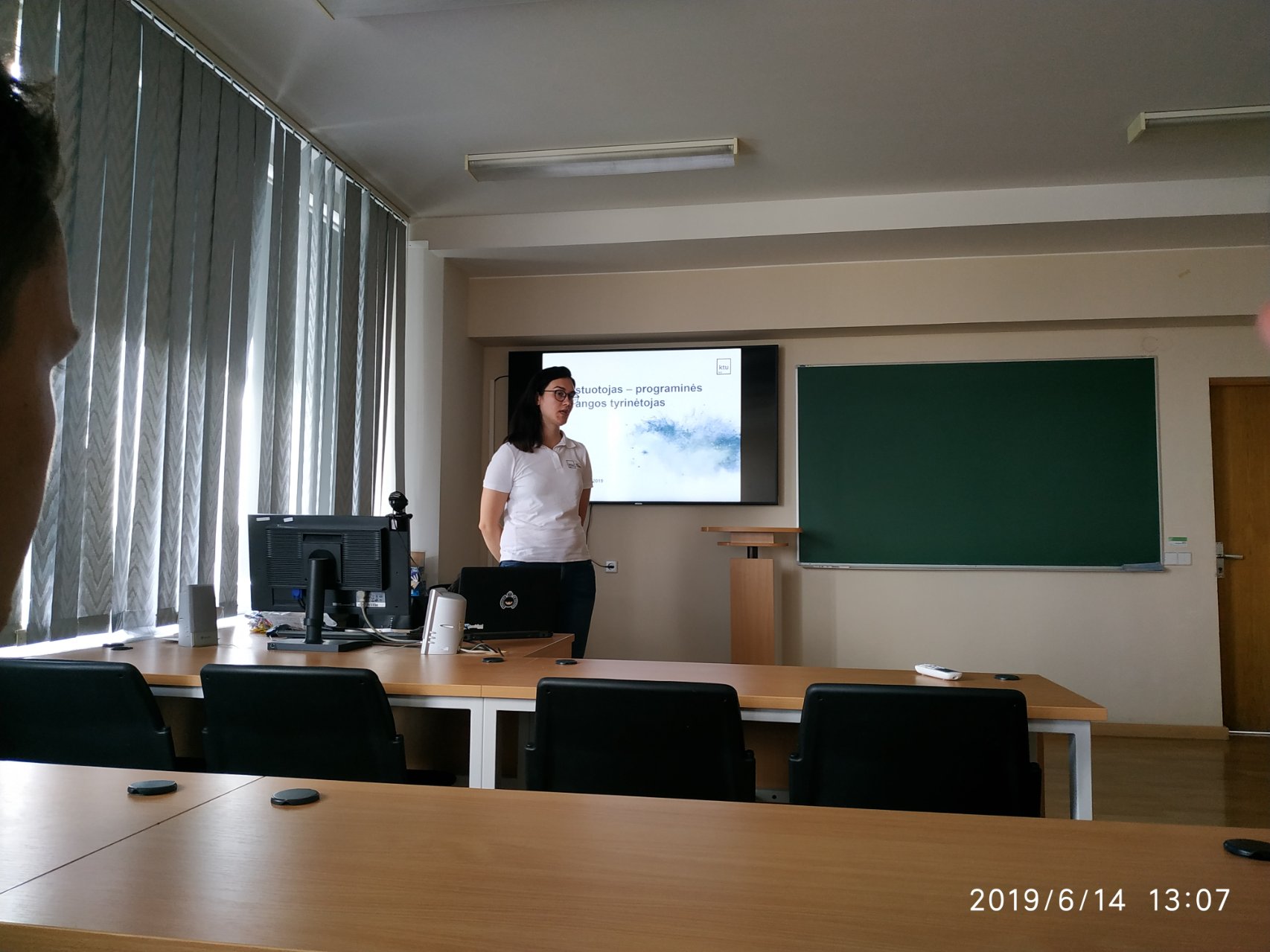 Vėliau vykome į KTU. Dėstytoja Rasa sudomino užsiėmimu tema „Testuotojas – programinės įrangos tyrinėtojas“. Mokiniai galėjo pabūti testuotojais, dirbdami su Lego kaladėlėmis. Buvo įdomi patirtis.