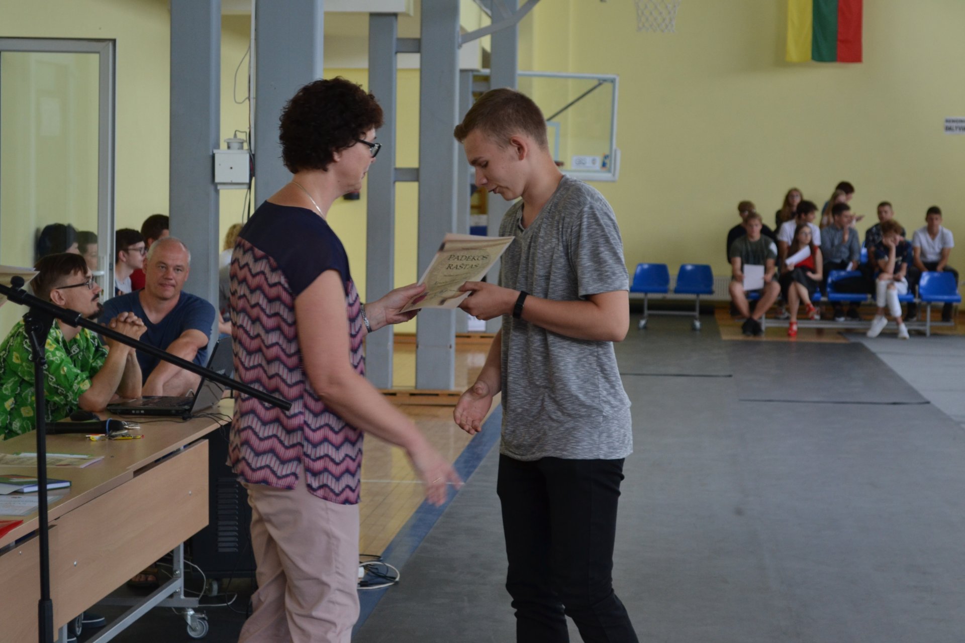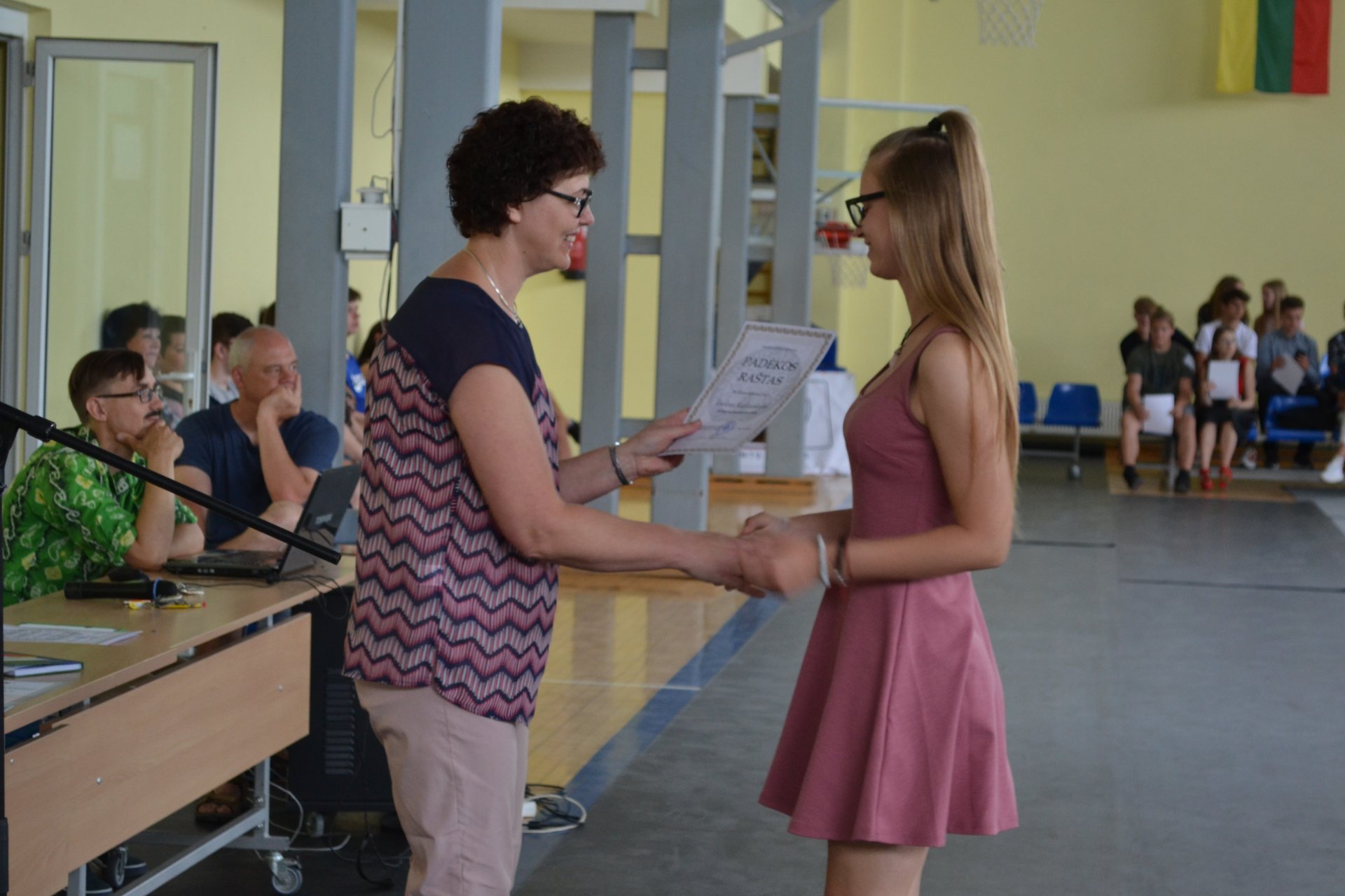 Saulėtą birželio 21-osios dieną direktoriaus pavaduotoja ugdymui Rasa Bertulienė, laikinai atliekanti direktoriaus funkcijas, mokslo metų baigimo proga sporto salėje susirinkusiems gimnazistams dėkojo už puikų mokymąsi, dalyvavimą konkursuose, renginiuose, olimpiadose, įteikė padėkos raštus. Linkėta nuostabių ir saugių atostogų. Visi išsiskirstė viltingai nusiteikę, kad po vasaros susitiks puikiai pailsėję ir pasiruošę įveikti naujus iššūkius.