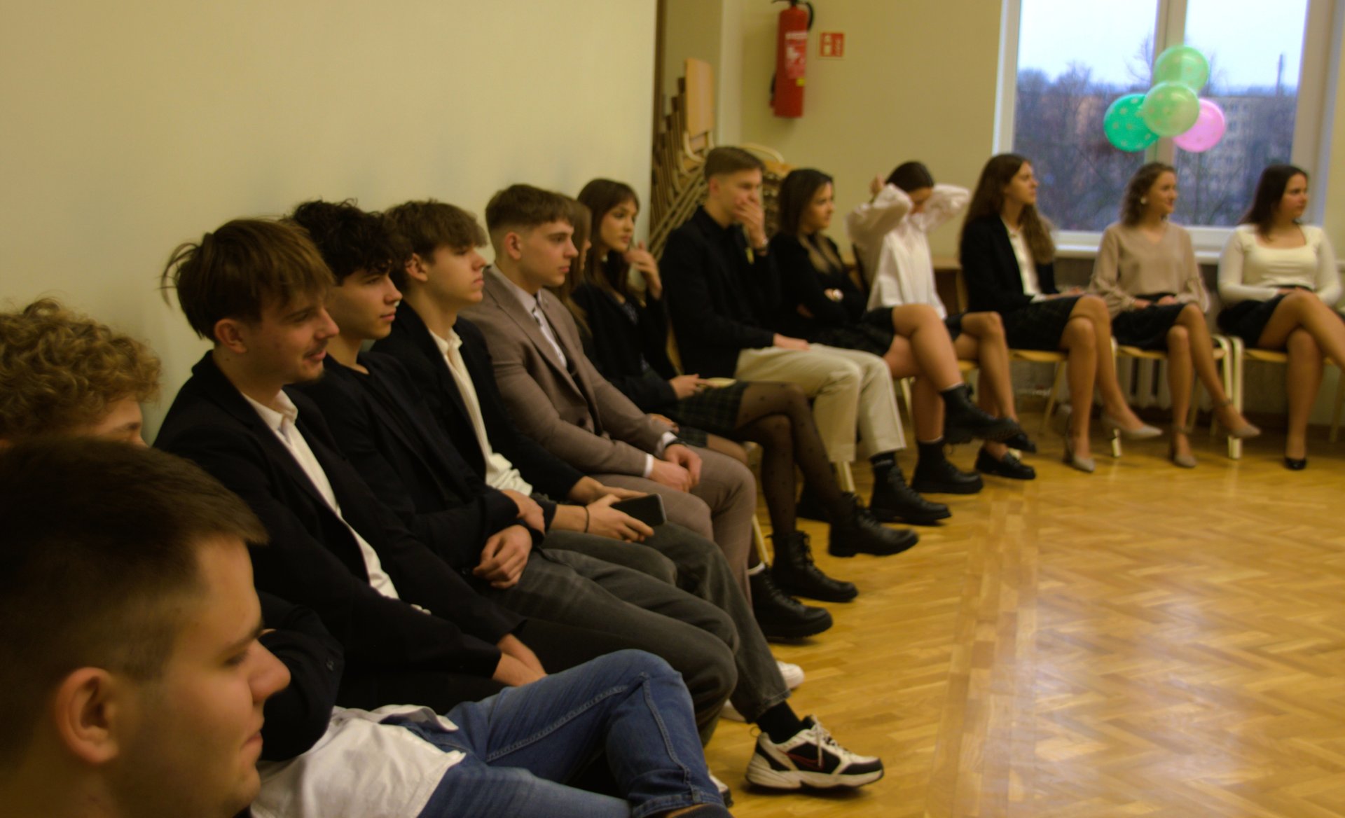 Po septynių pamokų po du trečiokus iš kiekvienos klasės palydėjo ketvirtokus į aktų salę, kur jų jau laukė mokytojai ir kitų klasių atstovai. Skambant S. Povilaičio dainai „Švieski man vėl“, visi susėdo į savo vietas ir prasidėjo cirko šventė.