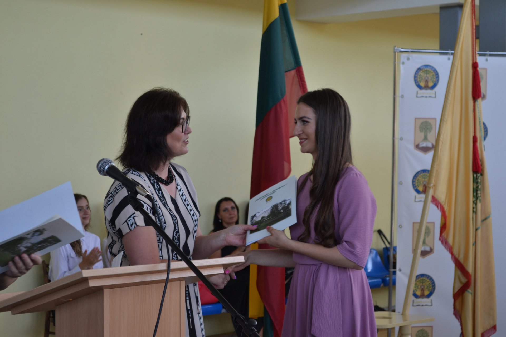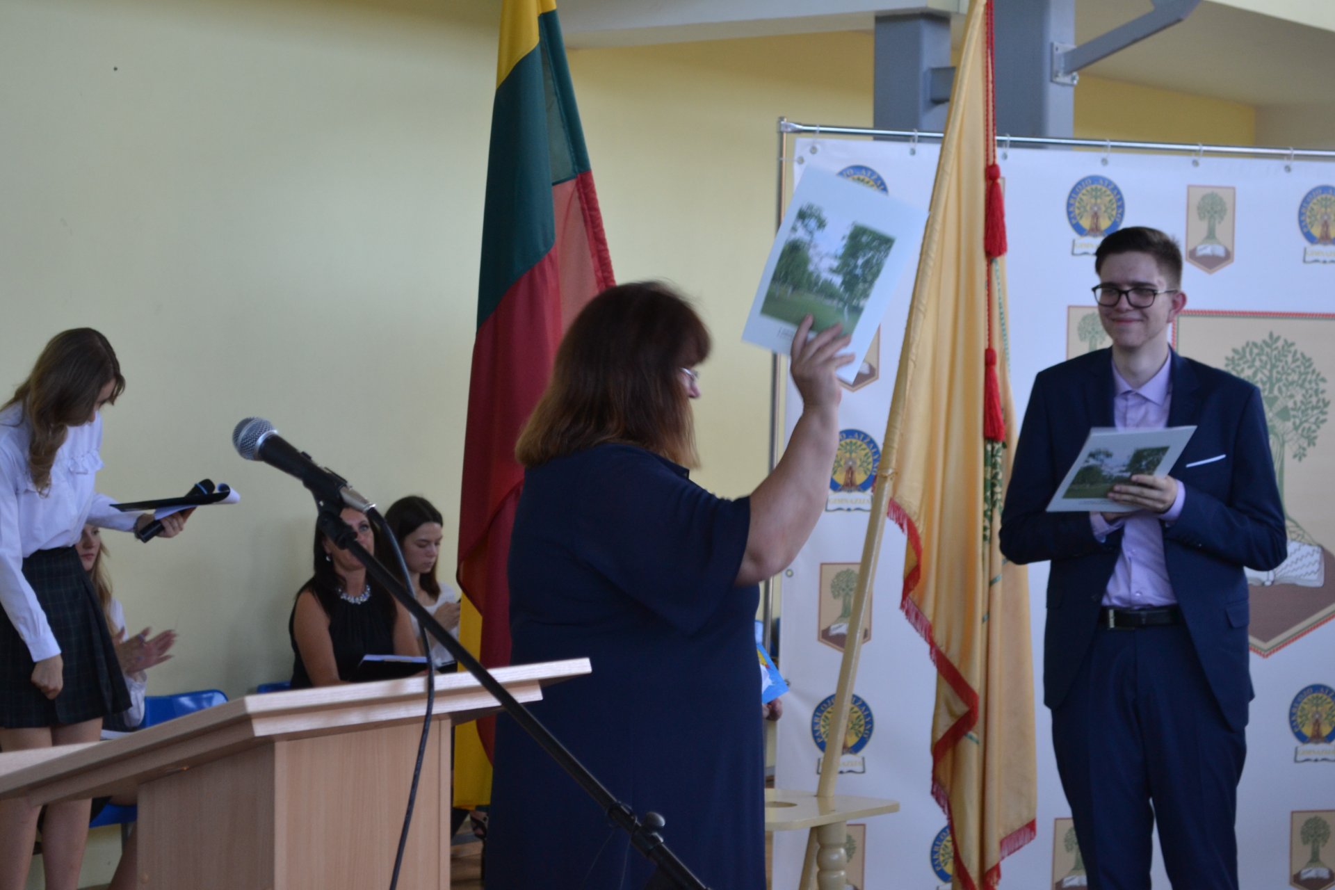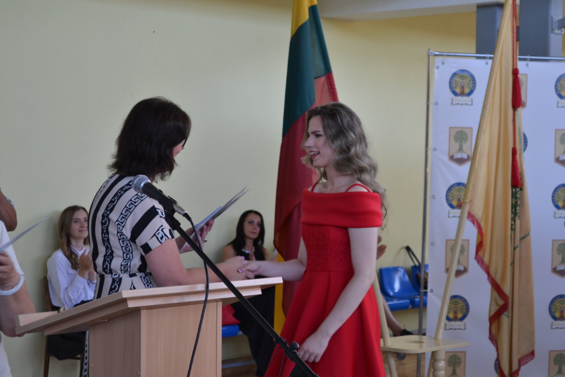 Pakruojo rajono savivaldybės tarybos narė, Seimo nario Antano Matulo padėjėja Erika Kižienė ne tik pasveikino abiturientus brandos atestatų įteikimo proga, bet ir perdavė Seimo nario Antano Matulo dovaną – kiekvienas abiturientas gavo Lietuvos Respublikos Konstitucijos knygelę.