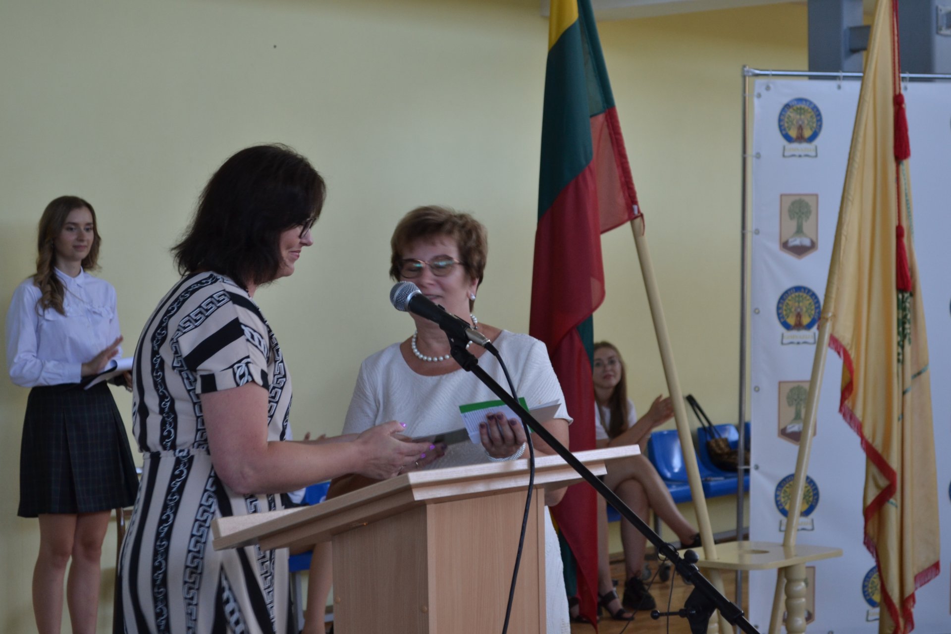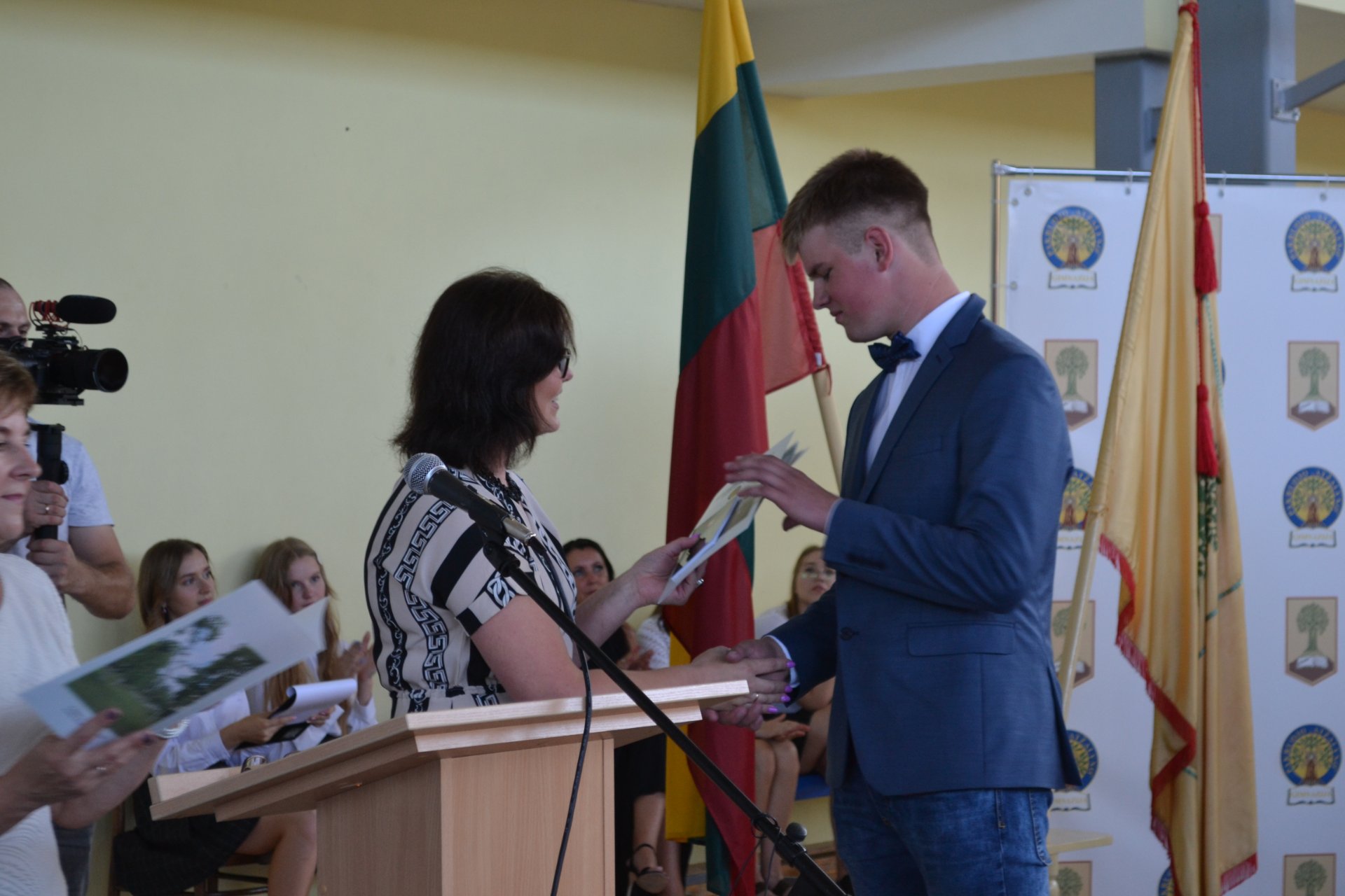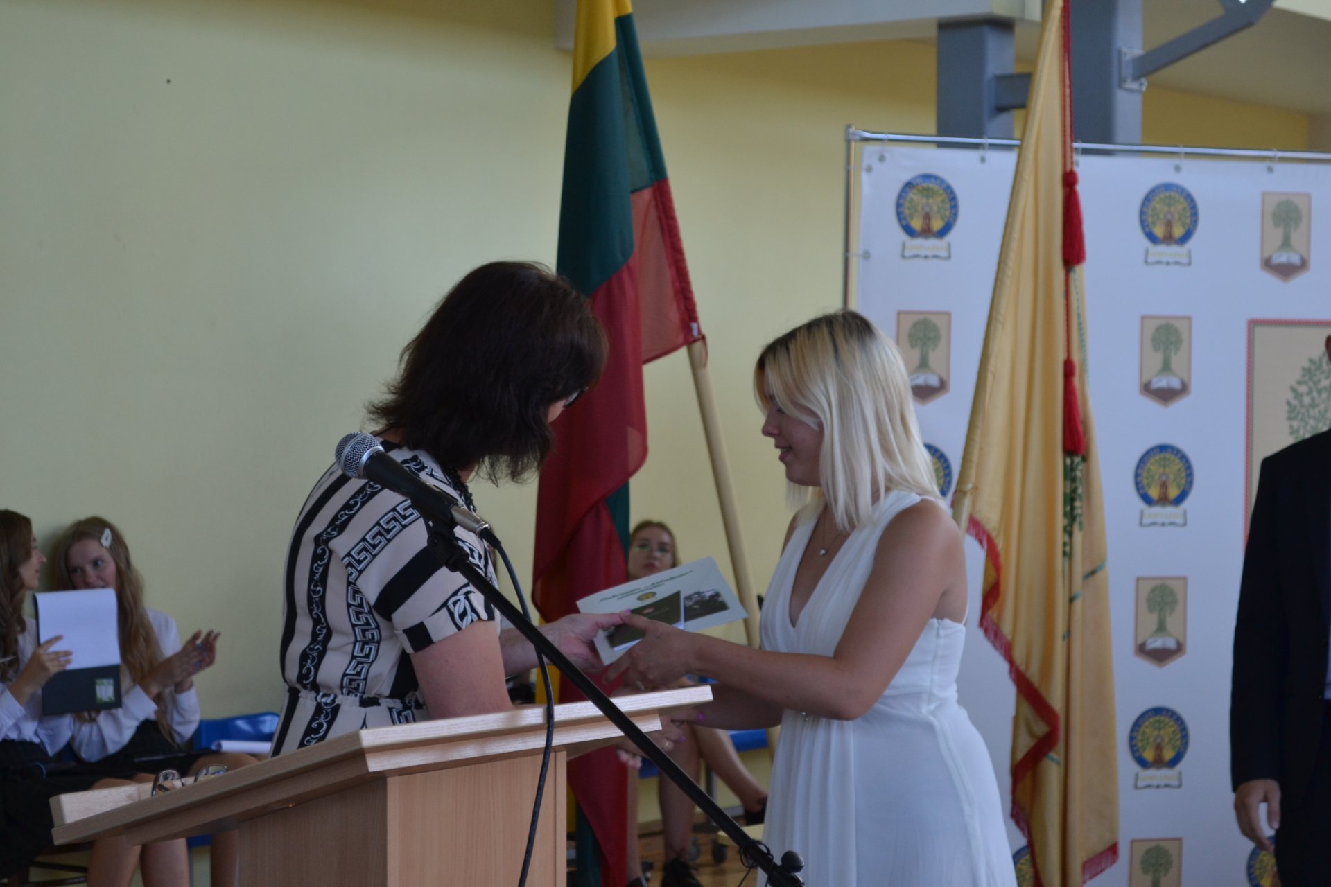 Pakruojo rajono savivaldybės tarybos narė, Seimo nario Antano Matulo padėjėja Erika Kižienė ne tik pasveikino abiturientus brandos atestatų įteikimo proga, bet ir perdavė Seimo nario Antano Matulo dovaną – kiekvienas abiturientas gavo Lietuvos Respublikos Konstitucijos knygelę.