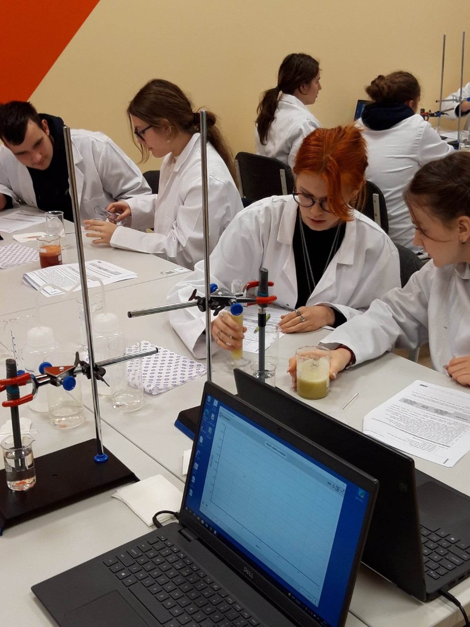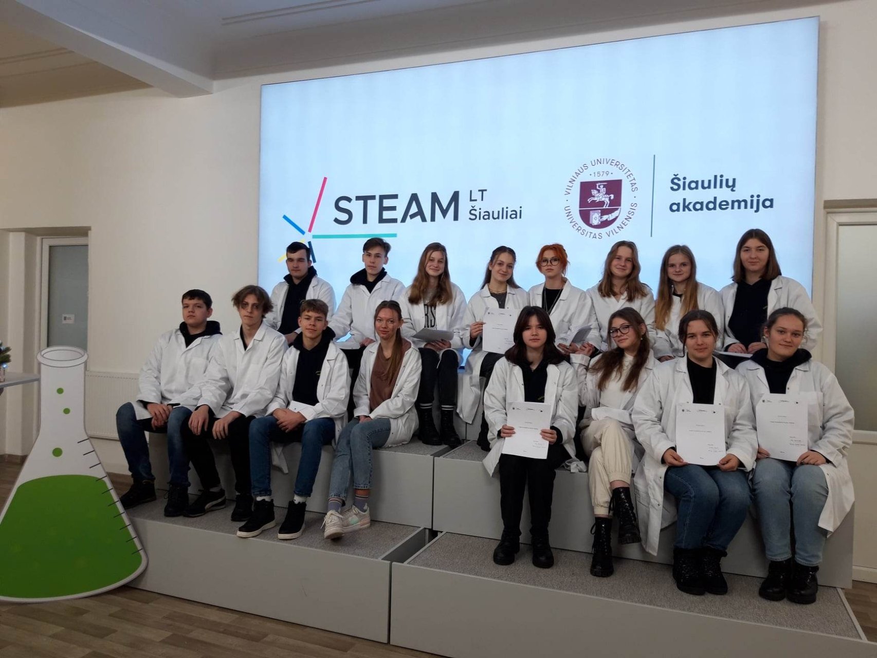 Gruodžio 1 d. grupė, kurios didžiąją dalį sudarė I c klasės mokiniai ir keletas I a klasės gimnazistų, kartu su chemijos mokytoja Monika Nakčiūnienė vyko į VU Šiaulių akademijos STEAM centro chemijos laboratoriją. Gimnazistai atliko šviežiai spaustų vaisių ir daržovių sulčių tyrimą, išmatavo rūgštingumą, elektrinį laidumą, nitrato jonų koncentraciją, oksidacijos-redukcijos potencialą. Kiekvienas pasirinkęs sulčių mėginį turėjo jutikliais išmatuoti jų savybes. Išsiaiškinome, kad sveikiausios vaisių sultys yra vynuogių, o iš daržovių – salierų sultys, bet juose buvo pakankamai daug nitratų. Išvyka visiems labai patiko, įveikėme daug naujų iššūkių.