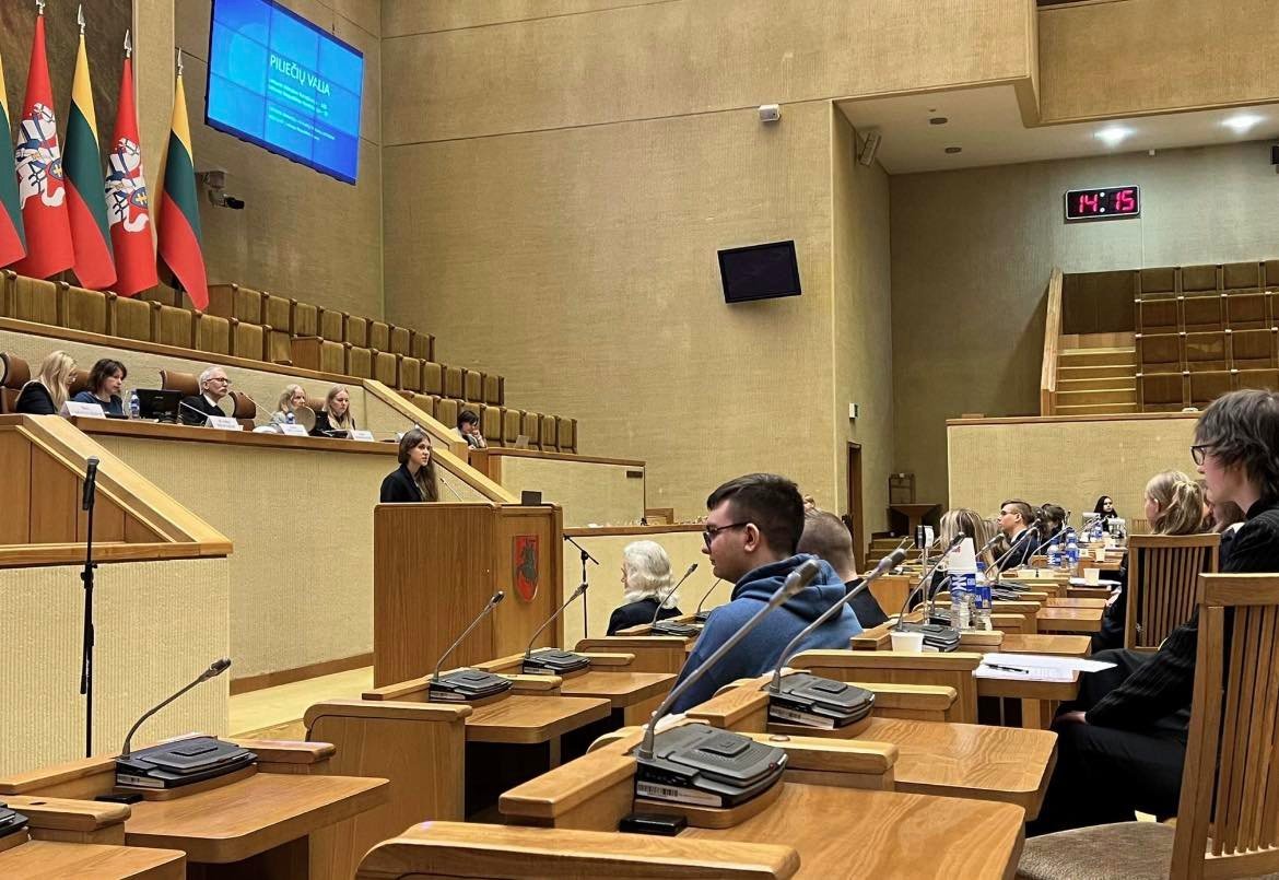 Gruodžio 7 dieną gimnazijos komanda „Piliečiai nuo Kruojos“ vyko į Seimą, kur dalyvavo respublikinėje Konstitucijos viktorinoje, skirtoje paminėti 30-osioms ir 100-osioms Konstitucijų metinėms. Pirmoje dalyje teko 20 testinių klausimų, į kuriuos reikėjo atsakyti per 15 minučių, be to, ir 10 atvirų klausimų – jiems laiko duota tiek pat. Po trumpos pertraukėlės komandų laukė kūrybinė užduotis. „Piliečiai nuo Kruojos“ delegavo atstovą – kalbėtoją, kuris viešai sakė parengtą kalbą. Per 10 minučių reikėjo įsikūnyti į Lietuvos Respublikos Prezidentą, grįžti 100 metų atgal į praeitį ir iškilmingame Lietuvos Respublikos Seimo posėdyje pasakyti kalbą Tautų atstovams. Komandos „Piliečiai nuo Kruojos“ nariai pasitikrino savo žinias Lietuvos mastu, sužinojo daug naujų dalykų bei dėkoja mokytojai G. Kairiūkštienei ir visai palaikymo grupei.