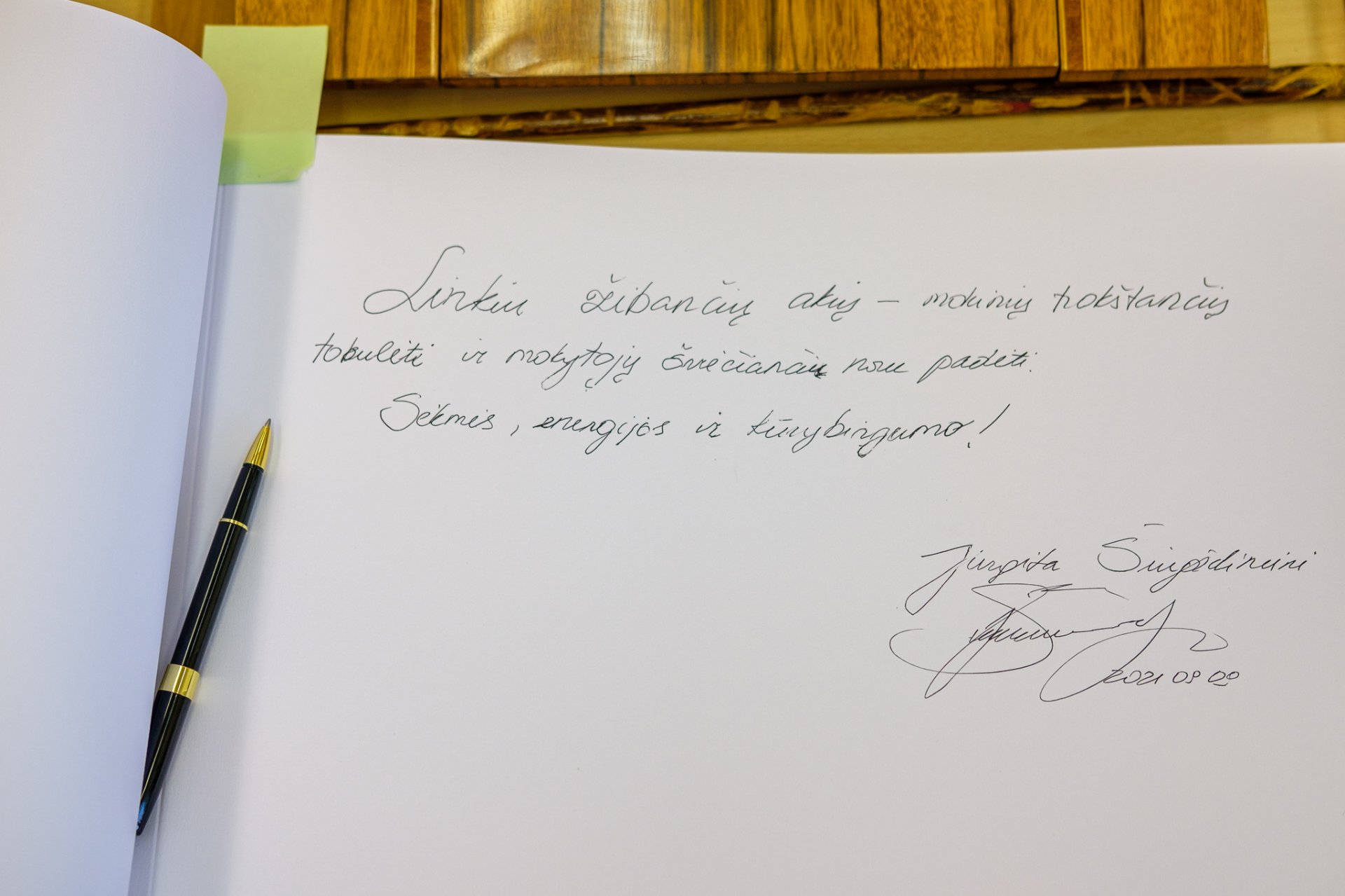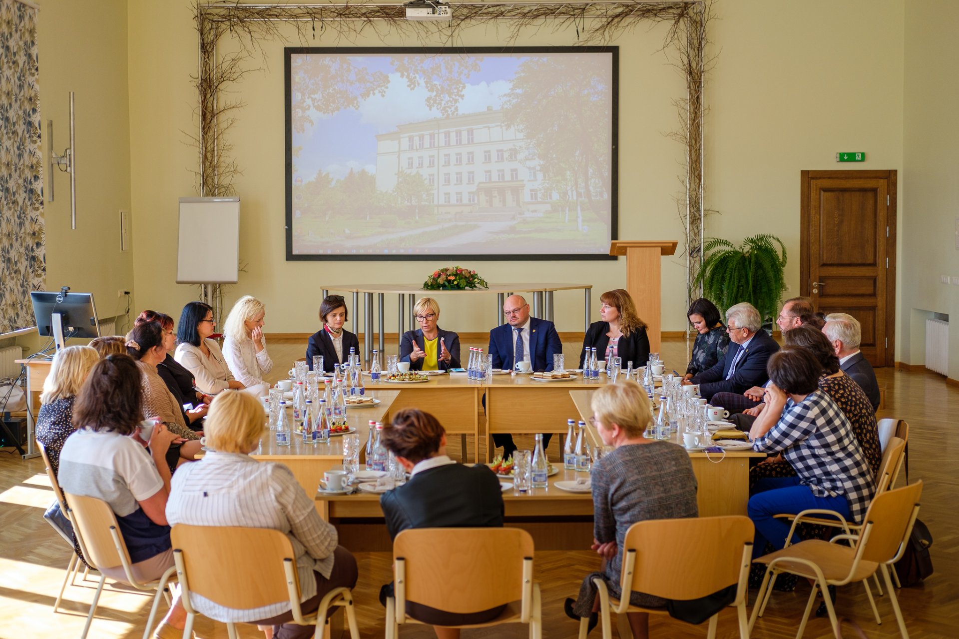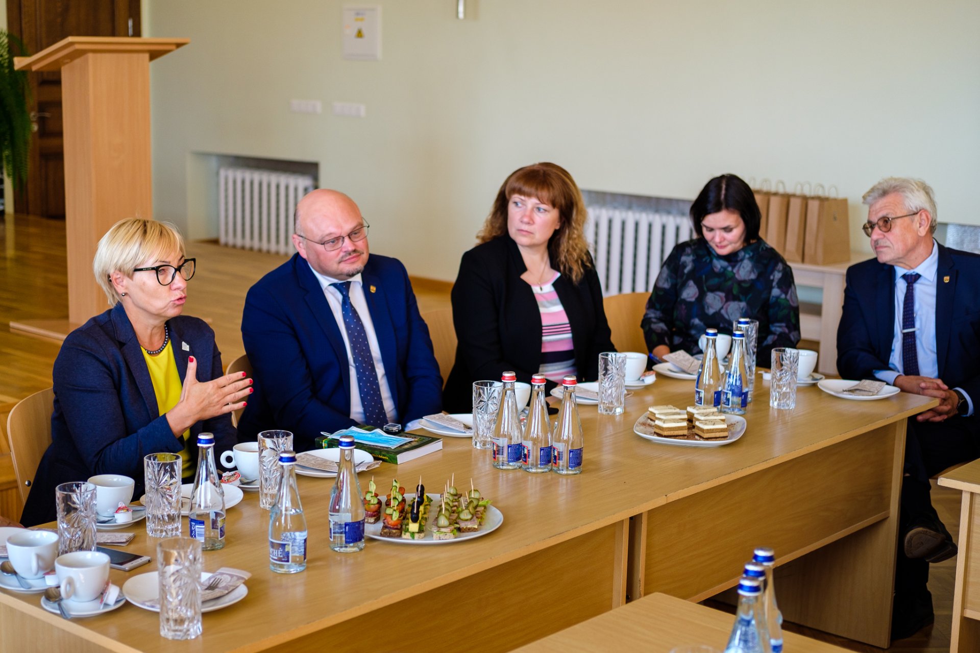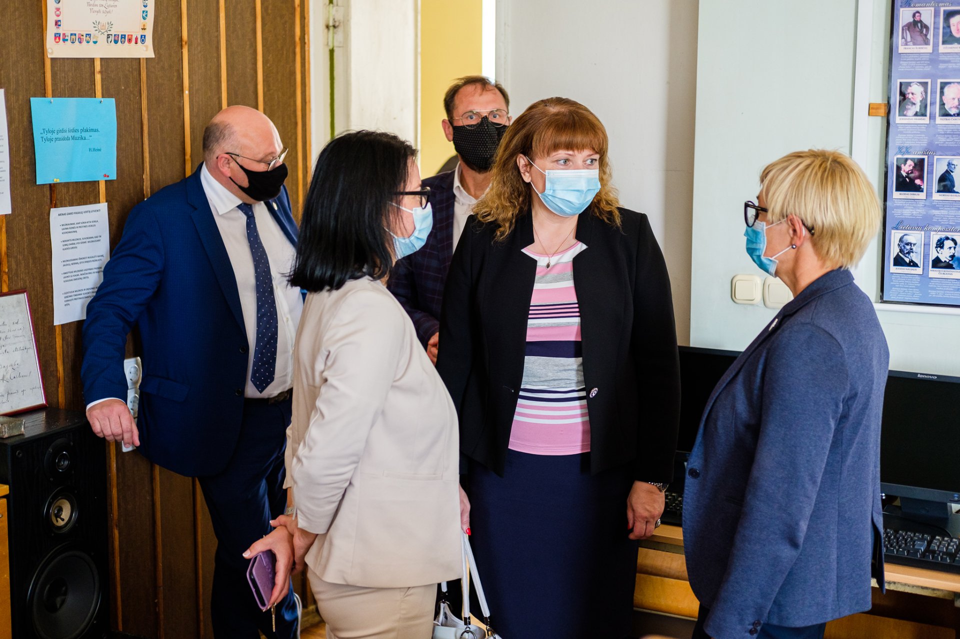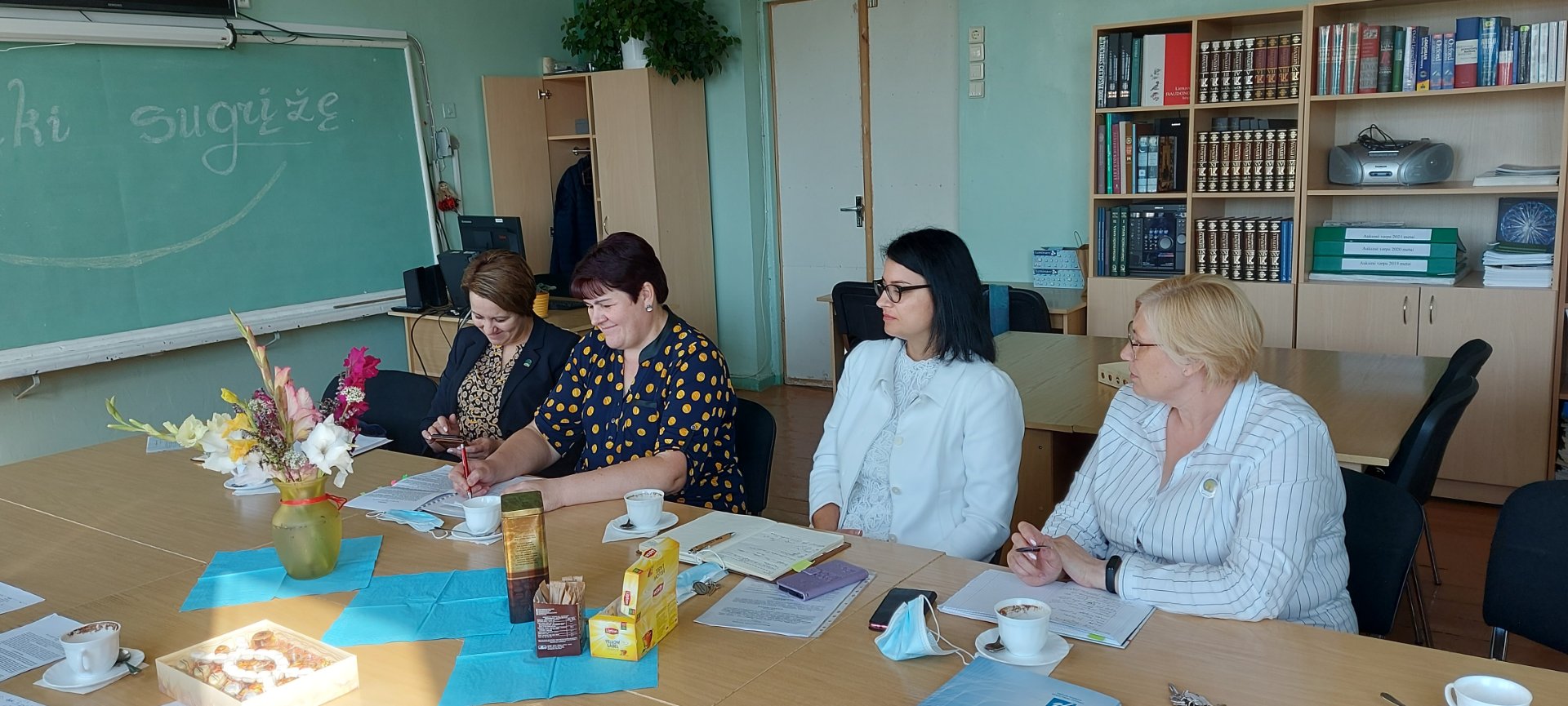 Gimnazijos posėdžių ir konferencijų salėje Švietimo, mokslo ir sporto ministrė J. Šiugždinienė kartu su Pakruojo rajono savivaldybės meru Sauliumi Margiu, Pakruojo rajono savivaldybės administracijos direktore Ilona Gelažnikiene, Pakruojo rajono savivaldybės administracijos Švietimo skyriaus vedėja Irena Mažuliene, kitais savivaldybės administracijos nariais, tarybos nariais, Švietimo skyriaus specialistais, Pakruojo rajono bendrojo ugdymo mokyklų vadovais aptarė Pakruojo rajono švietimo būklę, diskutavo apie „Tūkstantmečio mokyklos“ programos įgyvendinimo galimybes, kalbėjo apie įtraukiojo ugdymo perspektyvas.