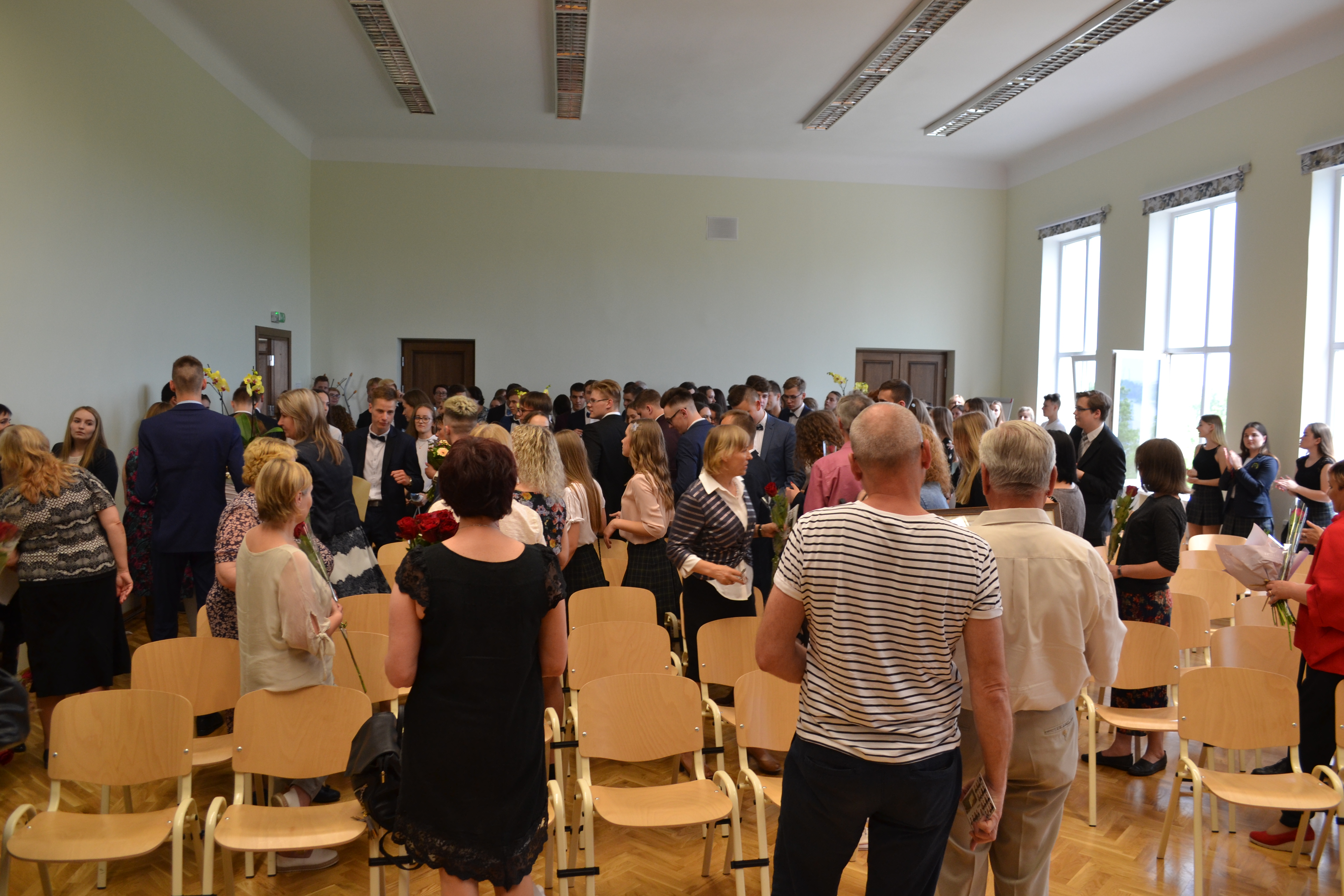 Prie gimnazijos visi plojo varpeliais skambinantiems ketvirtokams, virpančiomis širdelėmis žingsniuojantiems kartu su savo auklėtojomis. Iškart po iškilmingos eisenos pasigirdo neįprastai ilgai trukęs gimnazijos skambutis ir abiturientai susirinko į paskutinę pamoką, kur grįžta į vaikystę, linkėta nesutrikti gyvenimo kelionėje, pasidžiaugta kartu patirtomis įkvėpimo akimirkomis, ištartais žodžiais, glaudžiančiais, globiančiais.