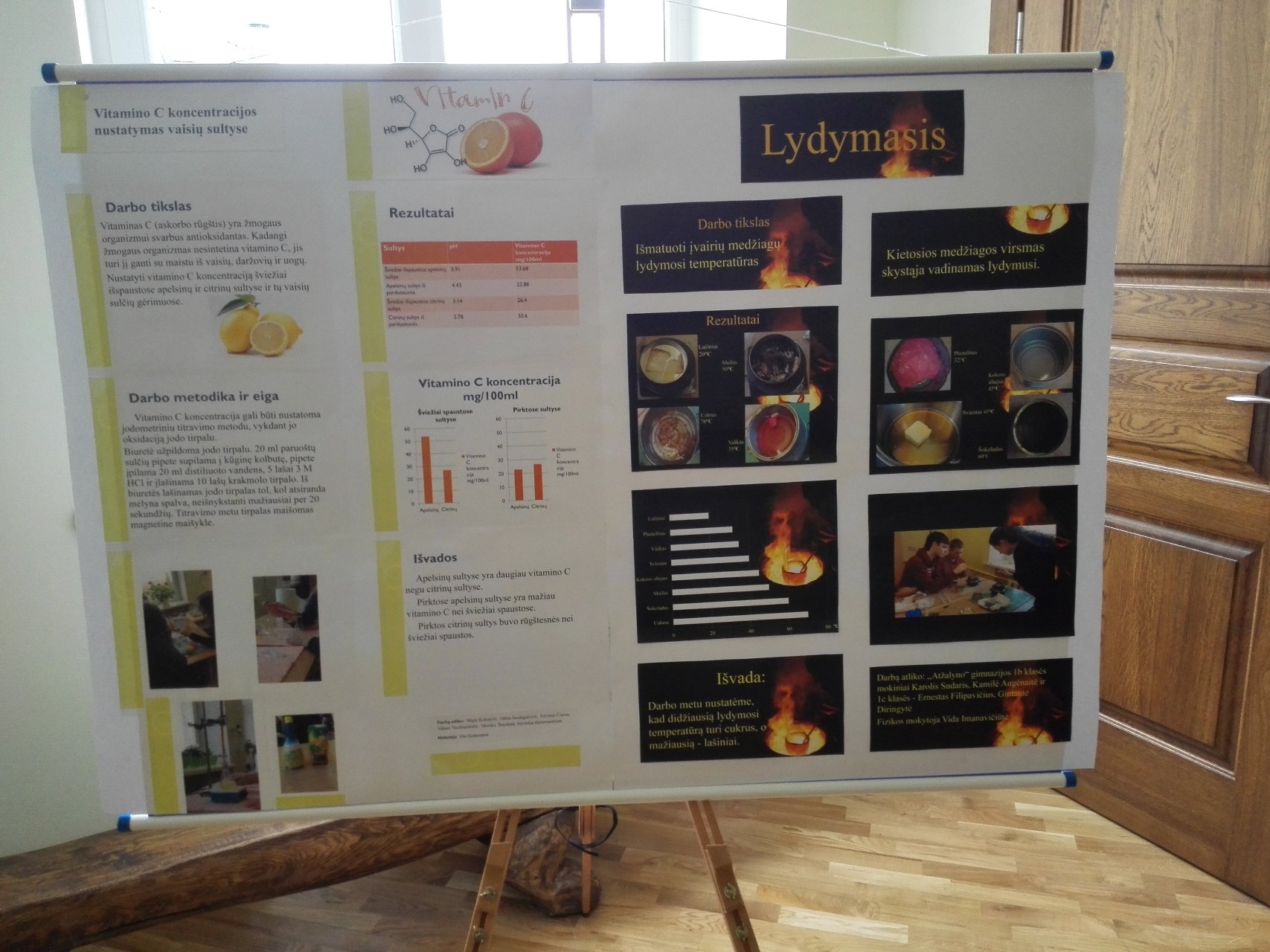 „Atžalyno“ gimnazijos gamtos mokslų mokytojai buvo paruošę stendinius pranešimus: chemijos mokytoja metodininkė Vita Gudonienė pristatė projektą „Vitamino C koncentracijos nustatymas vaisiuose ir daržovėse“, biologijos mokytoja metodininkė Daiva Makauskienė – „Fermento pektinazės veikimo sąlygų tyrimas“ ir „Osmoso reiškinio tyrimas“, fizikos mokytojos metodininkės Vidos Imanavičiūtės projektas vadinosi „Lydymas“, chemijos vyresnioji mokytoja Danutė Stočkūnienė paruošė pranešimą apie „Fotosintezės greičio priklausomybę nuo aplinkos apšvietimo intensyvumo“, o fizikos mokytoja metodininkė Rasa Bertulienė sudomino projektu „Paprastieji mechanizmai mano sodyboje“.