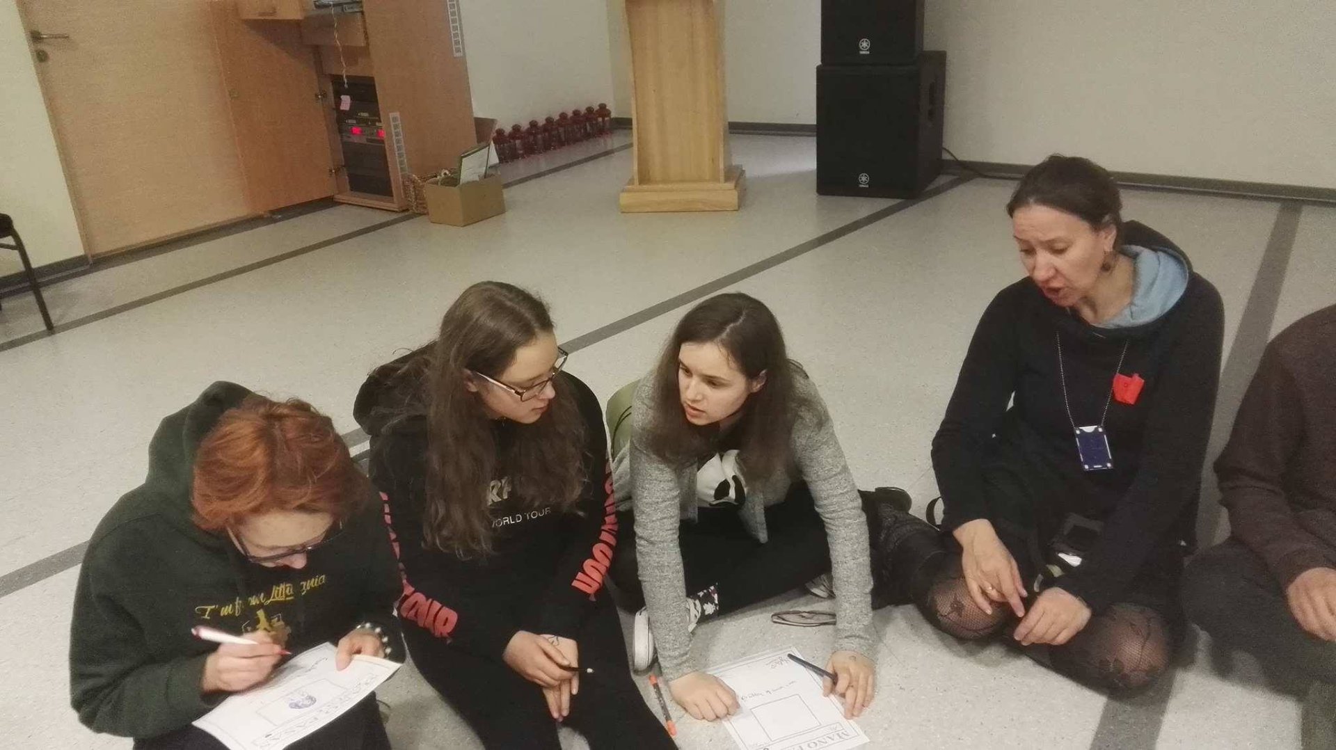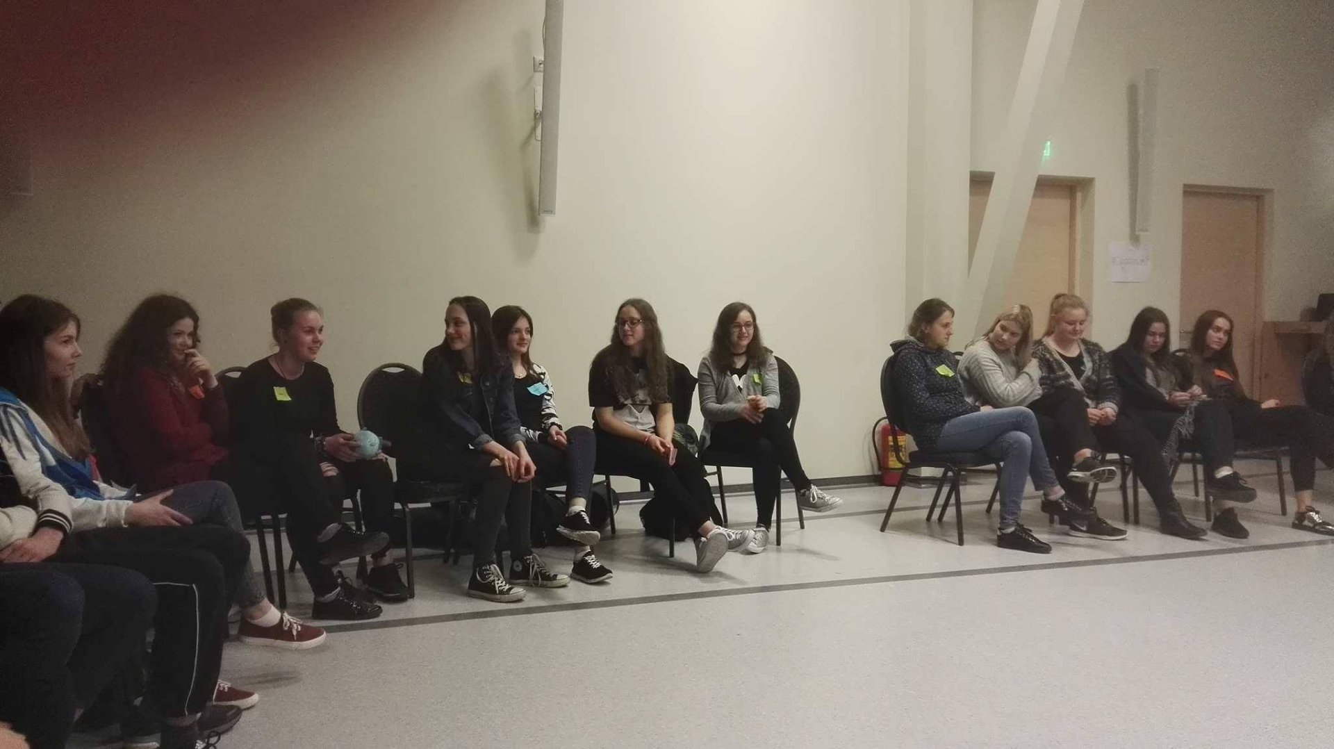 Po įdomios ir rimtos paskaitos vėl tęsėsi linksmybės. Atlikome kūrybines užduotis, žaidėme pasitikėjimo, loginius, bendravimo žaidimus.
