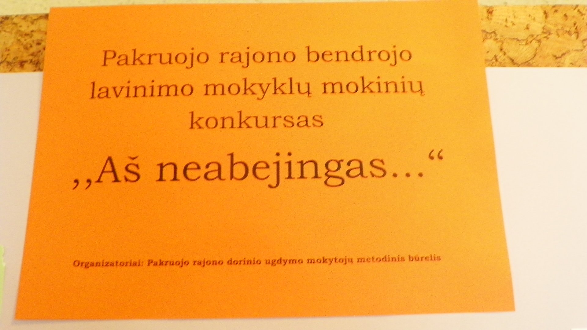 Pakruojo rajono bendrojo lavinimo mokyklų konkurso „Aš neabejingas...“ baigiamasis etapas vyko Pakruojo apylinkės teisme. Čia buvo organizuota piešinių paroda, publikuojamos rašinių ištraukos, susegta geriausiai įvertintų darbų knyga.