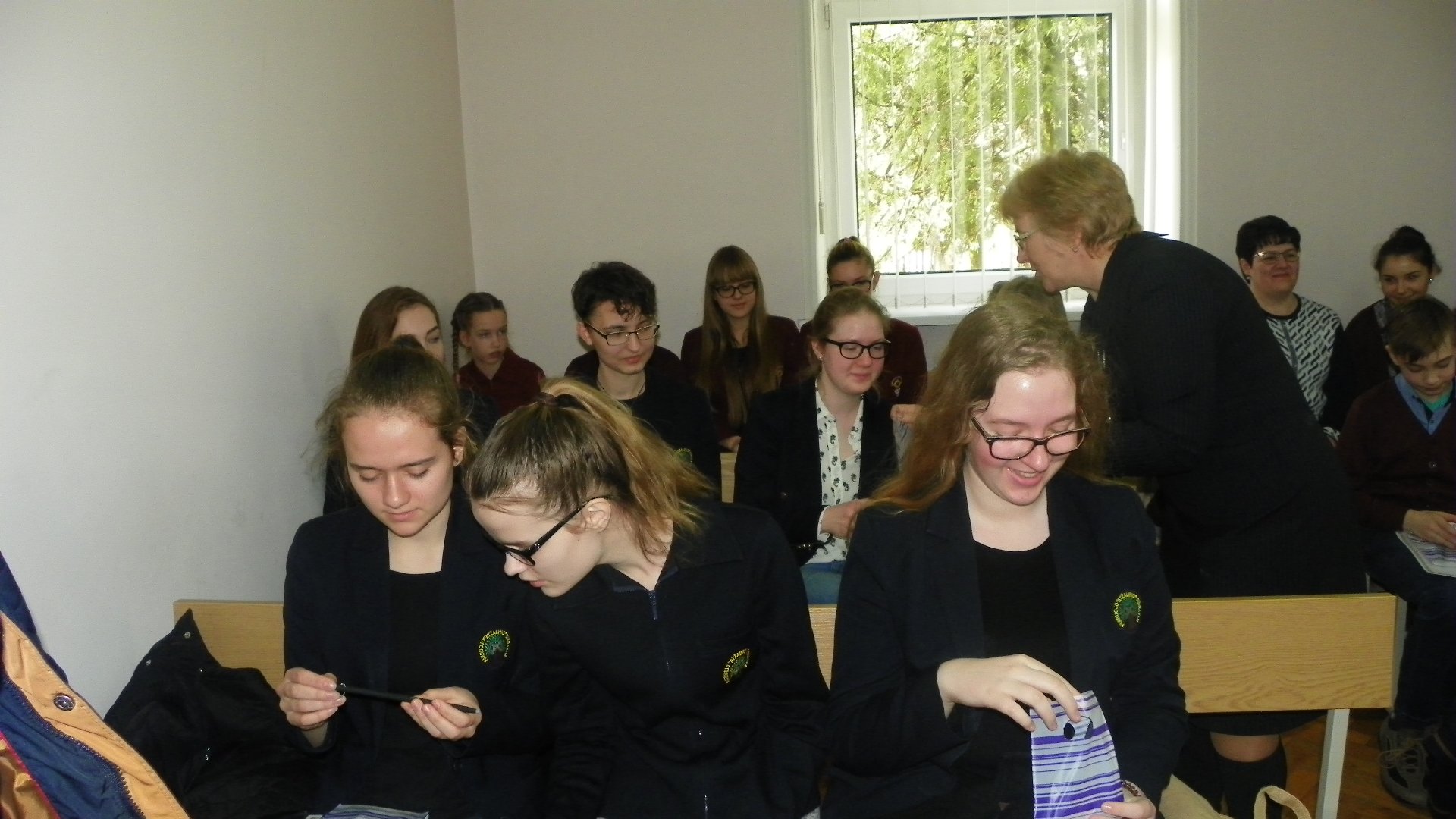 Žaneta Daukšienė, teisėjos padėjėja, plačiau supažindino su teismo darbu. Ji paaiškino, kad Teismas yra valstybinė valdžios institucija, vykdanti teisingumą Lietuvos Respublikoje. Teisėjos padėjėja pabrėžė, kad Pakruojo rajono apylinkės teismas yra bendrosios kompetencijos teismas, pirmąja instancija nagrinėjantis civilines, baudžiamąsias ir administracinių teisės pažeidimų bylas. Įstatymų nustatytais atvejais teisėjai atlieka ikiteisminio tyrimo teisėjo funkcijas bei kitas apylinkės teismo kompetencijai įstatymų priskirtas funkcijas. Taip pat Žaneta Daukšienė pasakojo apie teisėjų aprangos ypatumus, simbolius bei simboliką, kuri būtina teismo posėdžių salėje.