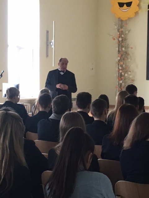 Balandžio 25 d. gimnazijoje svečiavosi ir klasikine muzika džiugino garsus Lietuvos smuikininkas, dirigentas, politikas, profesorius Gediminas Dalinkevičius ir džiazo pianistas Povilas Jaraminas. Svečiai ne tik atliko keletą gerai žinomų kūrinių, bet ir pasidalijo mintimis, skatino mokinius skirti laiko sau bei tobulėti.