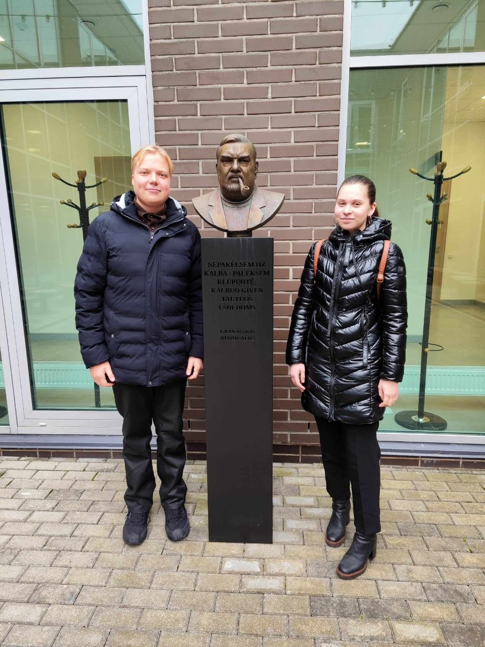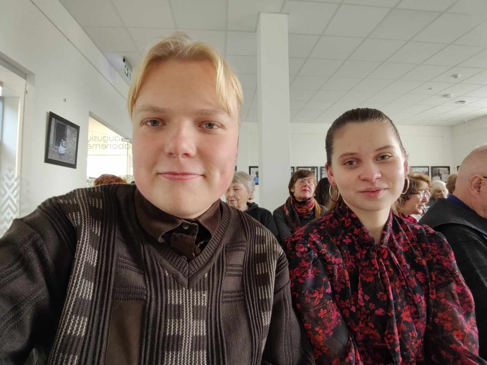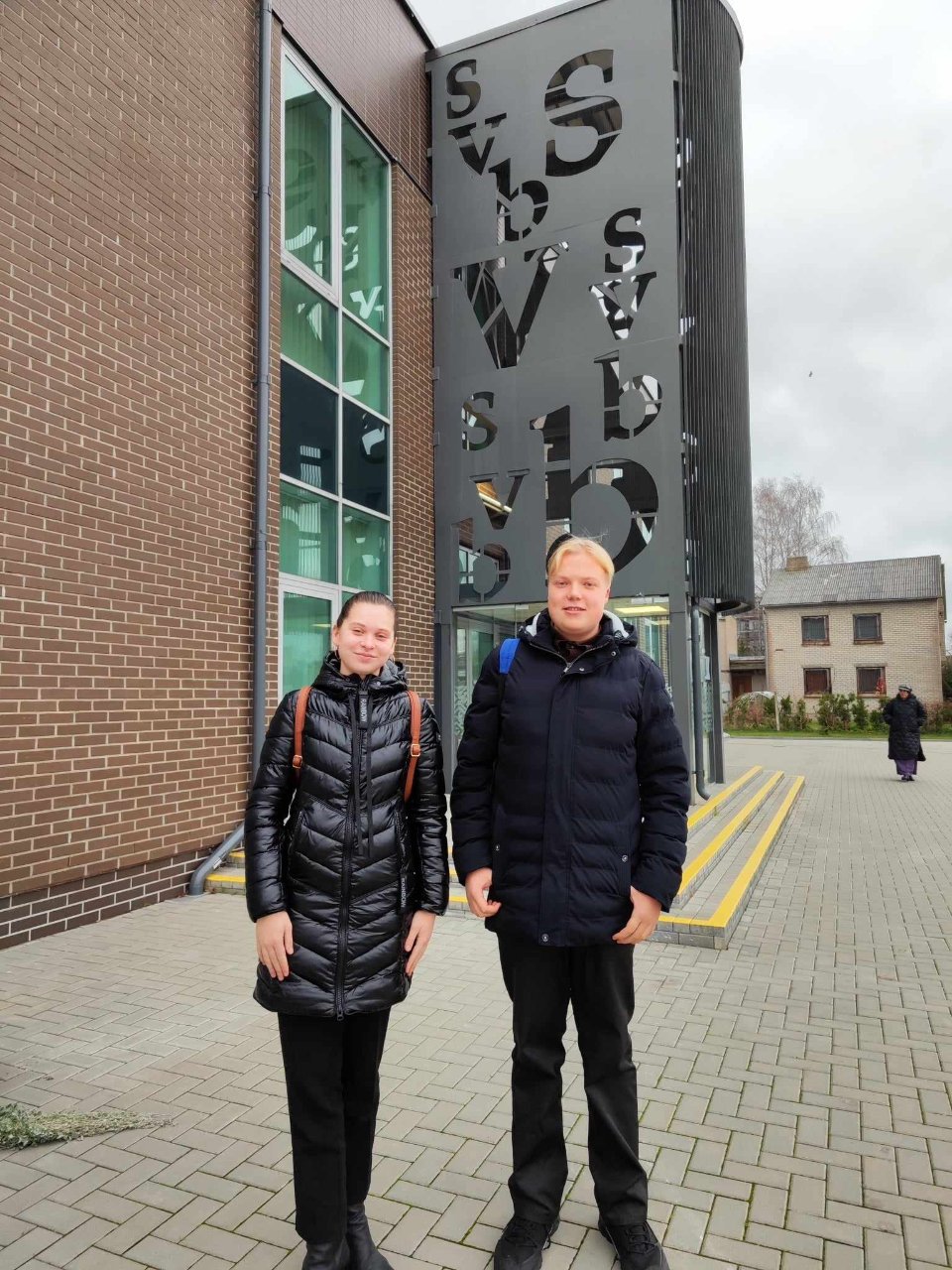 Lapkričio 18 dieną I b klasės gimnazistė Emilija Šimaitytė ir IV c klasės gimnazistas Vincentas Lekas, pusseserė ir pusbrolis, lankėsi Skuode, kur dalyvavo respublikinio eilėraščių konkurso „Gyvenimas trumpas, o laikas ir erdvė – amžini“ baigiamojoje šventėje. Nuvykę į Skuodą pirmiausia buvome pakviesti į ekskursiją, kurią vedė gidas, Romualdo Granausko viešosios bibliotekos direktorius Jonas Grušas. Šiemet Skuodas švenčia pirmojo paminėjimo rašytiniuose šaltiniuose 770 metų jubiliejų. Pamatėme Skuodo bažnyčias, dvarą, muziejų. Be to, pasivaikščiojome parke, nušviestame saulės, sukėlusios pavasario iliuziją. Po ekskursijos ėjome į Romualdo Granausko viešąją biblioteką, kuri pradėjo veikti šių metų kovo mėnesį. Biblioteka nustebino savo dydžiu, modernumu ir tautiniais motyvais. Renginys vyko bibliotekos konferencijų salėje. Emilija pelnė jauniausios konkurso dalyvės apdovanojimą. Vincentas netikėtai renginyje buvo pakviestas paskaityti neatvykusių laureatų eilėraščių. Konkurse dalyvavo 74 kūrėjai iš 29 savivaldybių. Renginį vedė Skuodo literatų klubo pirmininkė Dalia Zabitienė. Kalbą sakė ir laureatus apdovanojo komisijos pirmininkas, literatūros kritikas dr. Marijus Šidlauskas, Skuodo rajono savivaldybės meras Stasys Gutautas ir mero patarėja Daiva Jonušienė. Muzikinius kūrinius smuiku dovanojo Vilija Balsytė-Jakutienė. Džiaugiamės galėję pažinti dalelę Žemaitijos, plėsti kultūrinį ir dvasinį akiratį ir šiltai pabendrauti su renginio organizatoriais bei kūrėjais iš visos Lietuvos.