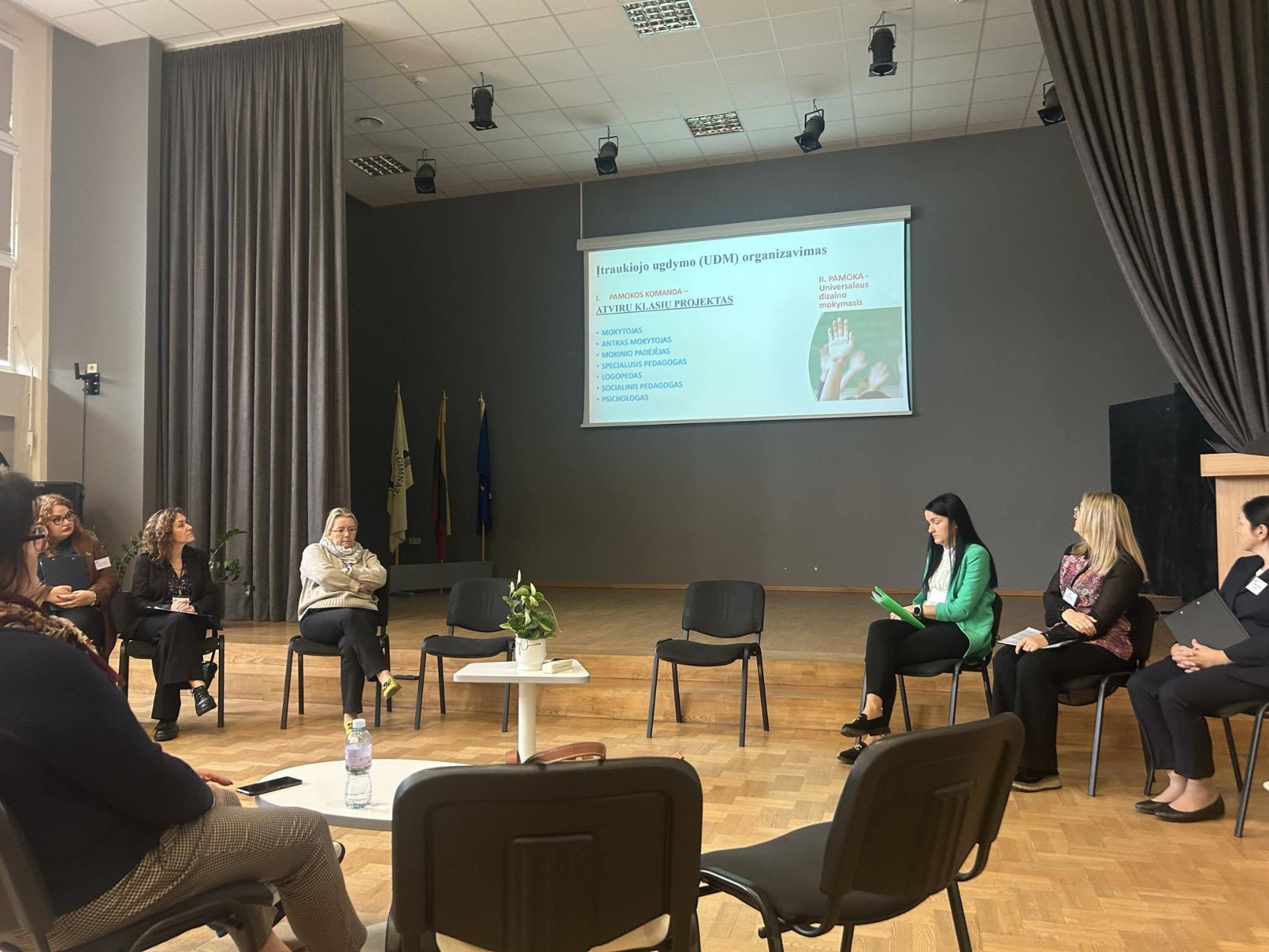 Seminarą vedė Rasa Nedzinskaitė-Mačiūnienė. Universalus dizainas mokymuisi (UDM) – tai mokslo įrodymais pagrįsta ugdymo prieiga, pripažįstanti individualius mokinių skirtumus ir suteikianti visiems vienodas galimybes pasiekti sėkmę. Seminare sužinojome, kaip padėti mokiniams įveikti barjerus, kurie atsiranda norint pasiekti tikslų ir kaip sukurti ugdymo pastolius (metodai, būdai), kurie padėtų įveikti sunkumus. Jei pastolių neužtenka, tuomet ateina UDM pagalba. Seminaras neprailgo, nes lektorė įdomiai pristatė seminaro medžiagą, nors daugelį dalykų jau ir dabar pamokoje darome, tik neįvardijame proceso pagal universalaus dizaino principus mokymuisi.