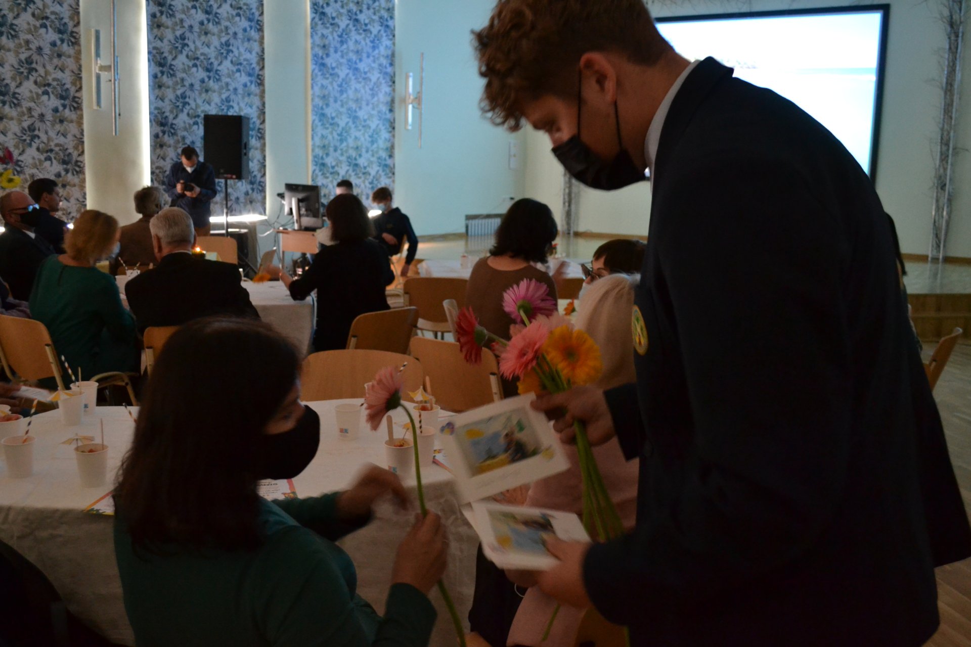 Per pertraukas pedagogai buvo kviečiami į mokytojų kambarį, kur jų laukė vaišės: saldūs pyragai su mero linkėjimais, administracijos paruošti gardumynai. Netrūko nuoširdžių šypsenų, jautrių pokalbių prie arbatos ar kavos puodelio.