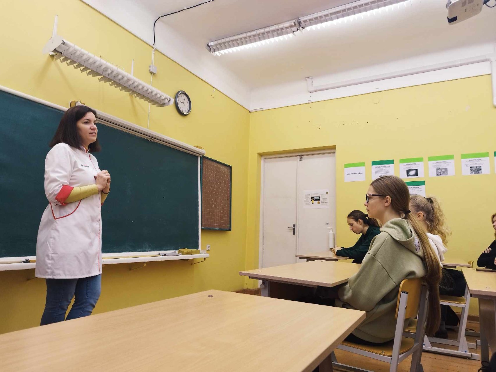 UAB „Medicus LT“ odontologė PAULĖ KAZAKEVIČIŪTĖ pristatė savo profesiją, kalbėjo apie studijų laiką, kainą, aptarė pliusus (galima derinti mokslą ir studijas, lengviau nei medicina) ir minusus (sunku įstoti į valstybės finansuojamą studijų vietą). Pabrėžė, kad darbas reikalauja fizinės ištvermės, nes dėl kūno padėties kenčia kaklas, nugara, pečiai. Paulė pabrėžė, kad gyvenime labai svarbu pasirinkti norimą darbą.