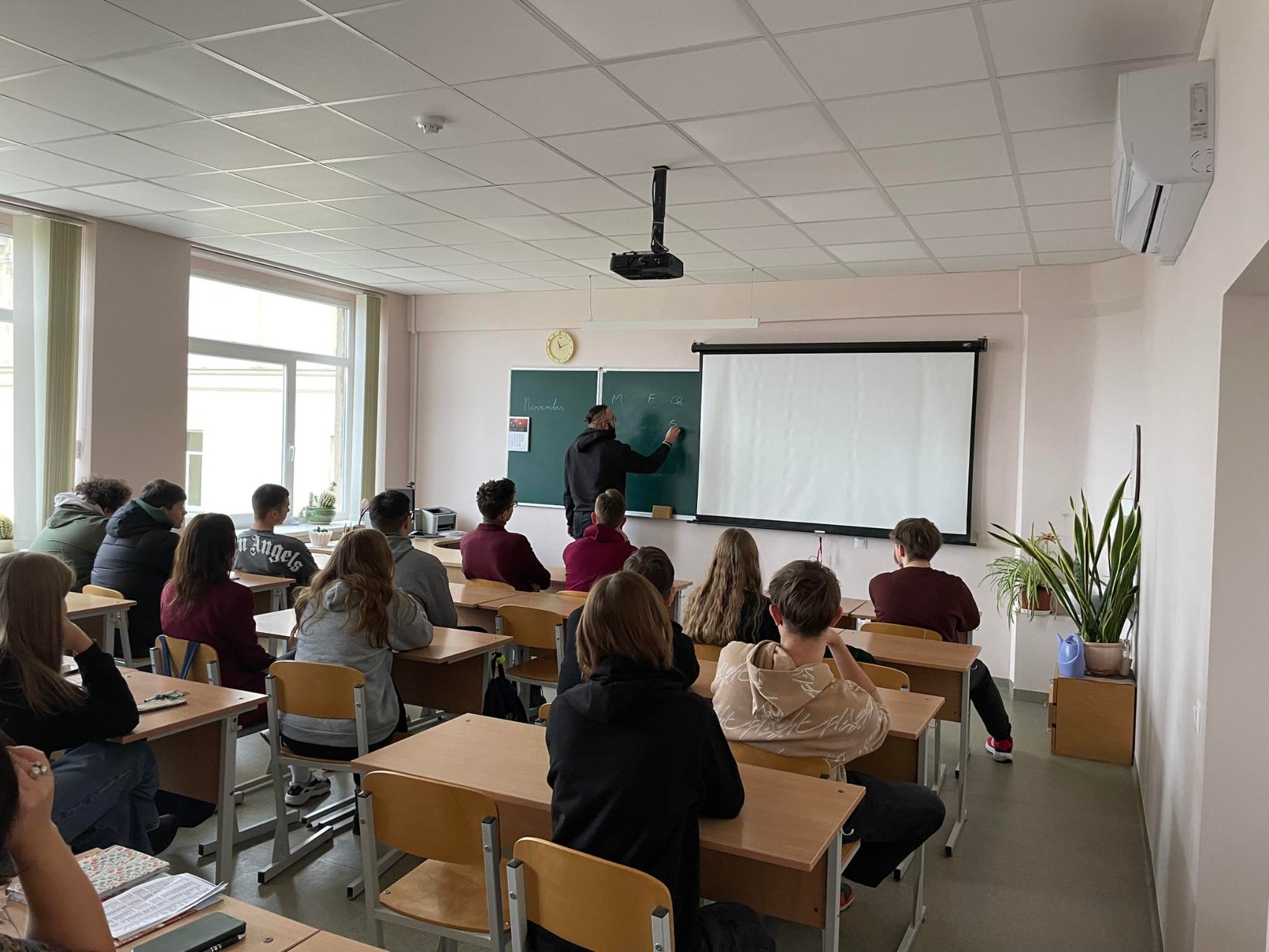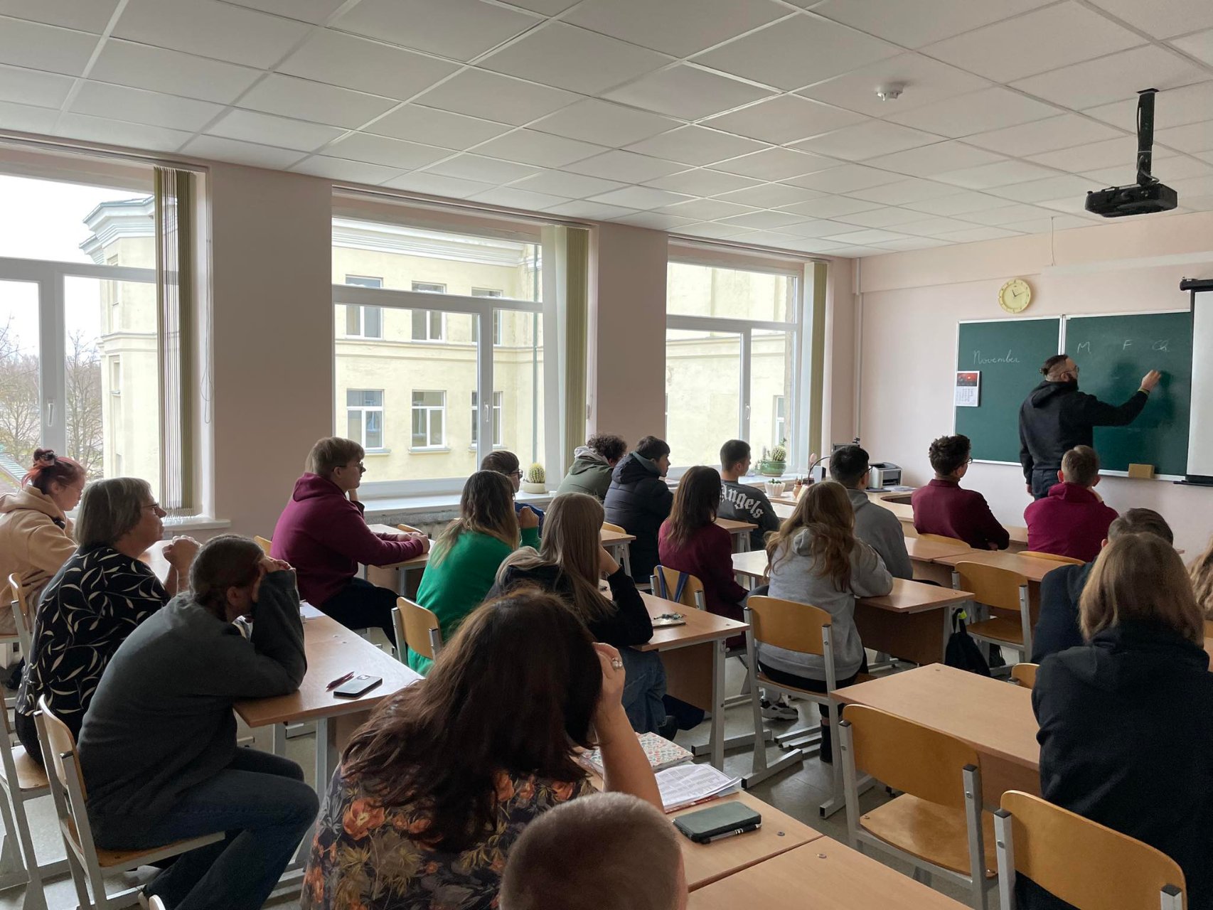 Lietuvos banko vyresnysis analitikas IGNAS GASPARAVIČIUS pristatė savo darbą banke, pasidalijo įžvalgomis apie studijas, akcentavo ypač sudėtingus matematikos mokslus universitete. Ignas gimnazistams pademonstravo keletą sprendimo būdų, viską išdėstė aiškiai ir konkrečiai, pasakojo apie tai, kokios jo veiklos banke, kas jam svarbu ir aktualu.