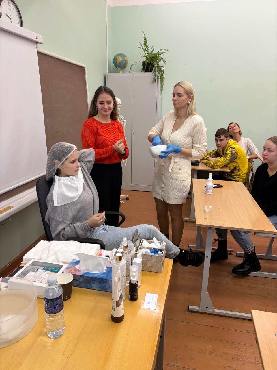 Daug naudingų patarimų, kaip prižiūrėti veido odą, mokiniai išgirdo iš grožio salono „Mademoiselle“, įsikūrusio Šiauliuose, kosmetologės MARTYNOS PAKALNYTĖS-PAUKŠTĖS. Ji papasakojo apie savo specialybę, kur ją galima įgyti, darbo pobūdį. Be to, buvo galima praktiškai išbandyti kosmetikos priemones, stebėti rodomas procedūros, klausytis apie odos priežiūrą.