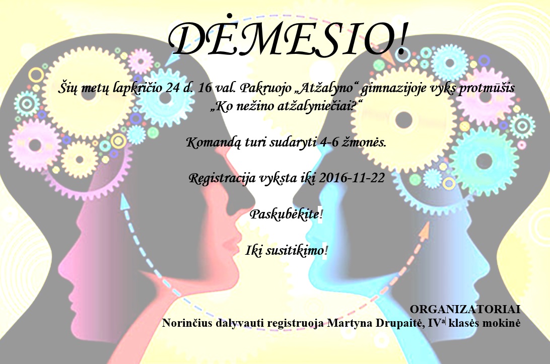 Pakruojo „Atžalyno“ gimnazija dalyvauja UAB DELFI organizuojamame konkurse „MOKYKLŲ KOVOS“. Žaisminga mūsų mokyklos mokinių nuotrauka laukia Jūsų palaikymo, todėl būtinai BALSUOJAME ir raginame kitus tai daryti. Paspausk ir balsuok