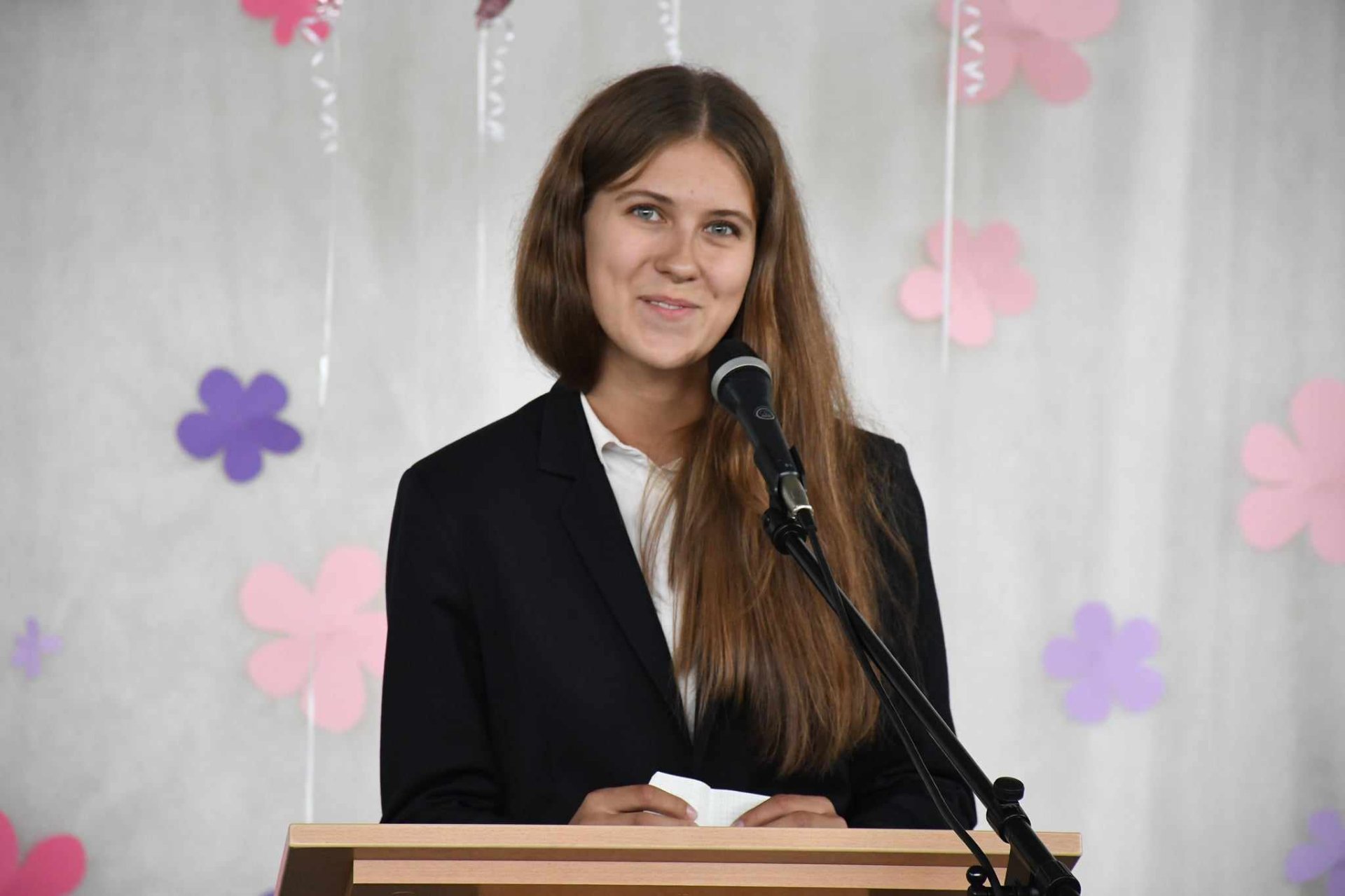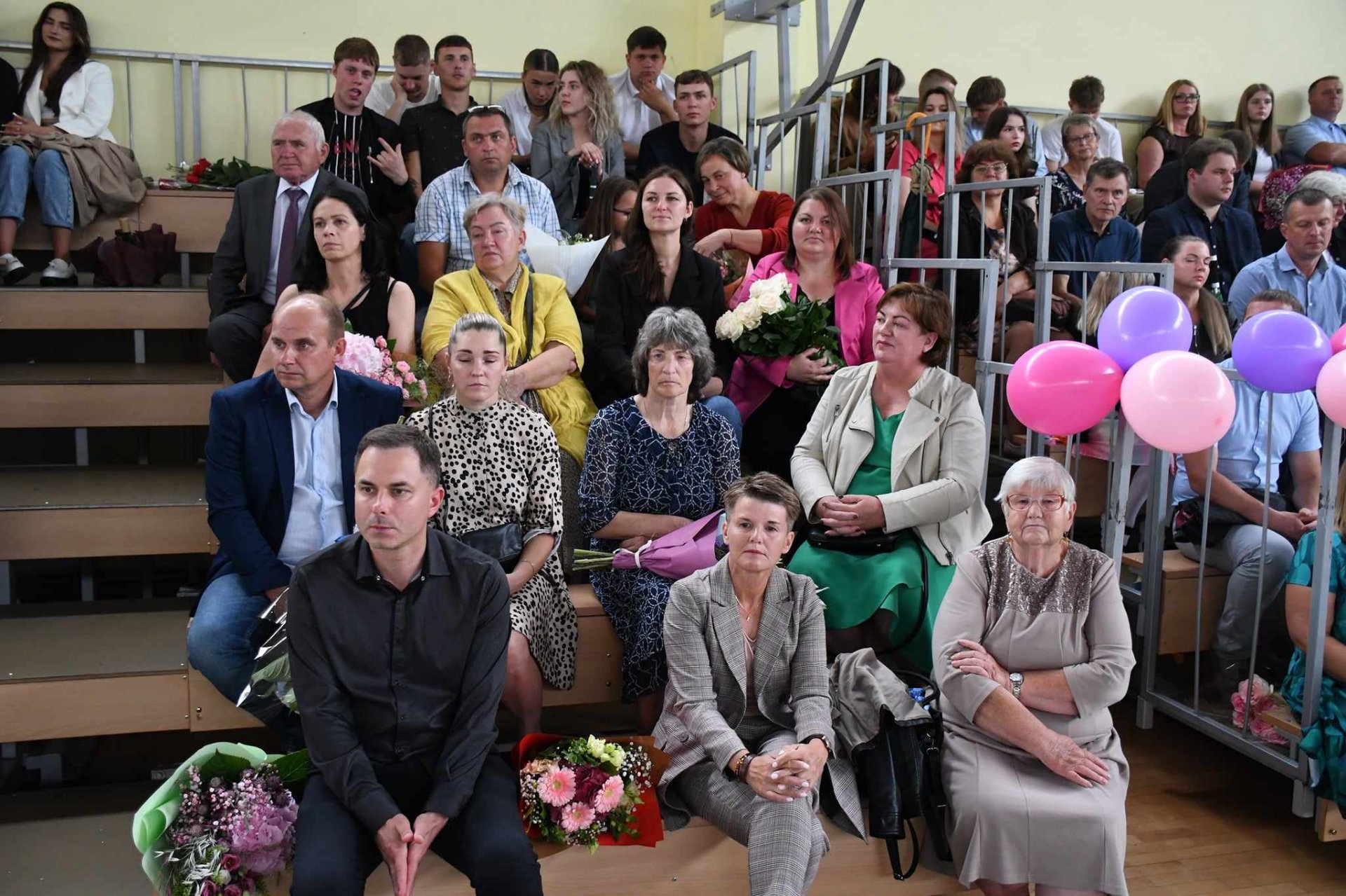 Po šv. Mišių gražus abiturientų būrys pasuko gimnazijos link, kur vyko iškilminga brandos atestatų įteikimo šventė. Sveikinimo žodį tarė gimnazijos direktorė Asta Valuntienė. Vadovė pasidžiaugė brandžiais abiturientais, pasiruošusiais savarankiško gyvenimo kelionei, dėkojo mokytojams, auklėtojoms, tėveliams. Direktorė pasveikino abiturientes Agnę Milaknytę (IV a kl.), Gerdą Bertulytę (IV b kl.) ir  Gabiją Grinaitę (IV b kl.), kurios už lietuvių kalbos ir literatūros VBE gavo 100-ukus. Renginyje dalyvavo Pakruojo rajono savivaldybės meras Saulius Margis, Pakruojo švietimo skyriaus vedėja Irena Mažulienė, Seimo narys Antanas Matulas, Pakruojo rajono savivaldybės tarybos narė, Seimo nario Antano Matulo padėjėja Erika Kižienė, Pakruojo seniūnas Svajūnas Miknevičius, gimnazijos mokinių prezidentė Greta Gudaitė. Abiturientams linkėta nebijoti iššūkių, tikėti savimi, baigus studijas grįžti į gimtąjį kraštą ir gerais darbais jį garsinti. Seimo narys Antanas Matulas kiekvienam abiturientui dovanojo po Lietuvos Respublikos Konstitucijos knygelę.