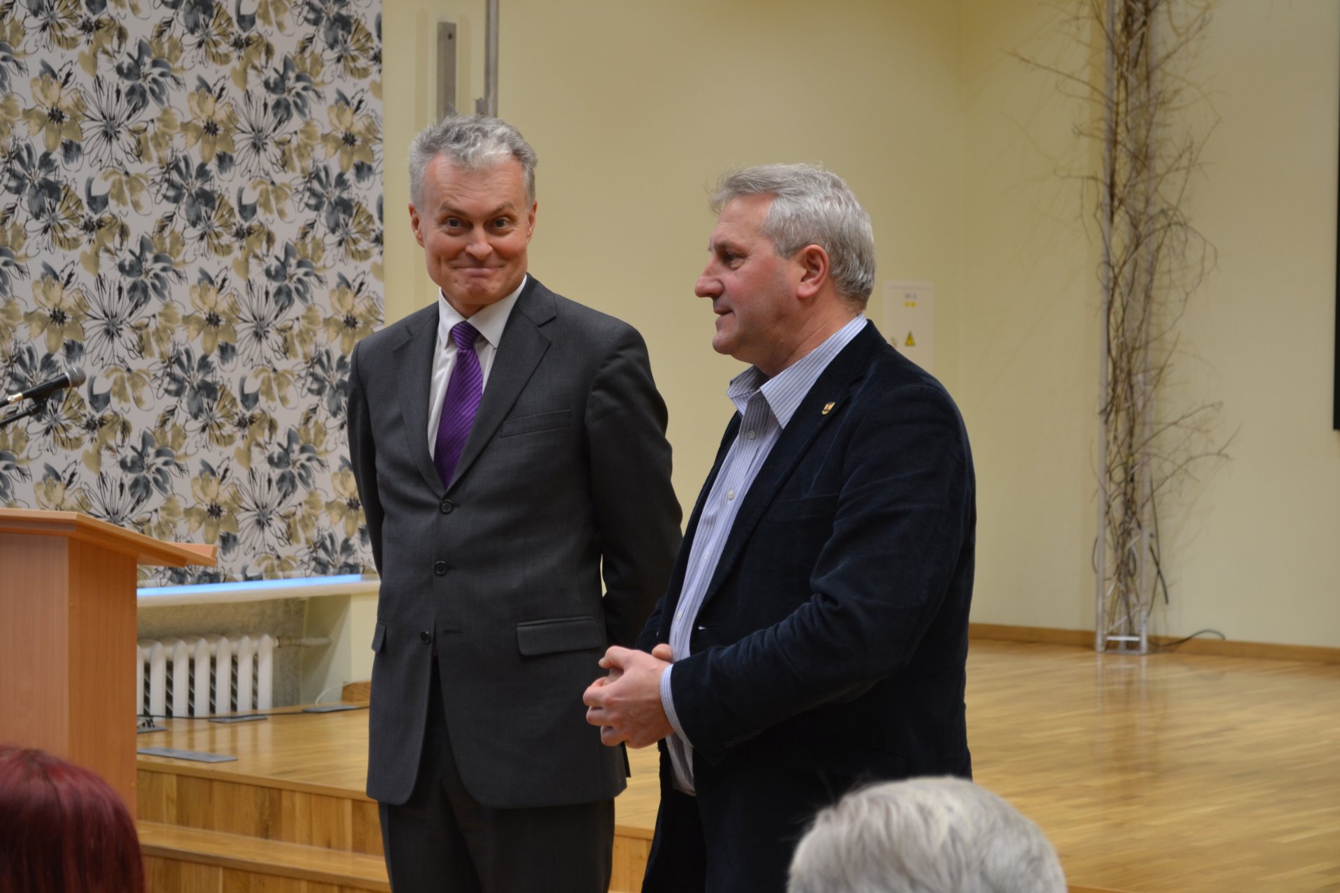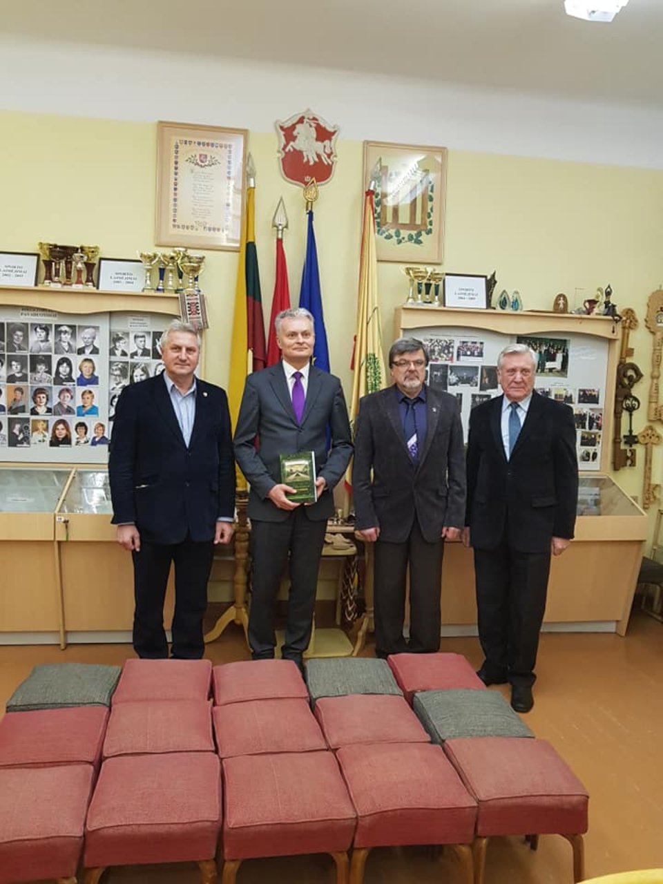 Gruodžio 12 d. į gimnaziją užsuko kandidatas į Lietuvos Respublikos Prezidentus Gitanas Nausėda. Posėdžių ir konferencijų salėje svečias susitiko su gimnazijos bendruomene. Ekonomistas papasakojo apie savo jaunystę, įvairias veiklas, sužinojome, kodėl jis neišlaikė matematikos egzamino ir kaip bandė mokytis vokiečių kalbos. Žymus asmuo drąsino nenusiminti, jei gyvenime kažkas nepasiseka, nes tai tik geras spyris veržtis į priekį. Anot finansų analitiko, Lietuvos istorijos faktai rodo, kad iš mažų miestelių kilę žmonės gyvenime nuveikia daug didelių darbų. Po susitikimo Gitanas Nausėda užsuko į gimnazijos muziejų, kur pasirašė svečių knygoje.