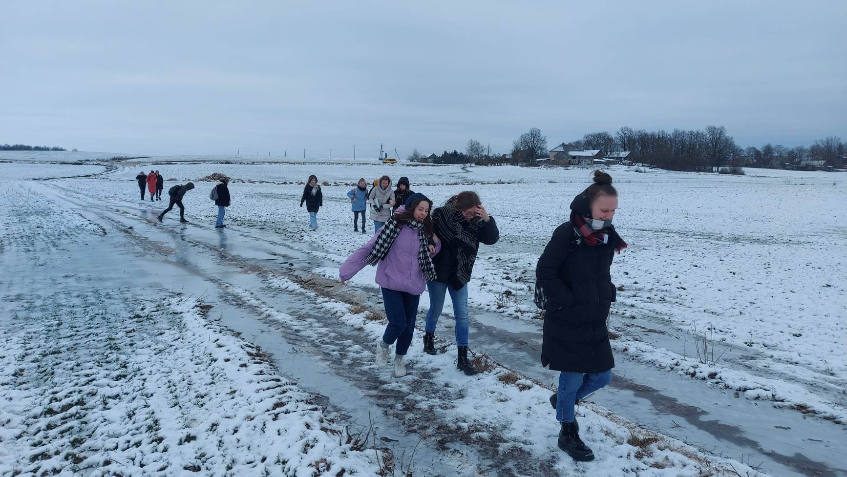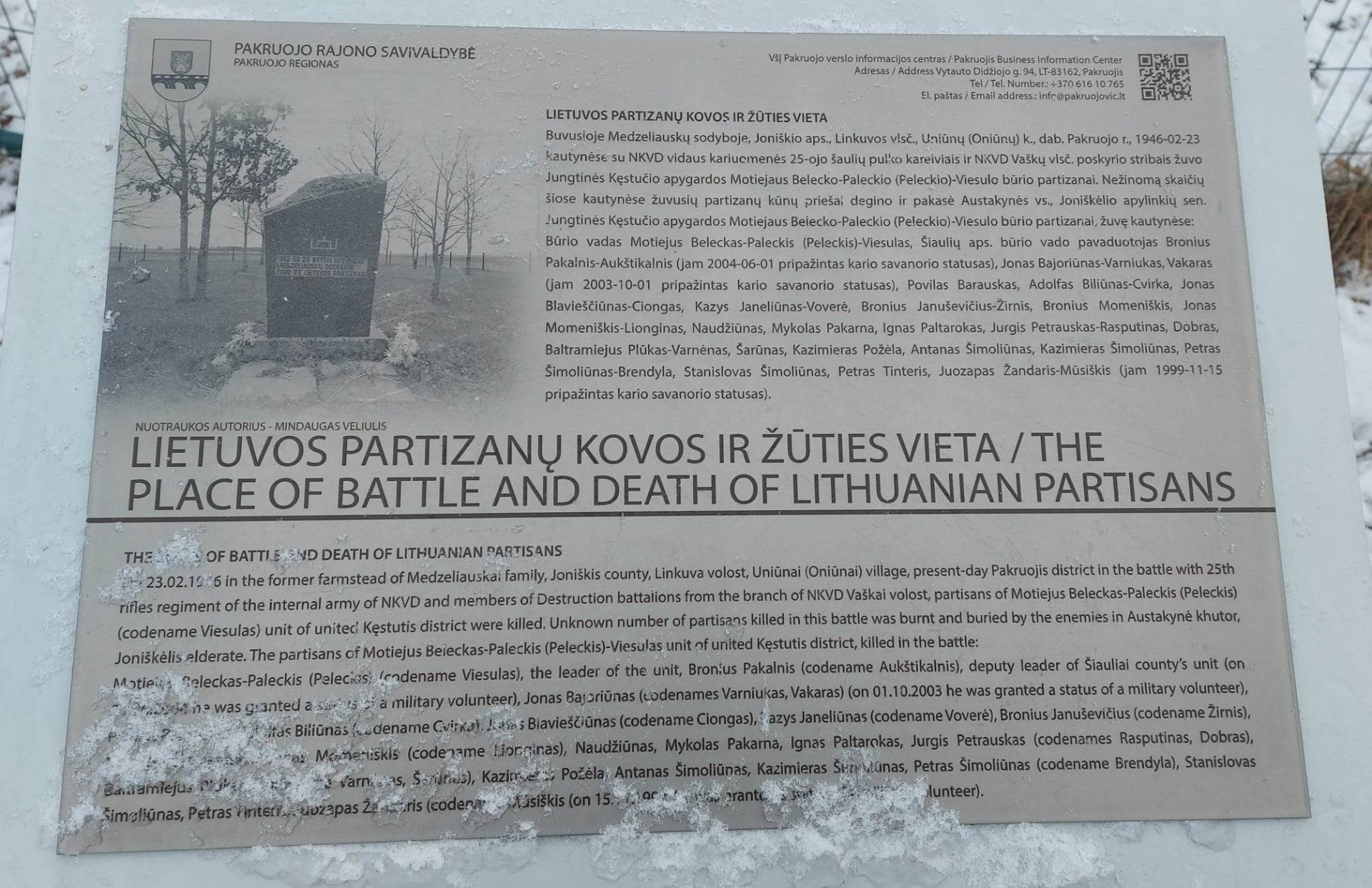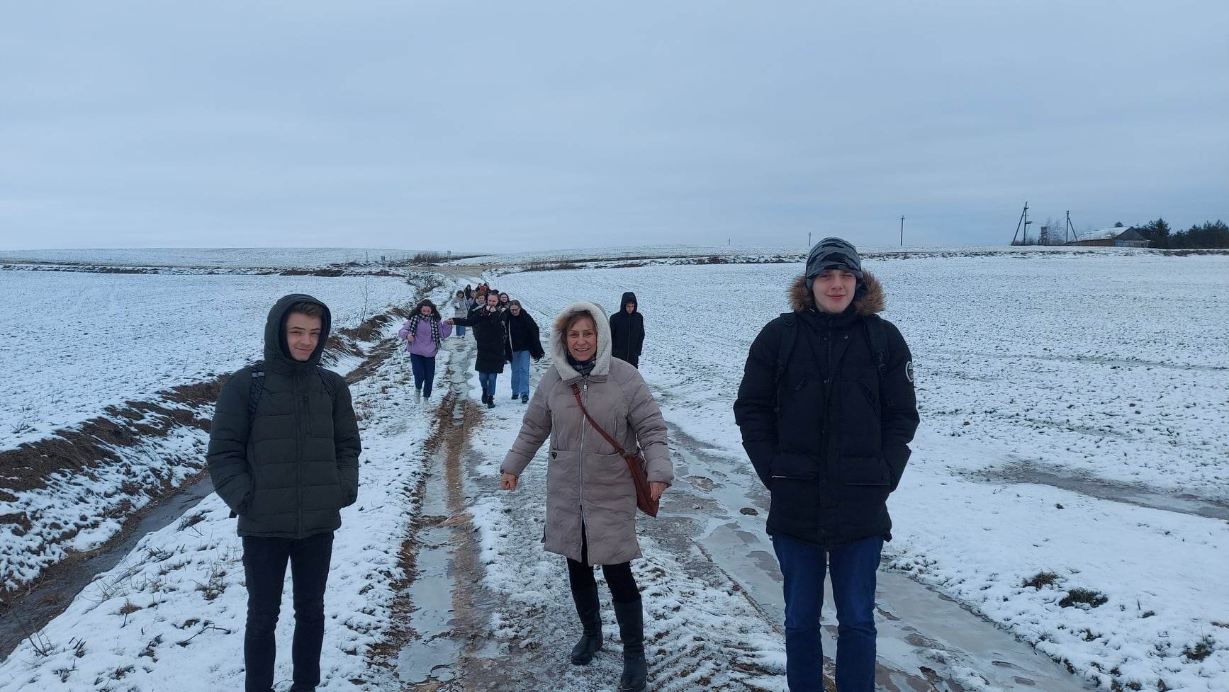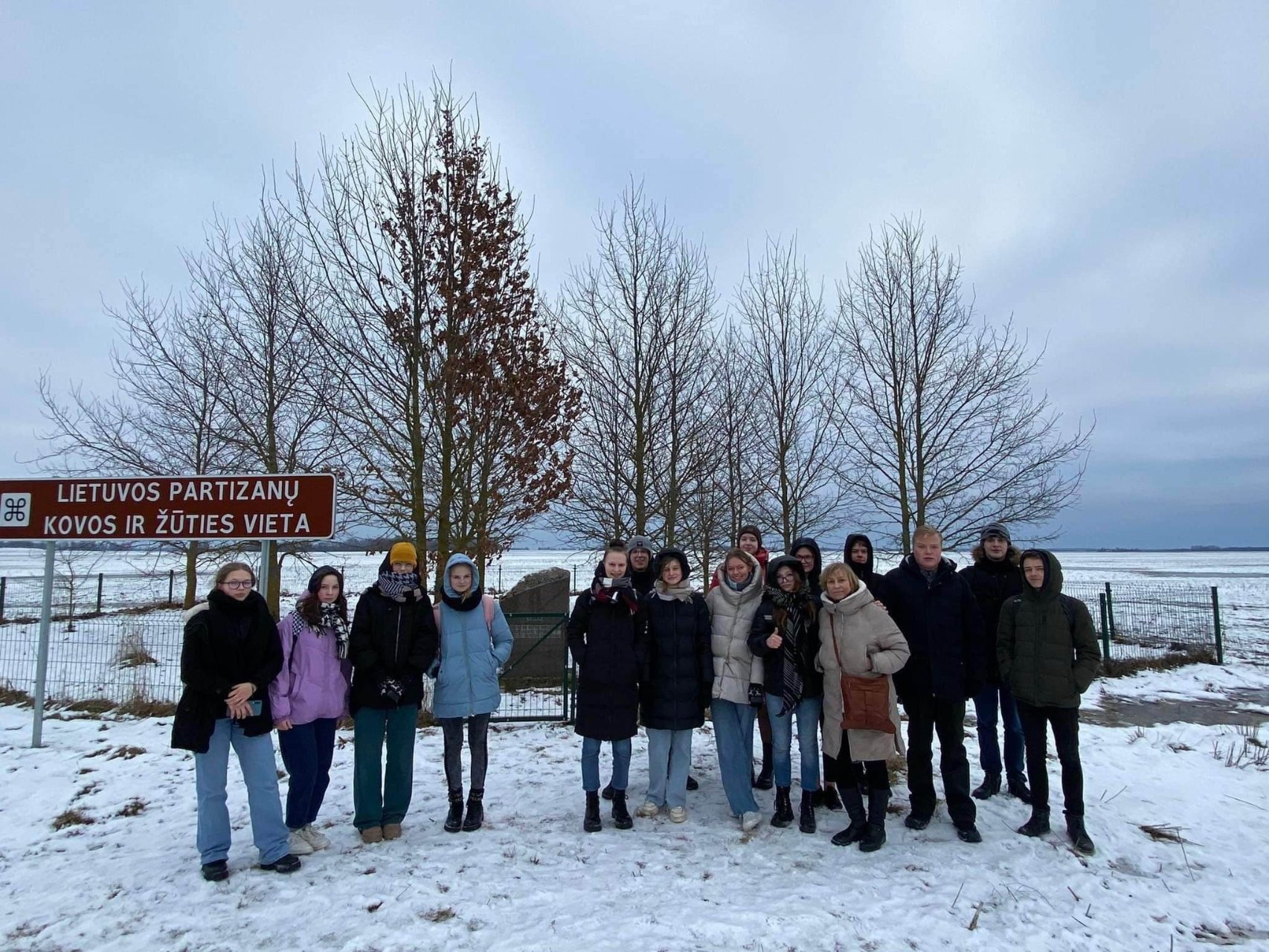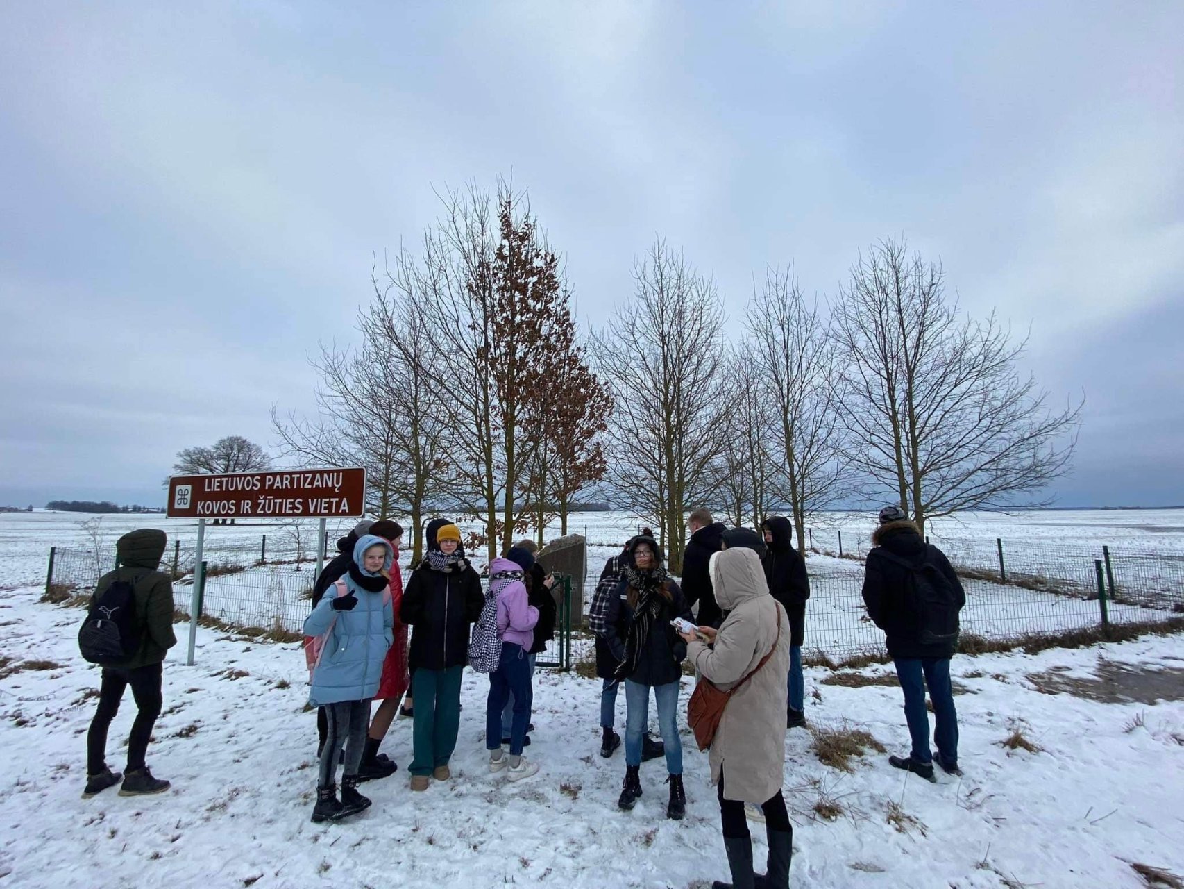 Sausio 24 dieną grupelė I ir III gimnazijos klasių mokinių su istorijos mokytoja Gražina Kairiūkštiene vykdydama vieną iš projekto veiklų vyko į Lietuvos partizanų ir NKVD kariuomenės 1946 m. vasario 23 d. mūšio vietą, esančią Uniūnuose, Guostagalio seniūnijoje.