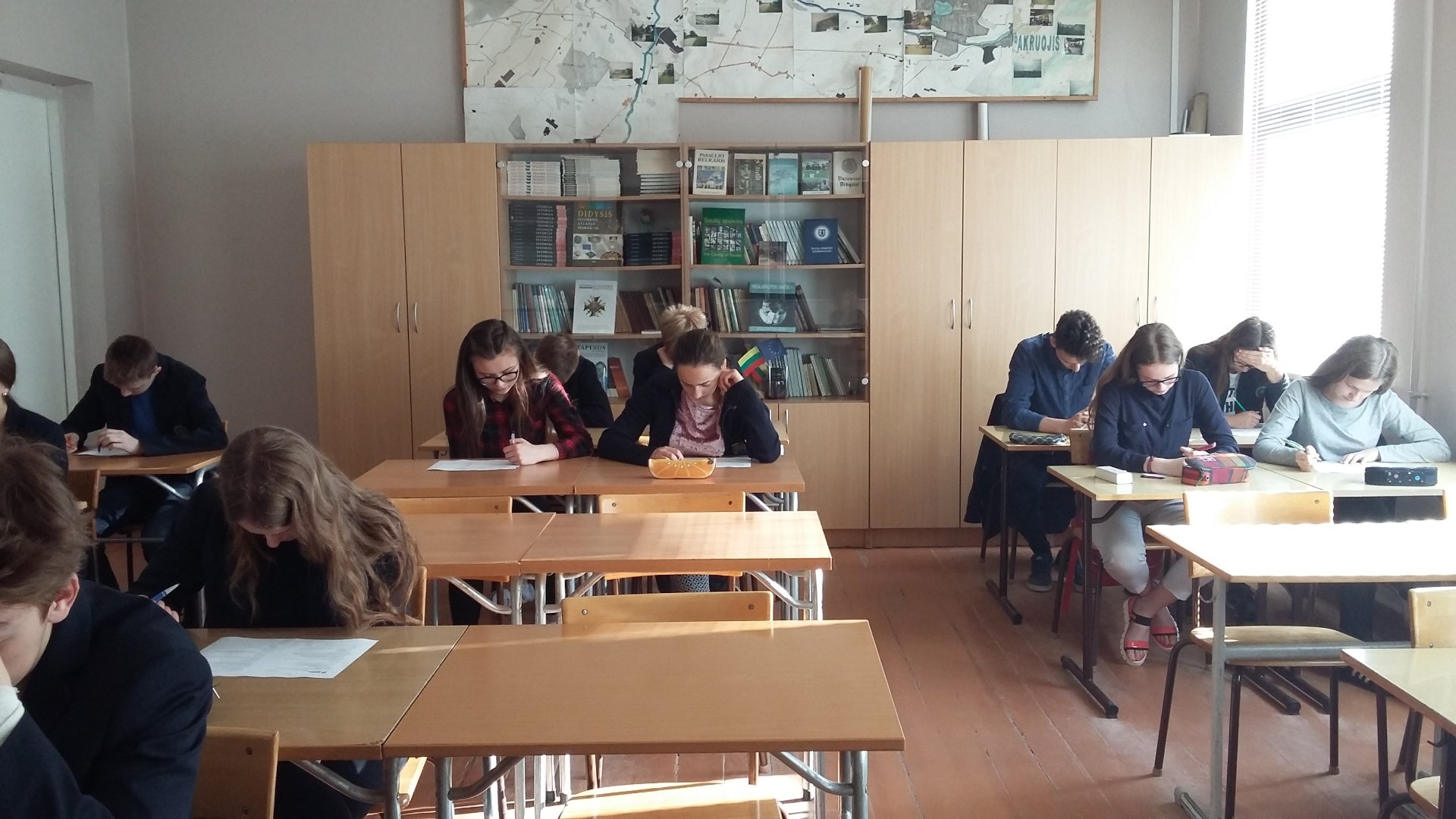 Nuoširdžiai dėkoju visiems dalyvavusiems mokiniams, kurie labai stengėsi, o Greta Zupkutė, IIb klasės gimnazistė, surinkusi 18 taškų, pateko į antrą etapą. Vienu tašku nuo nugalėtojos atsiliko abiturientas Dovydas Levinskas (IVb kl.), Faustas Marcinkevičius (IIIa kl.), Gabija Petrauskaitė (IIc kl.) ir Arijandas Stasaitis (Ia kl.).
