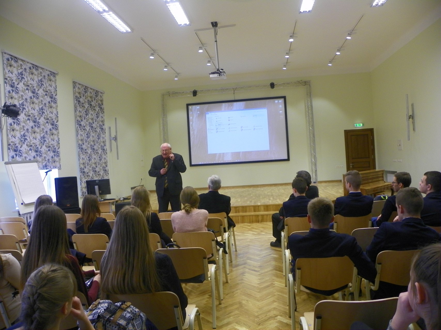 Dalis ketvirtų ir trečių gimnazijos klasių mokinių turėjo galimybę pabendrauti su atvykusiais Vilniaus Gedimino technikos universiteto studentais, kurie išsamiai pristatė visus universiteto fakultetus, įvairių sričių inžinerijos, informacinių technologijų, vadybos ir menų studijų programas. Gimnazistai domėjosi stojančiųjų konkursiniais balais, studijų tvarka, darbo perspektyvomis. Išvykdami universiteto atstovai mokiniams paliko įvairios informacijos apie studijas VGTU.
