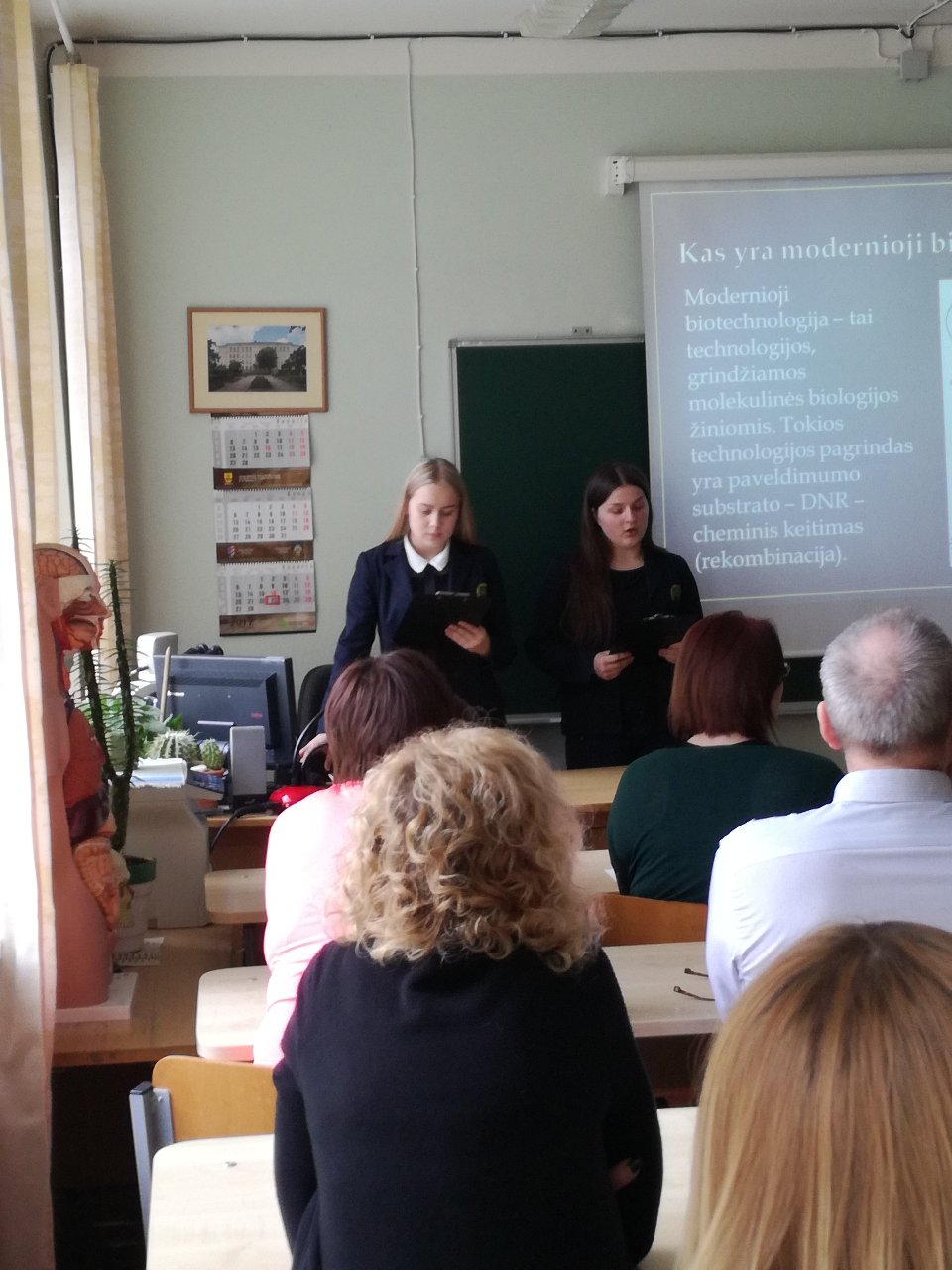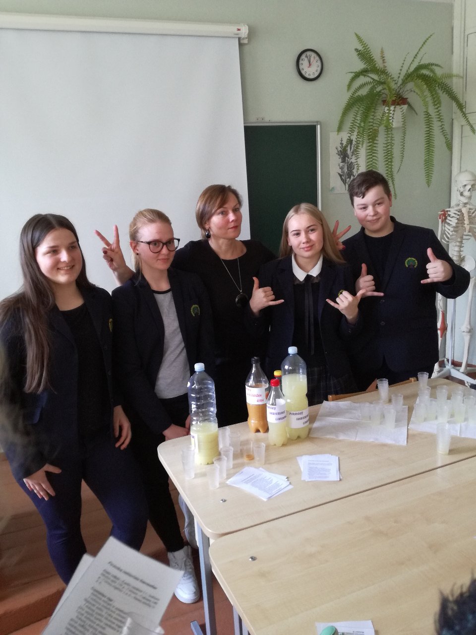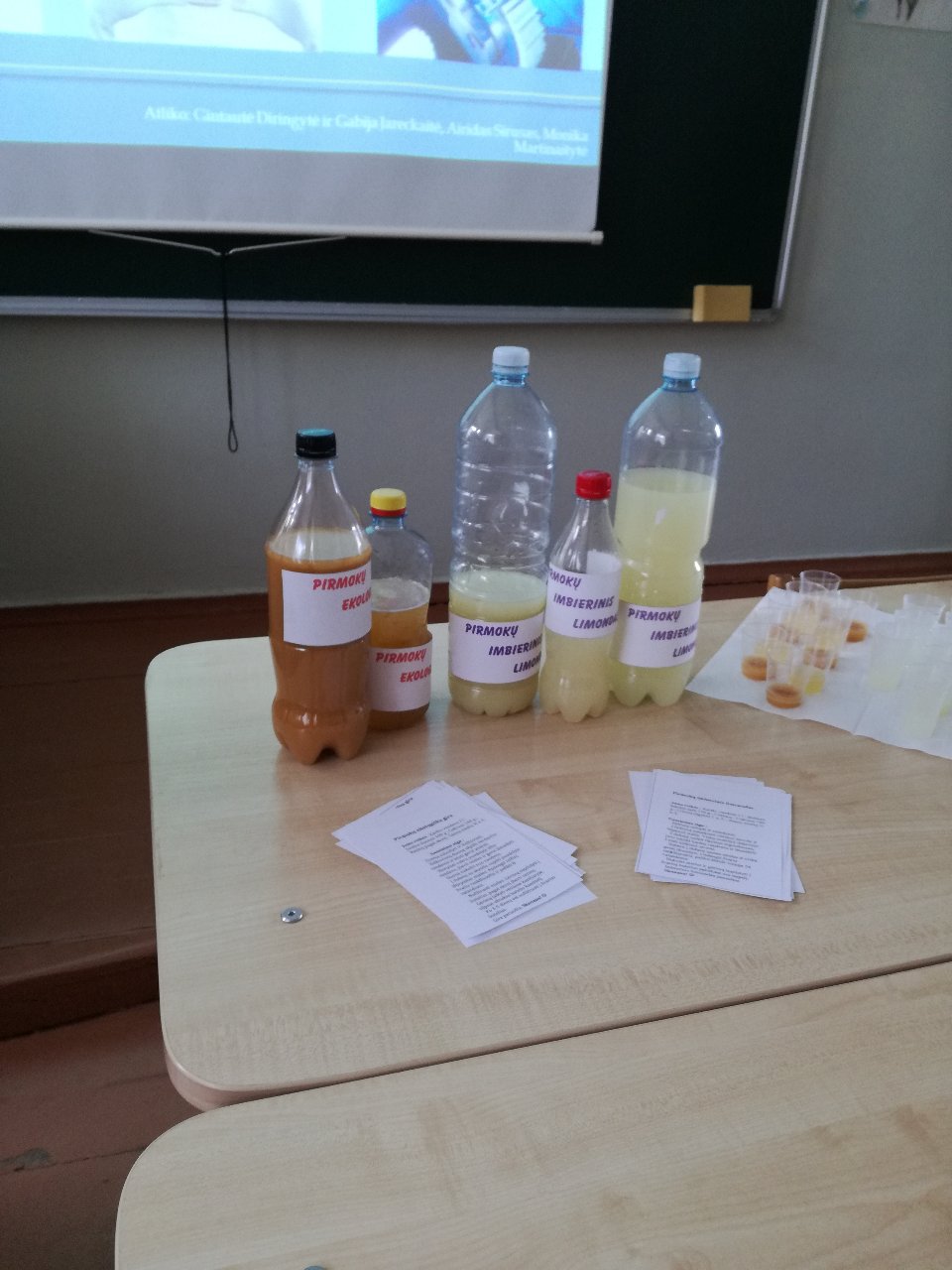 Vasario 23 dieną pirmokai gimnazistai bendruomenę kvietė į trumpą biologijos pamokėlę, kurioje parodė, kaip galima namuose pasigaminti ekologiškos giros arba imbierinio limonado. Be to, jaunieji biologai pristatė visą gamybos procesą, paskui galėjome paskanauti. Smagu, kad degustacijoje dalyvavo ne tik gimnazistai, bet ir mokytojai.