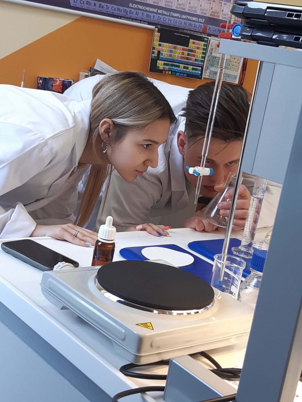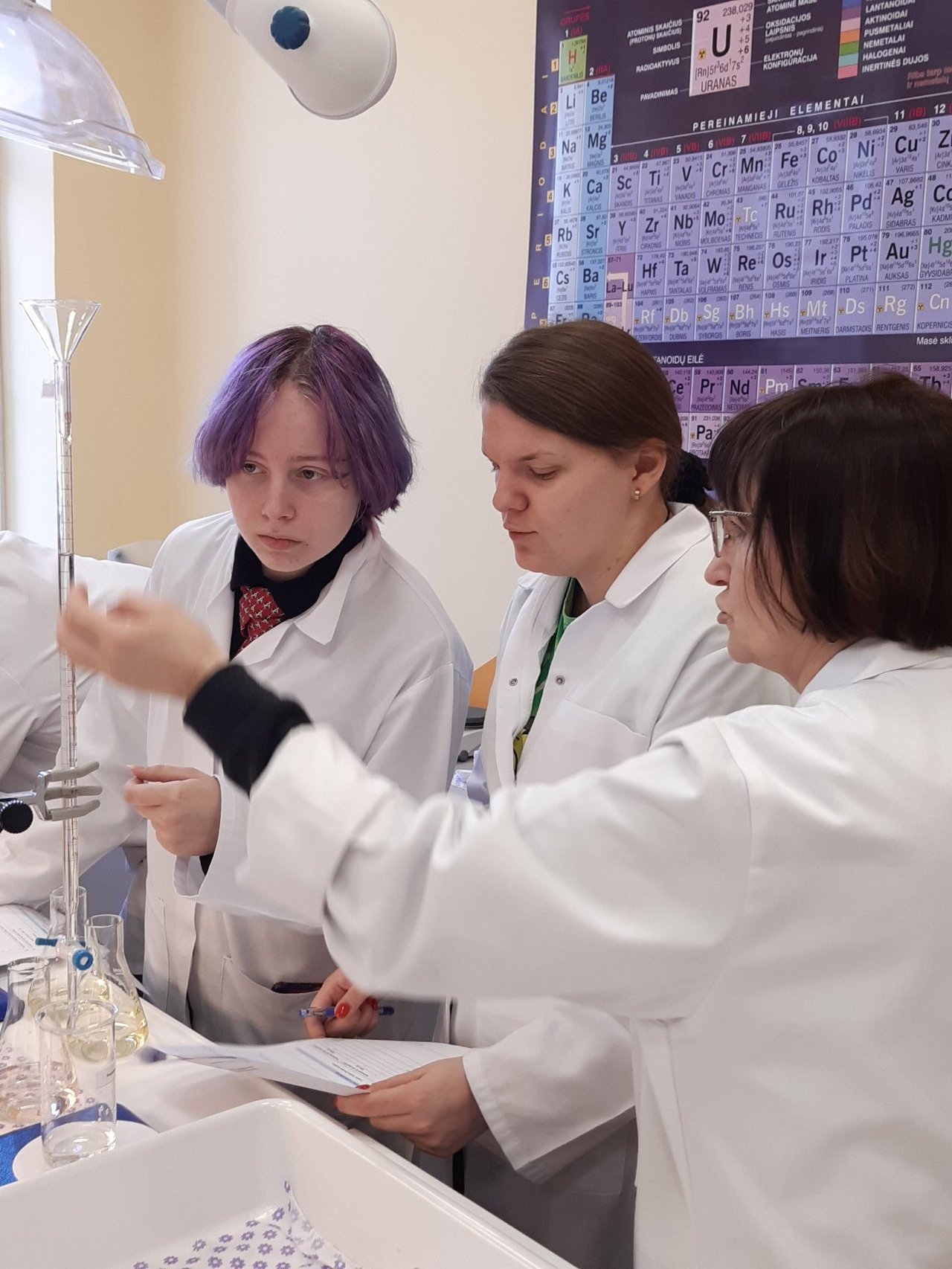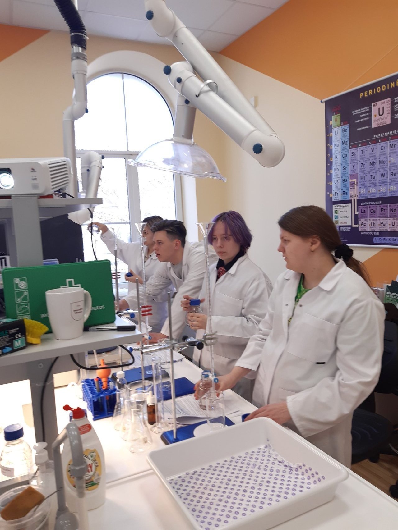Vanduo – viena svarbiausių medžiagų judėjimo terpių, todėl yra neatsiejama visų gyvųjų organizmų gyvenimo dalis. Gamtinį vandenį galima klasifikuoti į požeminį (gėlą) ir paviršinį, gamtoje nuolat vyksta jo apytaka. Žmonėms svarbesnis yra gėlas vanduo, nes jame yra daug ištirpusių organizmui naudingų medžiagų. Atmosferos krituliai sunkiasi į žemę per dirvožemį ir įvairias uolienas. Kuo jos blogiau praleidžia vandenį, tuo šis ilgiau kontaktuoja su uolienomis ir tada daugiau mineralinių medžiagų jame ištirpsta. Koks vanduo vadinamas kietu? Į kokias grupes skirstomas vandens kietumas? Kokios reakcijos vyksta karbonatiniame vandenyje? Atsakymų į šiuos klausimus jungtinė trečiokų ir ketvirtokų chemikų grupė ieškojo trijų valandų tiriamajame darbe VU Šiaulių Steam centro laboratorijoje. Rezultatas nudžiugino, nes pagilintos žinios apie neutralizacijos reakcijas, patobulinti eksperimentiniai gebėjimai, ugdyti įgūdžiai taikyti matematikos žinias, kurių prireikė skaičiuojant aplinkos tyrimų rezultatus.