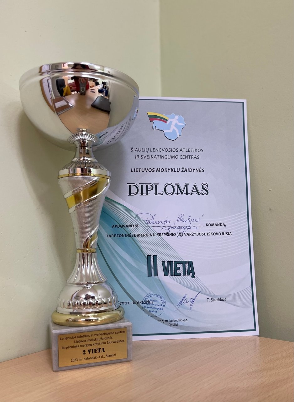 Balandžio 4 dieną Šiaulių Juliaus Janonio gimnazijoje įvyko Lietuvos mokyklų žaidynių mergaičių (gim. 2007 m. ir jaunesnių) krepšinio 3x3 tarpzoninės varžybos. Mūsų gimnazisčių komanda, kurią sudarė Urtė Sirusaitė (I b kl.), Andrėja Buteikytė (I a kl.), Vaiva Gutauskaitė (I c kl.), Neirida Šlevaitė (I b kl.) užėmė II vietą ir pateko į tolimesnį etapą.