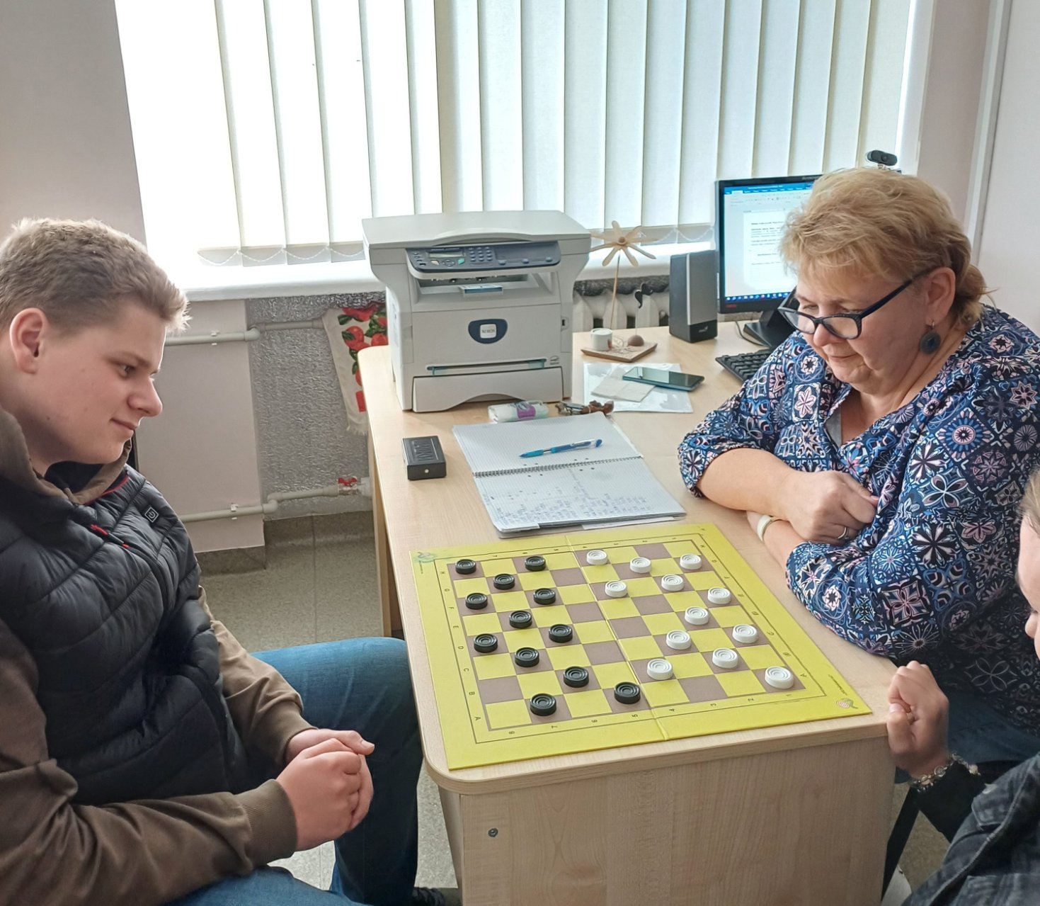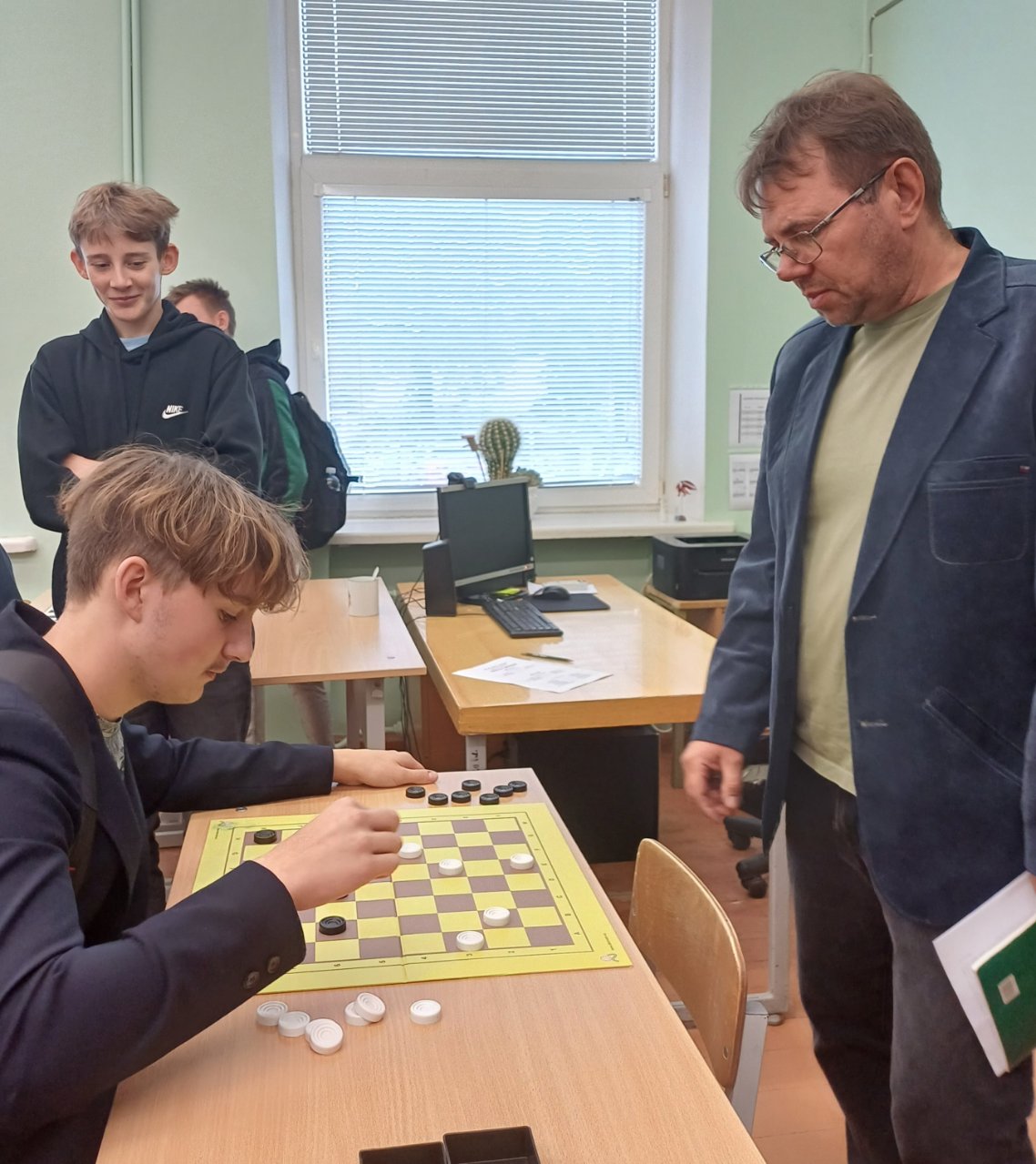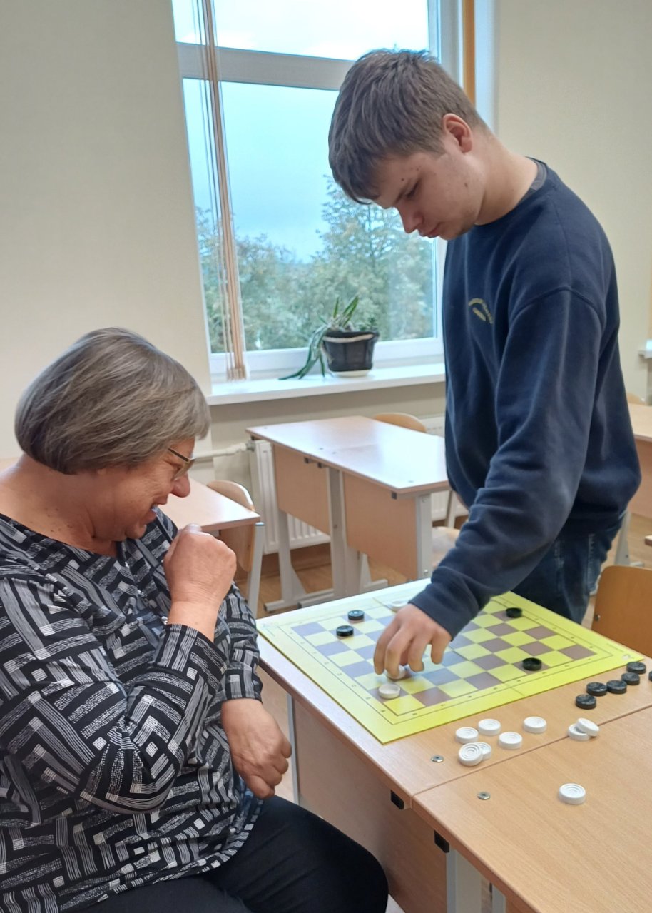 2024 m spalio 1-3 dienomis Pakruojo „Atžalyno“ gimnazijoje vyko kasmetinis mokytojų ir mokinių šaškių turnyras, kuriame dalyvavo 16 mokytojų ir 13 mokinių. Buvo sužaistos 24 šaškių partijos, iš kurių 10 baigėsi lygiosiomis. Gimnazistų nuomone, įdomu išmėginti jėgas su mokytojais, kai yra lygiavertė pozicija, be to, gali bent truputį pasijusti ekspertas. Įspūdžių būta įvairių: vieni norėjo pažiūrėti, kiek mokytojai prisimena šaškių taisykles (pavyzdžiui, Ąžuolas), kiti prisipažino, kad bijojo, bet buvo smalsu, kaip seksis (taip atrodė Dominykui, Mantui, Vakariui), tretiems labai patiko ir jie norėtų dar kartą sužaisti (be abejo, Tadas, Matas, Rokas). Andriui buvo įdomu, nes privertė pamąstyti dėl kiekvieno ėjimo, Vytui – smagu, nes mokytojai juokavo, Pauliui patiko, nes tai lavina protą. Džiaugiuosi Rusne ir Urte, kurios jau antrus metus varžosi prie languotos lentos. Sulaukėme ir keliolikos žiūrovų, kurie palaikė klasės draugus patarimais ar padrąsinimais. Jie pabijojo sėstis prie stalo, bet emocingai reagavo į žaidimo eigą. Visi gimnazistai teigė, kad tai buvo smagi patirtis ir kad gimnazijoje galėtų būti daugiau tokių varžybų.