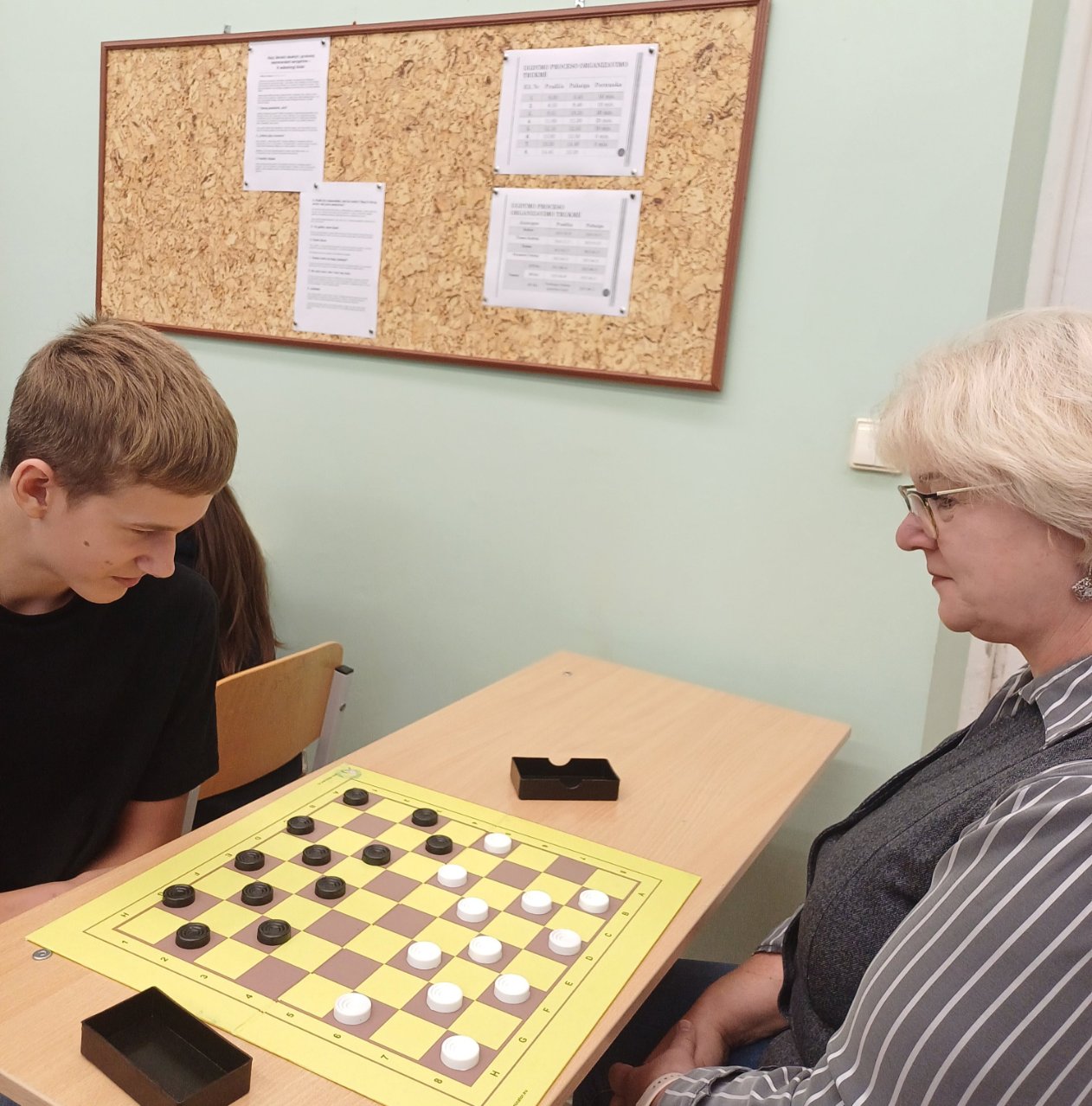 Dauguma žaidusių mokytojų prisipažino, kad paskutinį kartą šaškėmis žaidė prieš vienerius ar keliolika metų, todėl tos kelios minutės sukėlė daug adrenalino. Pernai dalyvavusieji laukė šiemetinio turnyro ir azartiškai trynė rankas, tikėdamiesi pergalės. Manau, kad šis turnyras, rengiamas prieš Mokytojų dieną, suteikia galimybę mums visiems pabūti mokytojais ir languotos lentos kolegomis.