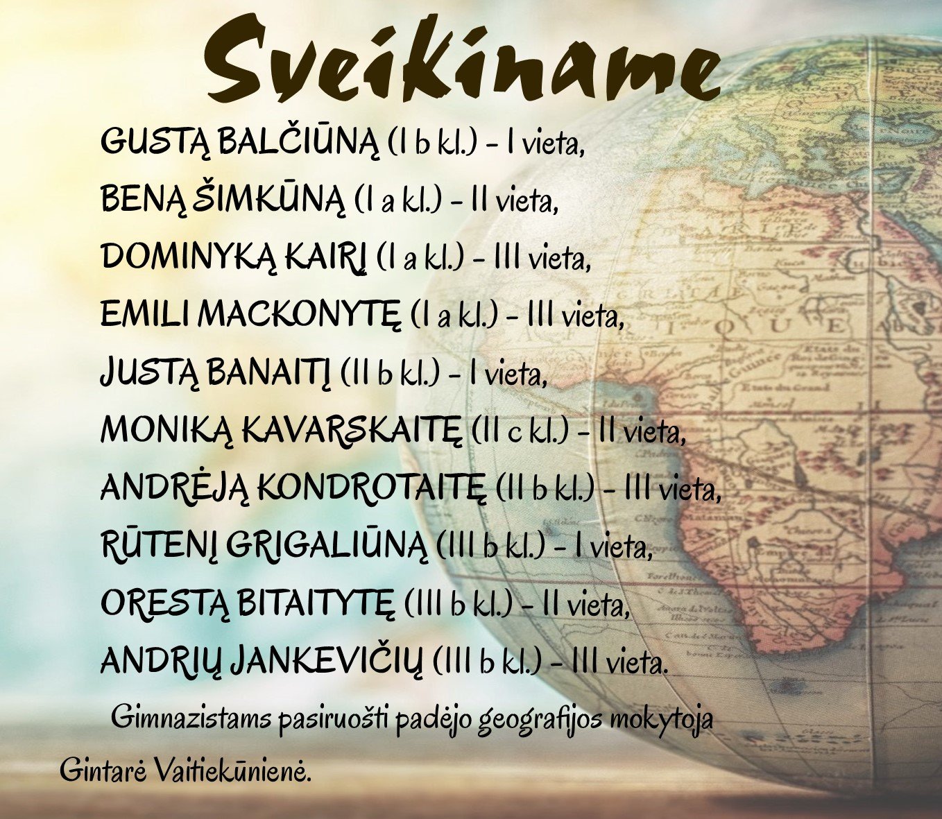 Vasario 29 dieną įvyko geografijos konkursas – olimpiada „Mano gaublys“