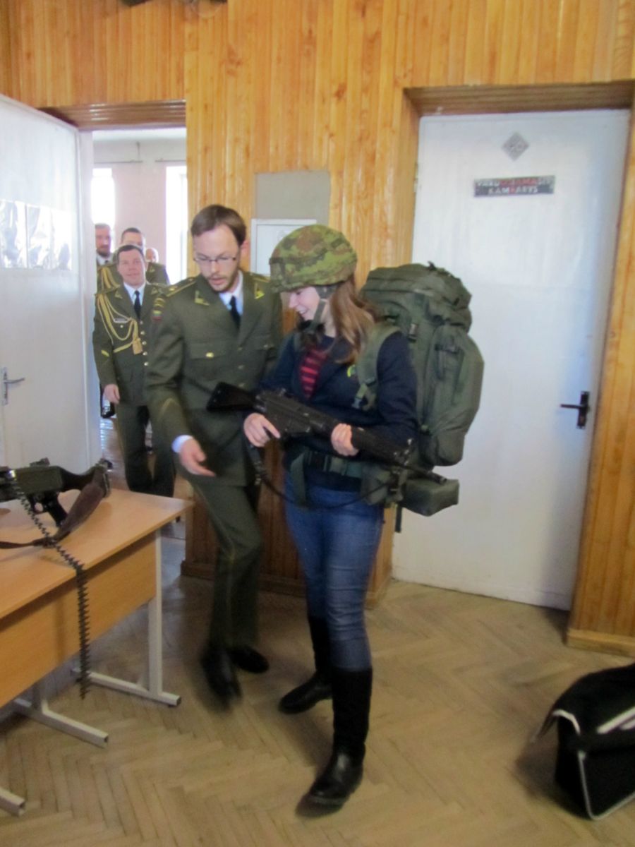 Krašto apsaugos savanorių pajėgų bigbendas koncertuoja Lietuvoje ir užsienyje - puoselėja kultūrines vertybes, kelia Lietuvos kariuomenės prestižą. Įsimintina kolektyvui išvyka į Afganistaną - ten koncertavo misiją atliekantiems lietuvių kariams. Surengti koncertą gimnazijoje nuspręsta neatsitiktinai. Bigbendo kolektyve garso operatoriumi dirba buvęs mūsų gimnazijos mokinys Dainius Kazilionis, mokytojos Gražinos Kairiūkštienės auklėtinis. Maloniai visus prieš koncertą nuteikė šilta buvusios auklėtojos ir auklėtinio susitikimo akimirka. Koncerte skambėjo įvairūs kūriniai, po kurių aidėjo garsūs mokinių plojimai. Nuoširdumu sužavėjo solistas Jurgis Brūzga, kurio paskatinta visa salė atsistojusi atliko Marijono Mikutavičiaus dainą „Aš tikrai myliu Lietuvą“.