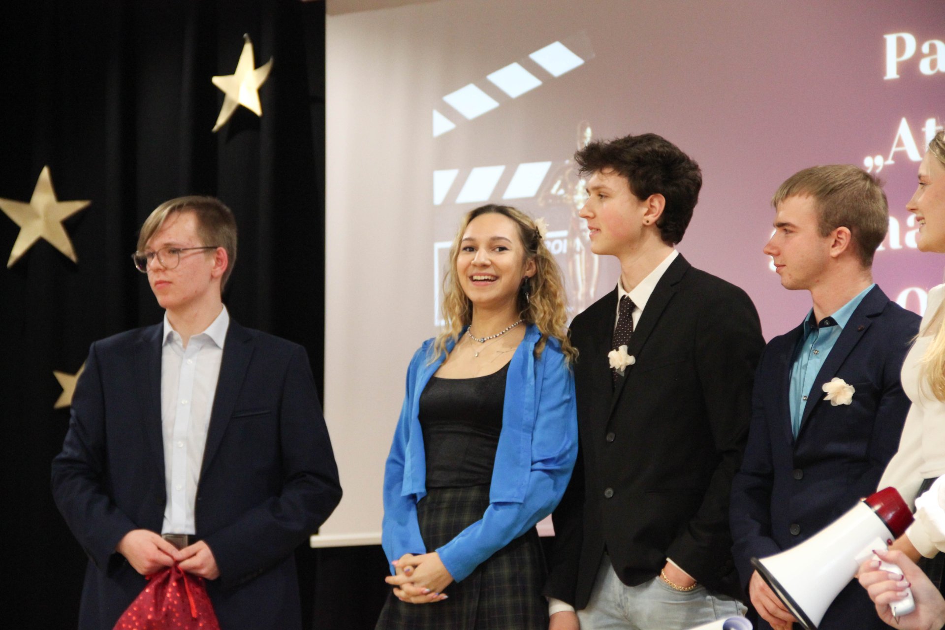 Abiturientams ir jų auklėtojoms buvo įteikta dešimt „Oskarų“ už įvairias nominacijas, pavyzdžiui, „Metų klasės siela“, „Geriausiai savo mokinius pažįstanti auklėtoja“, „Metų smegenys“, „Metų n raidžių puokštė“. Renginyje netrūko ir užduočių. Auklėtojos turėjo atpažinti savo mokinius matydamos tik dalį mokinio nuotraukos. Abiturientai tapo stilistais bei dizaineriais ir iš duotų medžiagų kūrė aprangos stilių, taip pat turėjo suvaidinti įvairių filmų trumpas ištraukas, atpažinti Holivudo aktorius vaikystėje ir atspėti dirbtinio intelekto sukurtas mokytojų nuotraukas. Muzikinius kūrinius dovanojo instrumentinis ansamblis „Ukulėliai“ (muzikos mokytoja Vaiva Klupšienė), abiturientė Inesa Skridulytė ir pirmokė gimnazistė Martyna Jurevičiūtė. Už linkėjimus, padrąsinimą abiturientams žengti likusiu šimto dienų keliu šioje mokykloje dėkojame direktorei, auklėtojoms, ir mokinių prezidentei Gretai Gudaitei.