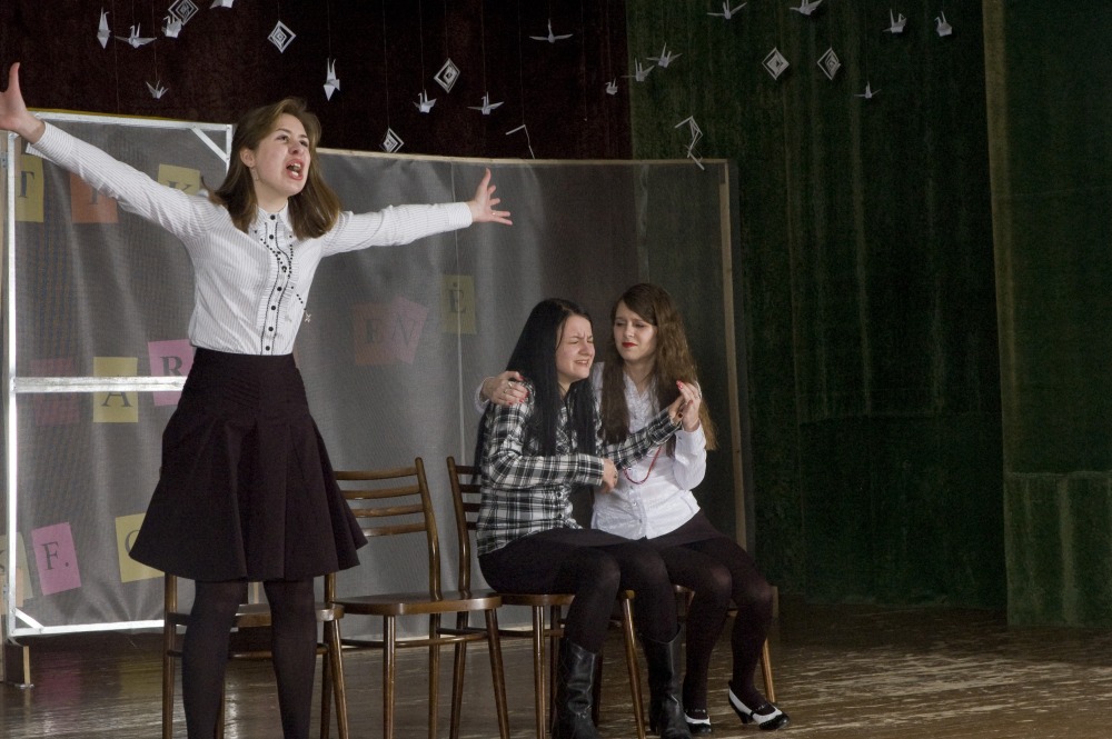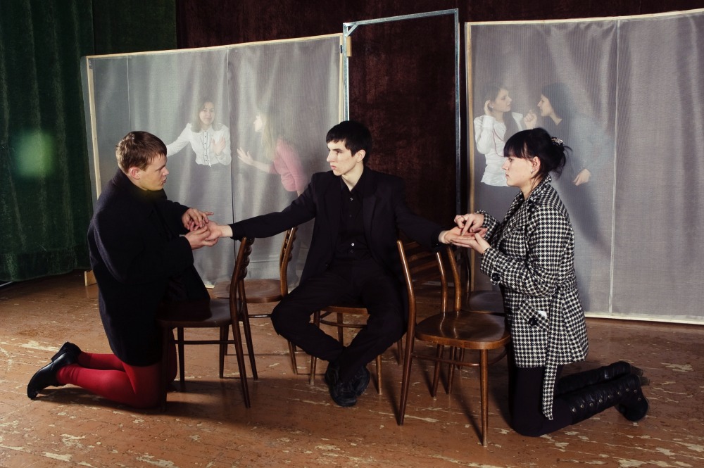 Spektaklio draugai: Mindaugas, Jurgita, Gvidas.