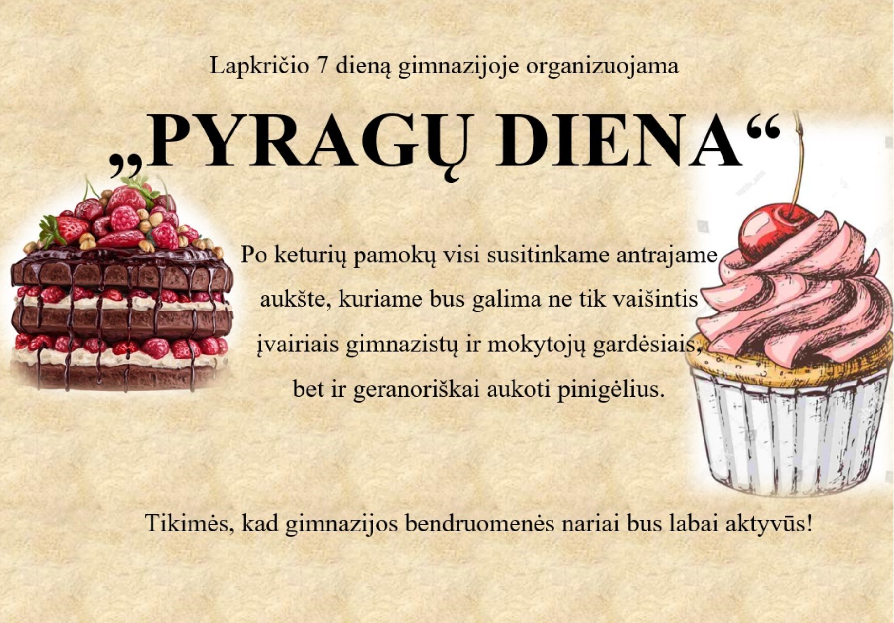 Šių metų lapkričio 7 dieną gimnazijoje organizuojama I-IV klasių mokinių Tėvelių diena. Bus galima individualiai pabendrauti su dalykų mokytojais ir sužinoti apie vaiko mokymąsi, pasiekimus bei aptarti kitus rūpimus klausimus.