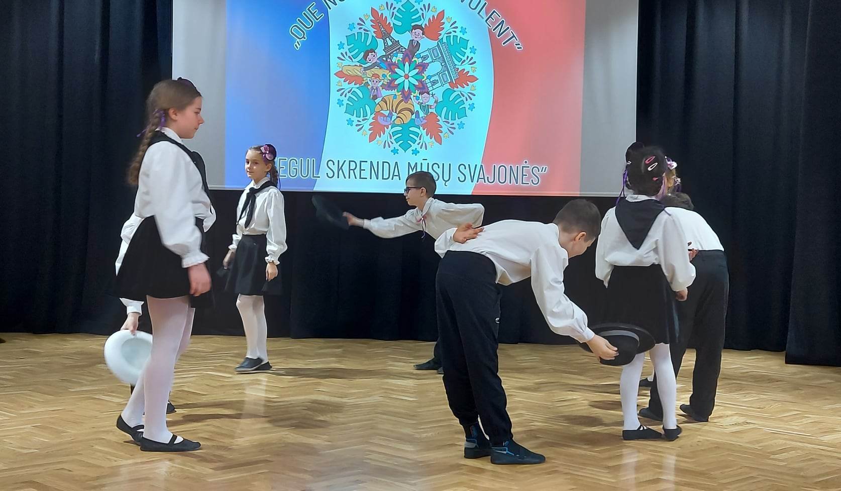 Nors pavasario dangus nebuvo dosnus saulės ir šviesos, Pakruojo „Atžalyno“ gimnazijoje sklandė pakili prancūzų kalbos ir frankofoniškos kultūros dvasia. Prancūzų kalbos mylėtojai rinkosi į rajoninę Frankofonijos šventę „Tegul skrenda mūsų svajonės“ („Que nos rêves s‘envolent“). Tai jau šeštoji, tradicinė Frankofonijos šventė, rengiama kovo mėnesį, kuris visame pasaulyje vadinamas frankofonišku. Labai džiugu, kad prancūzų kalbos renginiuose dalyvauja mūsų rajono mokiniai. Didžiuojuosi savo mokiniais, kurie aktyviai įsijungia į šias veiklas ir gelbsti sudėtingose situacijose, ypač kai užgriūva renginio organizavimo rūpesčiai. Taip atsitiko ir šį pavasarį, kai kreipiausi į mūsų progimnazijos mokinius padėti organizuoti šventę ir jie mielai sutiko. Šventės vedėjams šeštokei Gustei Vaitiekūnaitei ir septintokui Nojui Vaičeliūnui teko vesti šį renginį. Tikras iššūkis ir didelė atsakomybė, su kuriais jaunieji vedėjai susidorojo. Renginio svečius žavėjo Gustės ir Nojaus sceninė kultūra, žodžio raiška. Ne taip paprasta vesti renginį užsienio kalba, kai jos mokaisi pusantrų metų. Bet noras, pastangos, atkaklus teksto repetavimas davė puikų rezultatą. Ačiū, Nojau, už Tavo kantrybę, atsakingumą ir nuoširdumą, taisyklingą prancūzišką tartį. Gustei teko lietuviškas renginio variantas. Ačiū, Guste, ir Tau už laisvumą, atsakingumą, norą padėti, būti čia ir dabar.