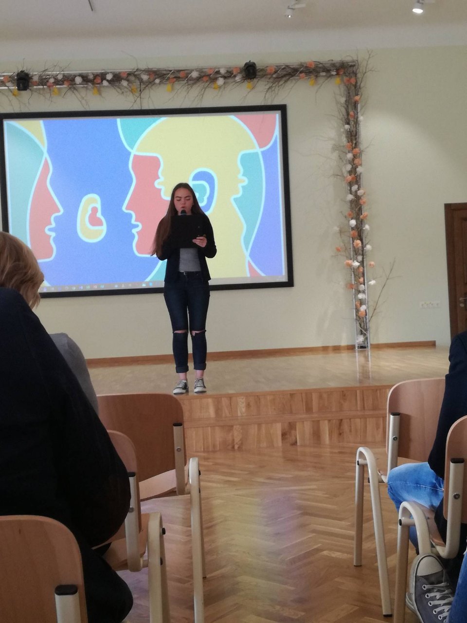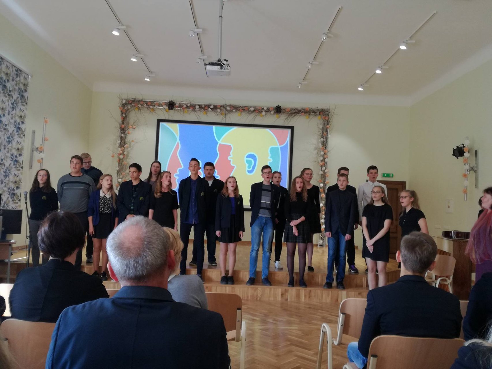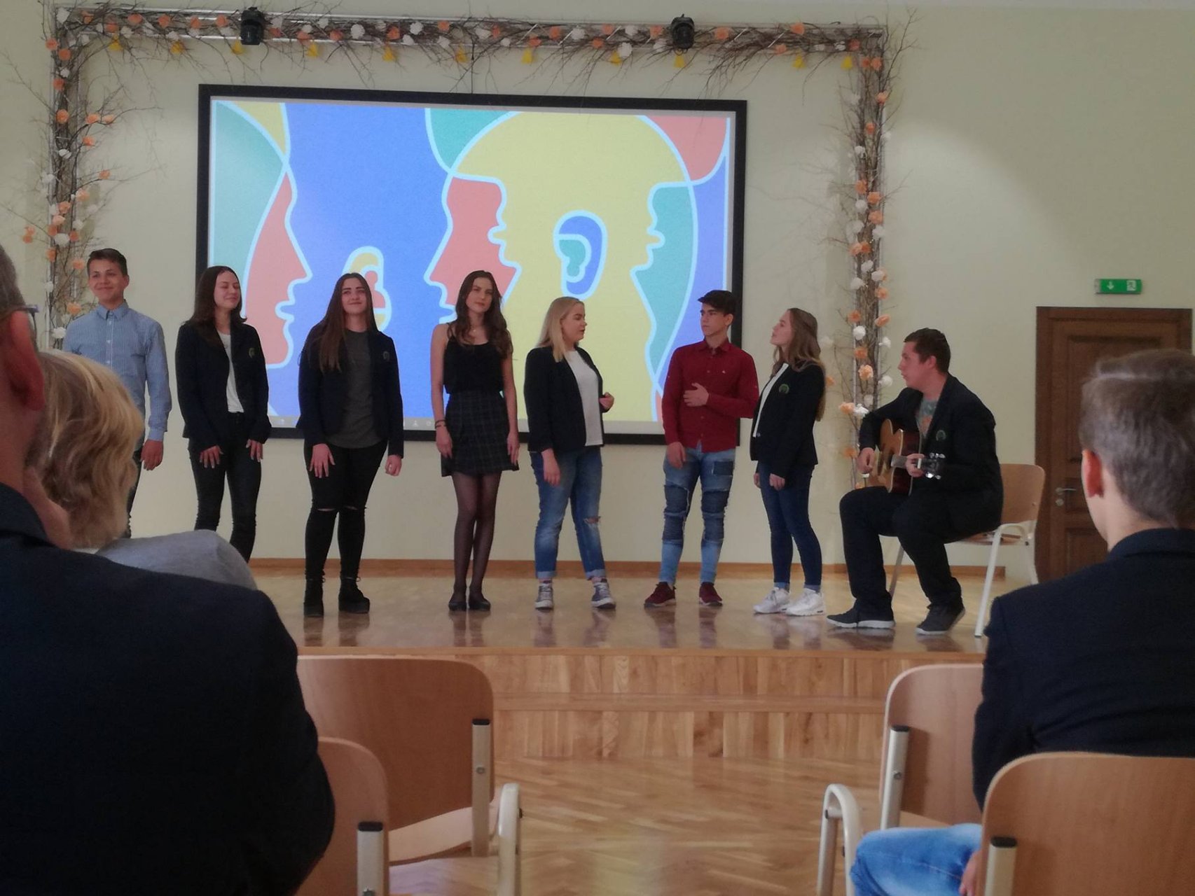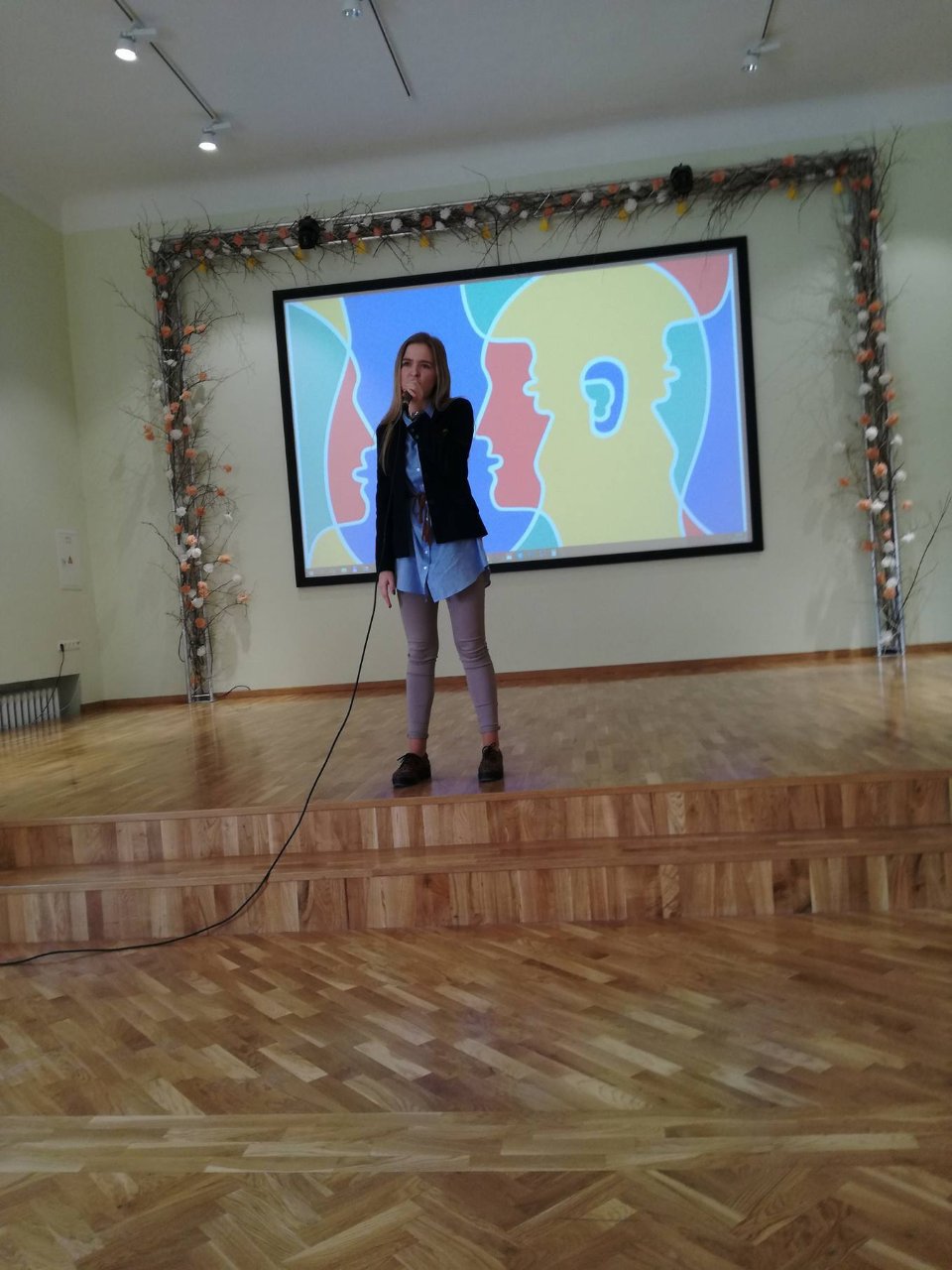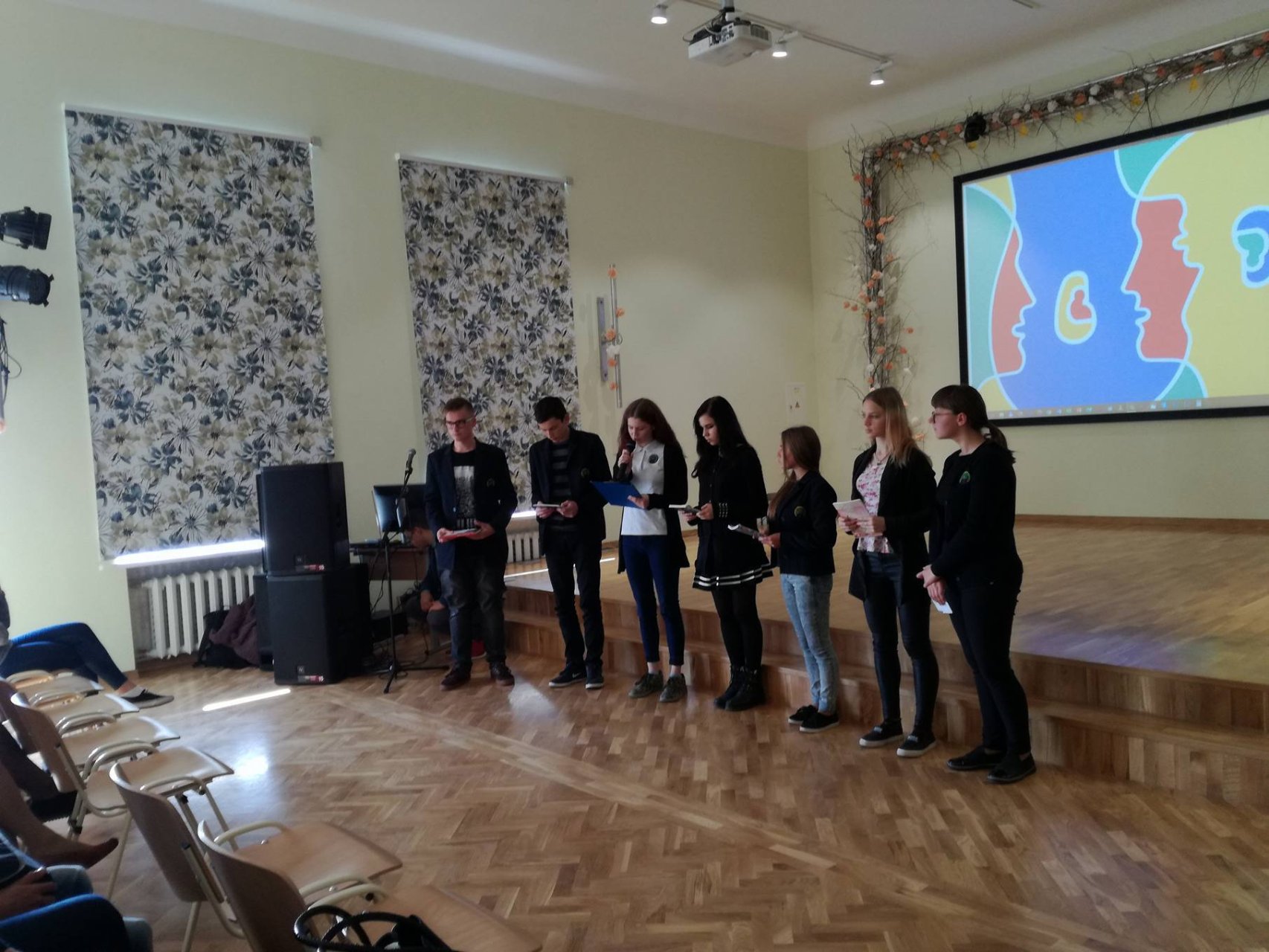 Vedėjai Kamilė Augėnaitė ir Justas Simanavičius, IIb klasės gimnazistai, pradėjo šventę žodžiais apie kalbą, užslėptą žemės grožį ir didžiausią žmogaus turtą bei vertybę. Šventę įvairiausiomis spalvomis nuspalvino mokinių pasirodymai. Lietuvių kalbos puoselėtojai mus pakiliai nuteikė, nes jausmingai skaitė ištraukas, eiles, be to, Ib klasės mokiniai padainavo visiems gerai žinomą lietuvių liaudies dainą. Visi trys pasirodymai buvo be galo nuostabūs ir jie tik dar kartą įrodė, kad mūsų gimtoji kalba yra pati gražiausia, seniausia ir brangiausia mums visiems. Vėliau išgirdome įdomių faktų apie anglų kalbą, klausėmės mokinių dainų. IIa klasės gimnazistė Austėja Dumbrytė atliko įžymios dainininkės Katy Perry dainą „Rise“, o IIb klasės mokinių ansamblis padainavo Ed Sheeran‘o kūrinį „Photograph“. Puikiai skambėjo gimnazijos trečiokų daina rusiškai, taip jie perteikė šios kalbos išskirtinumą bei grožį. Renginio vedėjai pristatė ir prancūzų kalbą. Kamilė supažindino su prancūzų rašytojo Anatole France mintimis ir padeklamavo Paul Éluard eilėraštį „Dans Paris“.